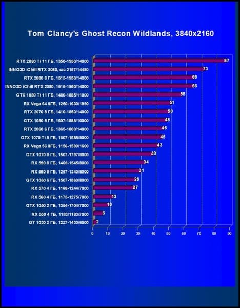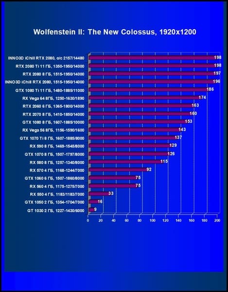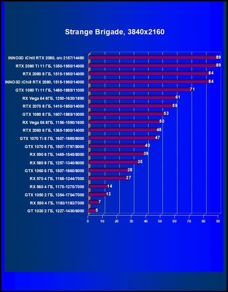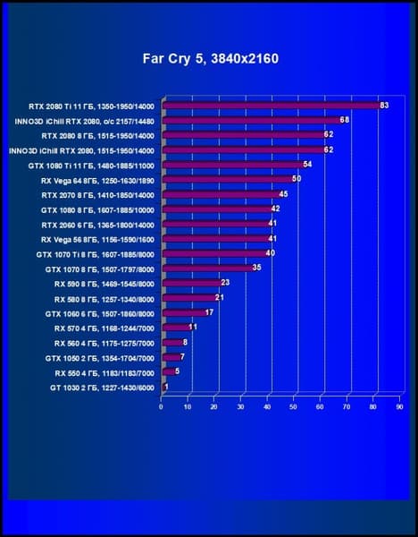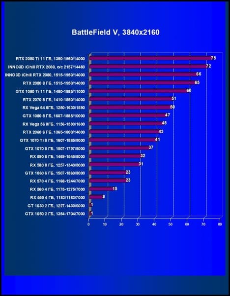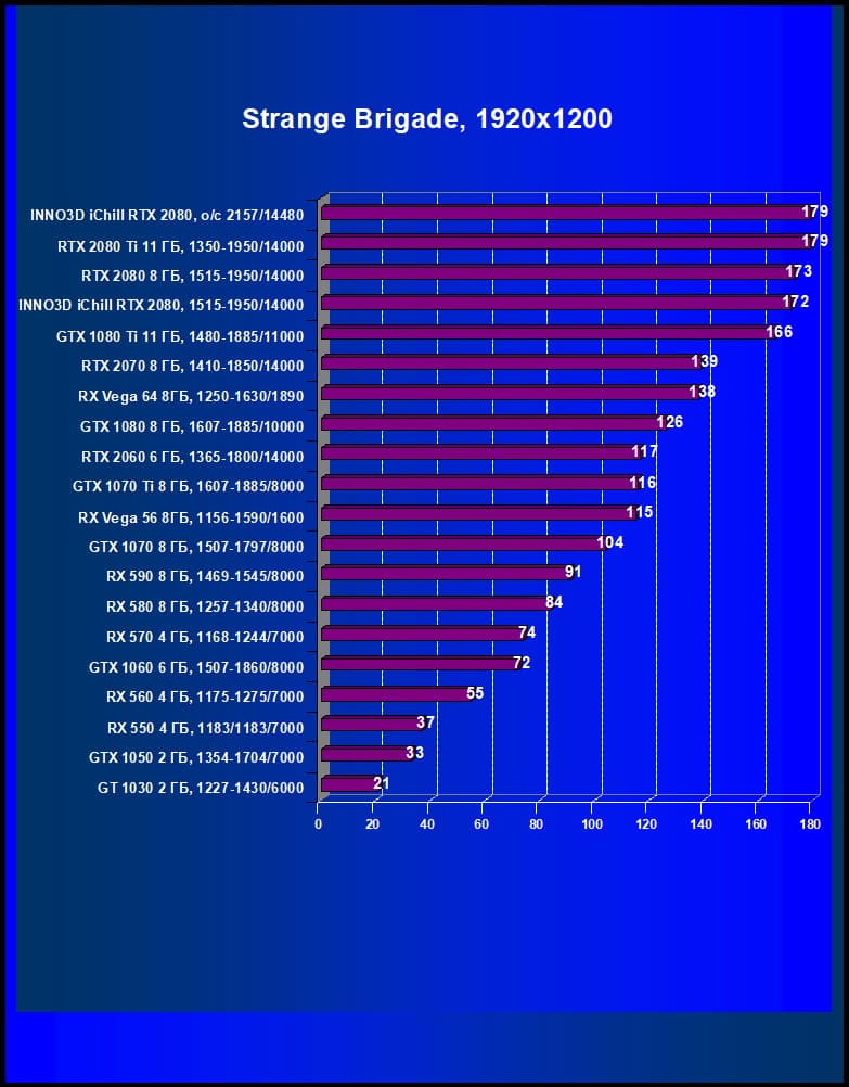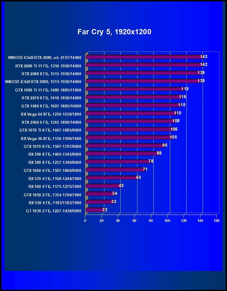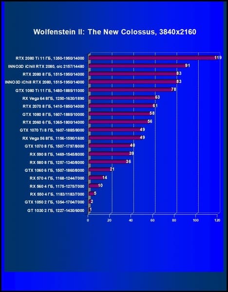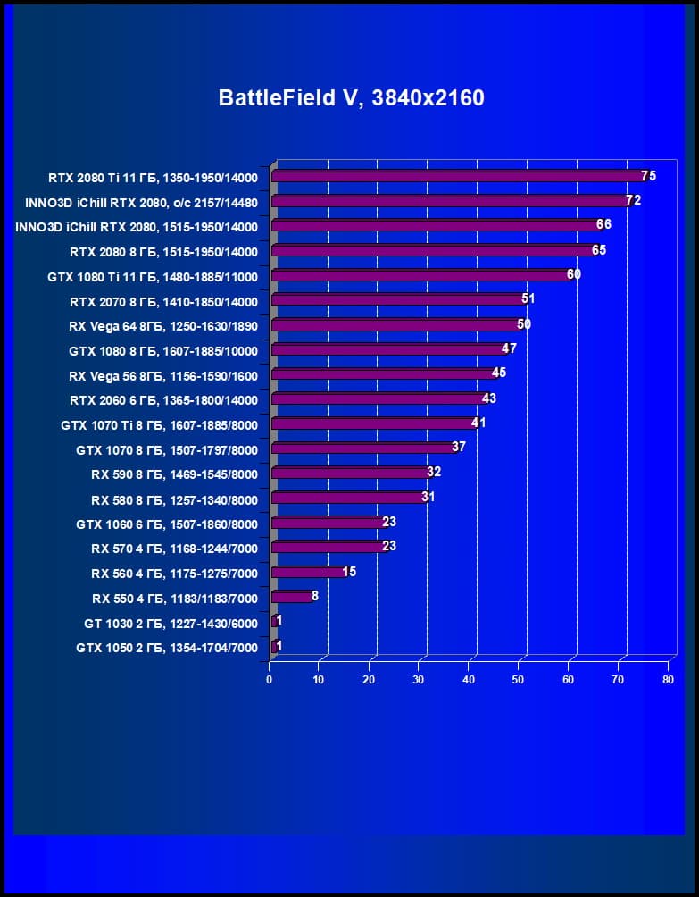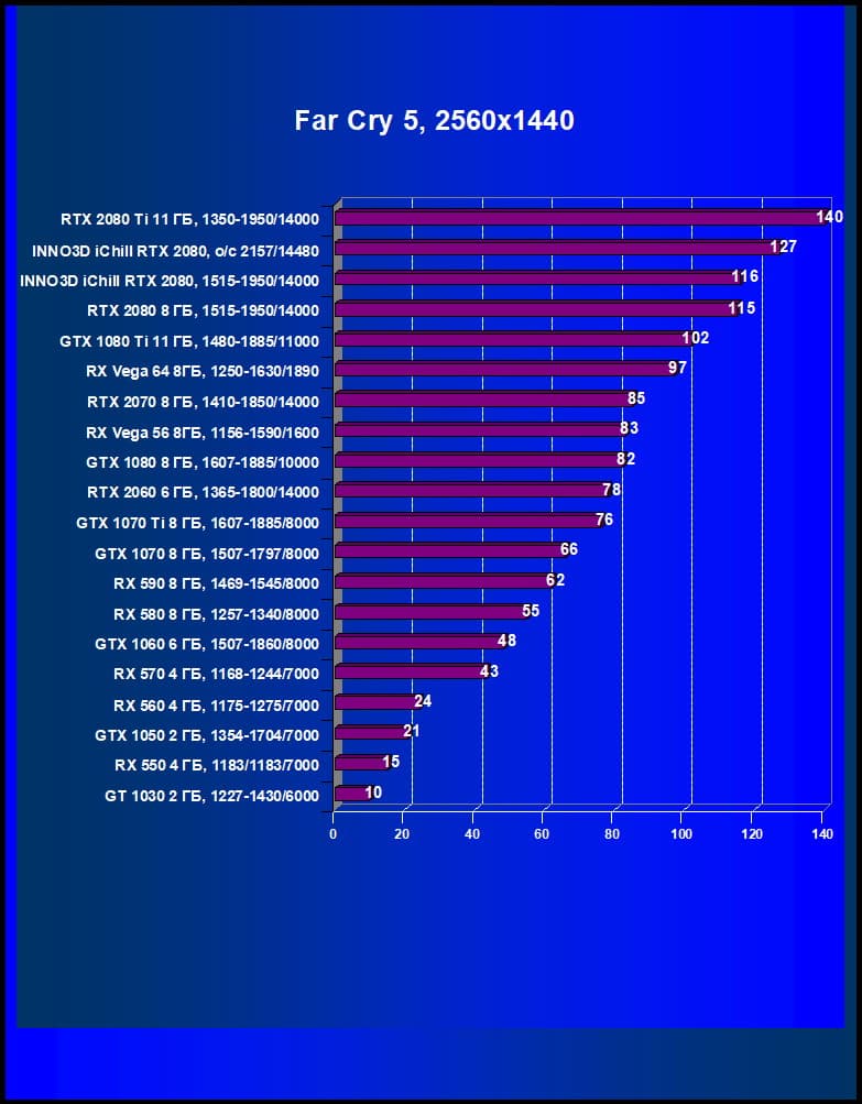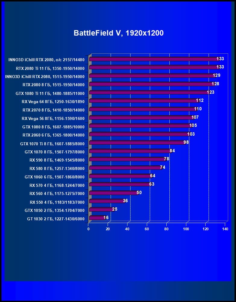 | 03 | Inno3D iChill RTX 2080, 1515—1950/14000 | 1493 | 233 | 64 000 |