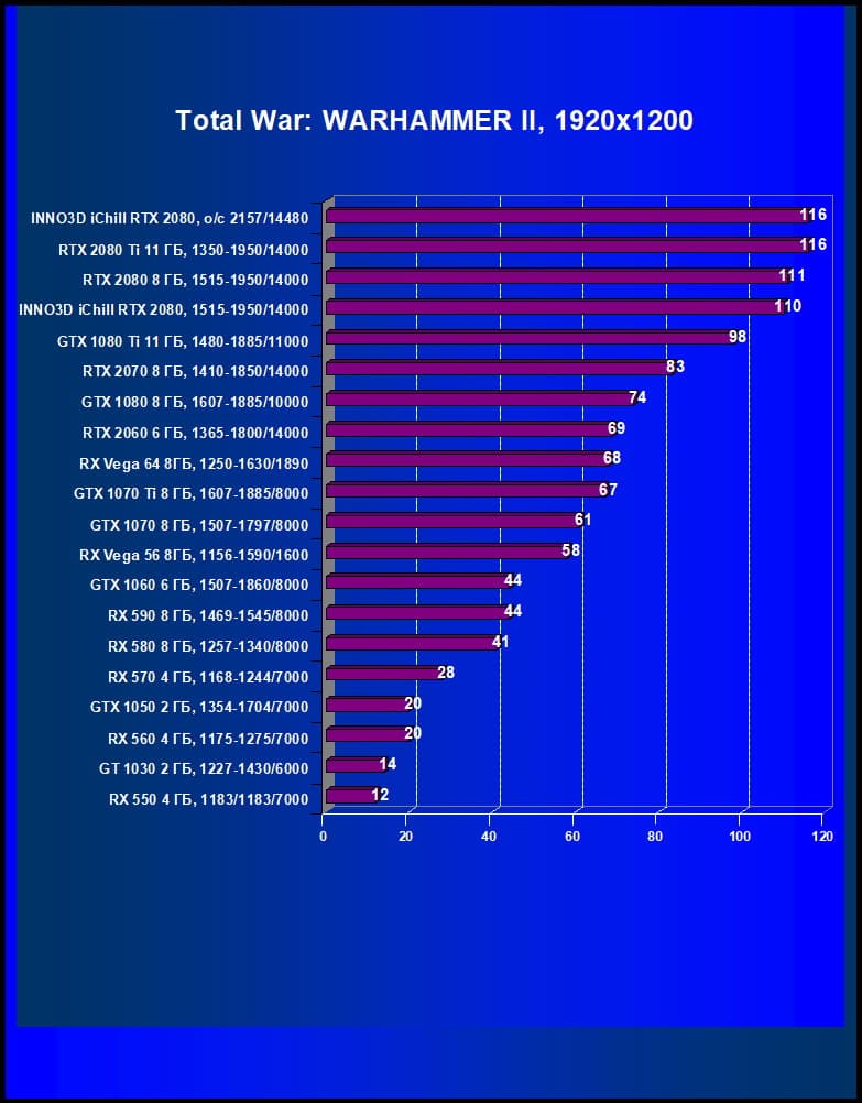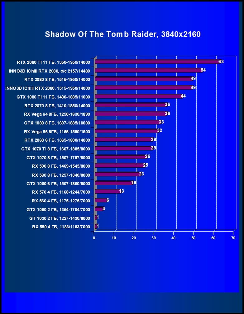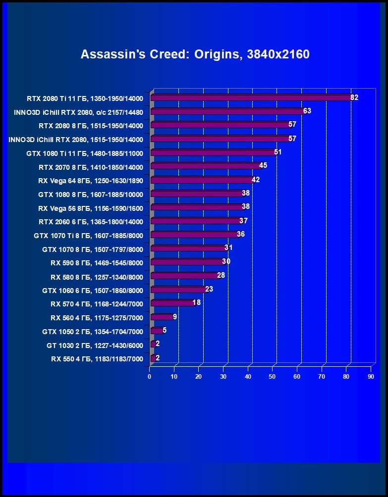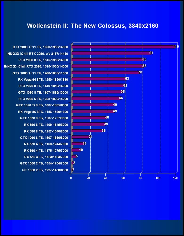 | 02 | Inno3D iChill RTX 2080, разгон до 2157/14480 | 1631 | 255 | 64 000 |