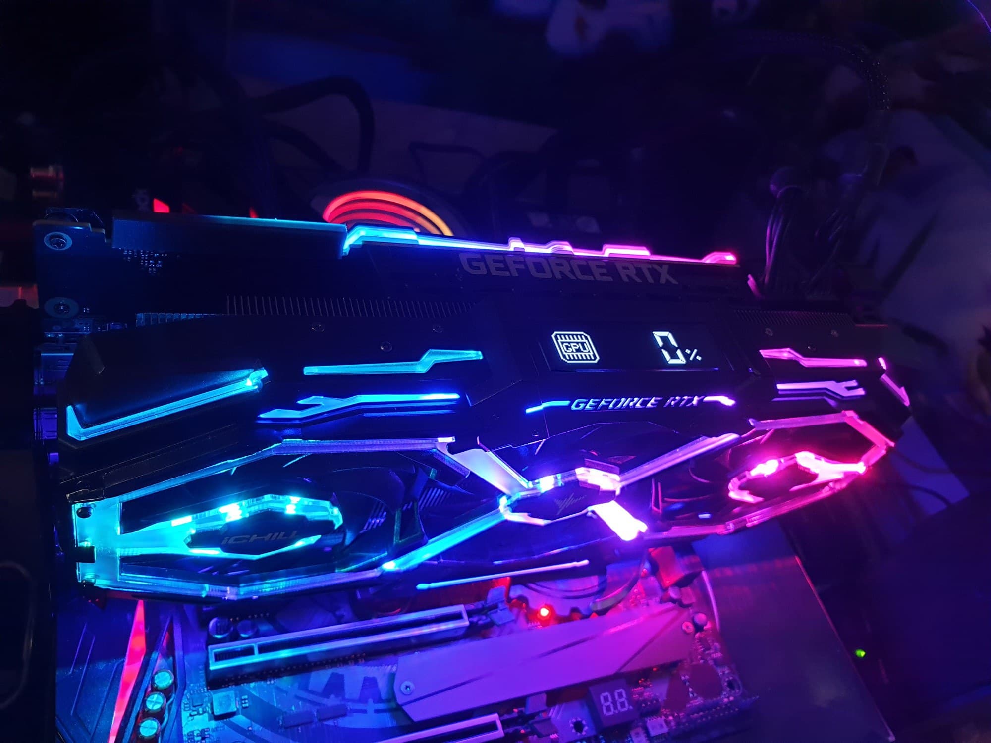 Это просто потрясающее зрелище, я очень впечатлен! Мало того, что карта буквально «усыпана» подсветкой (она есть и с оборотной стороны), так еще имеется и информационный дисплей, на котором можно видеть текущие параметры работы ускорителя! Даже непонятно, как лучше устанавливать такую красоту: обычным образом, когда карта обращена торцом к пользователю и вентиляторами вниз, или же через райзер вертикально (если корпус допускает такой вариант), чтобы максимально продемонстрировать подсветку пользователю. В любом случае это смотрится офигенно!