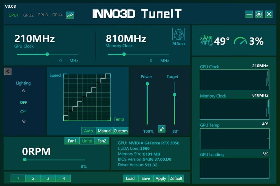 Штатные частоты памяти у карты Inno3D равны референсным значениям, а вот буст-значение частоты ядра выше референс-аналога примерно на 2,6%. Тестирование показало, что на практике это дает прирост производительности около 2%.