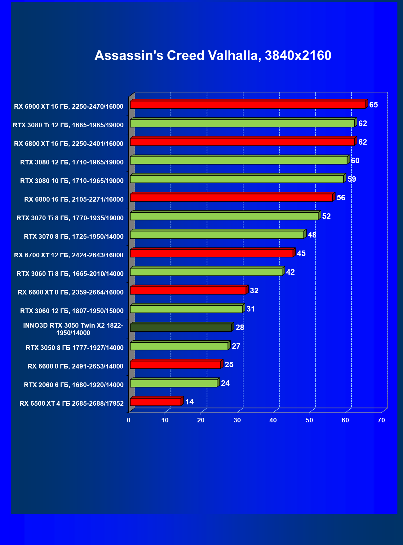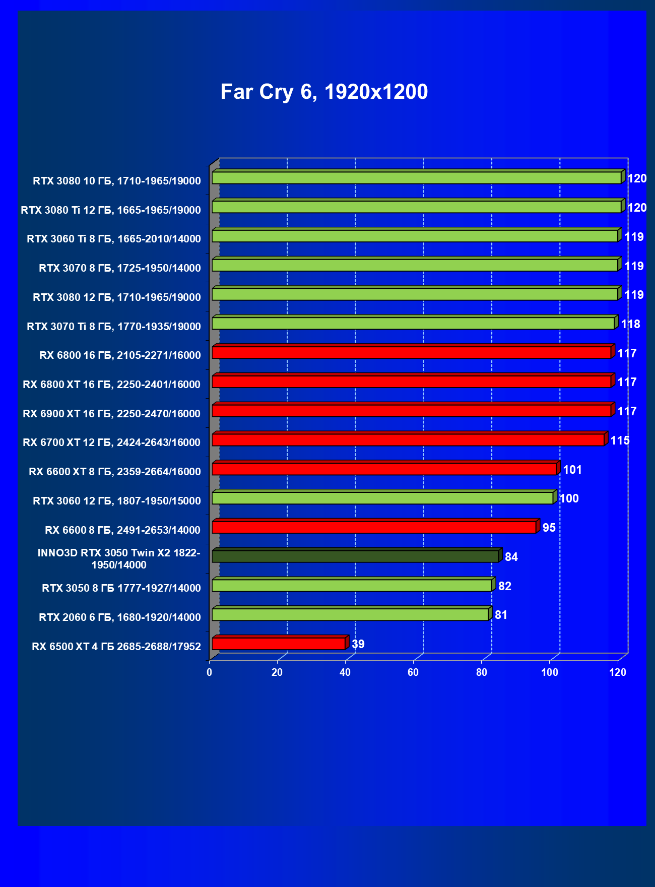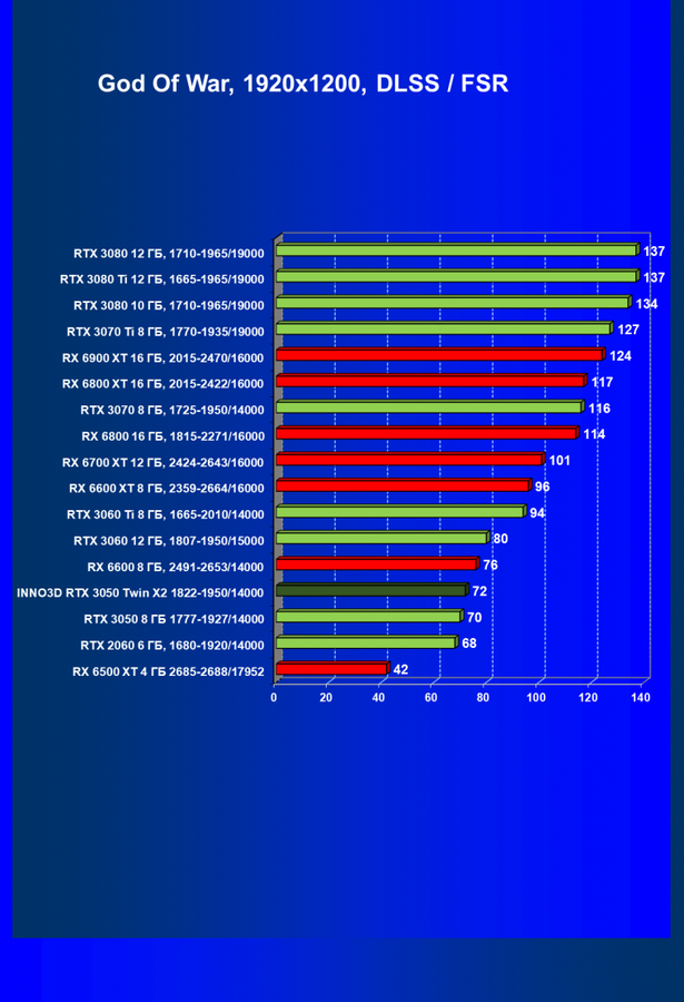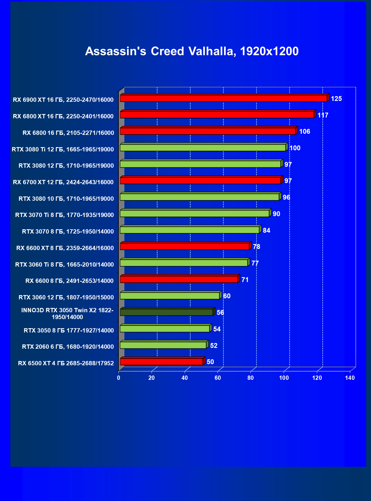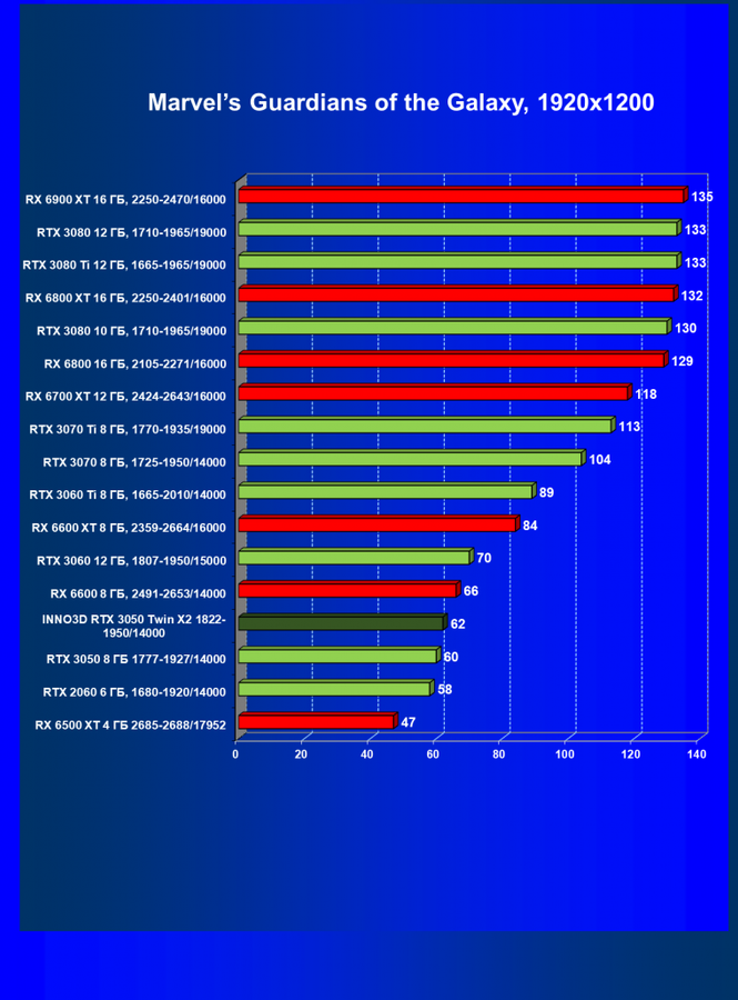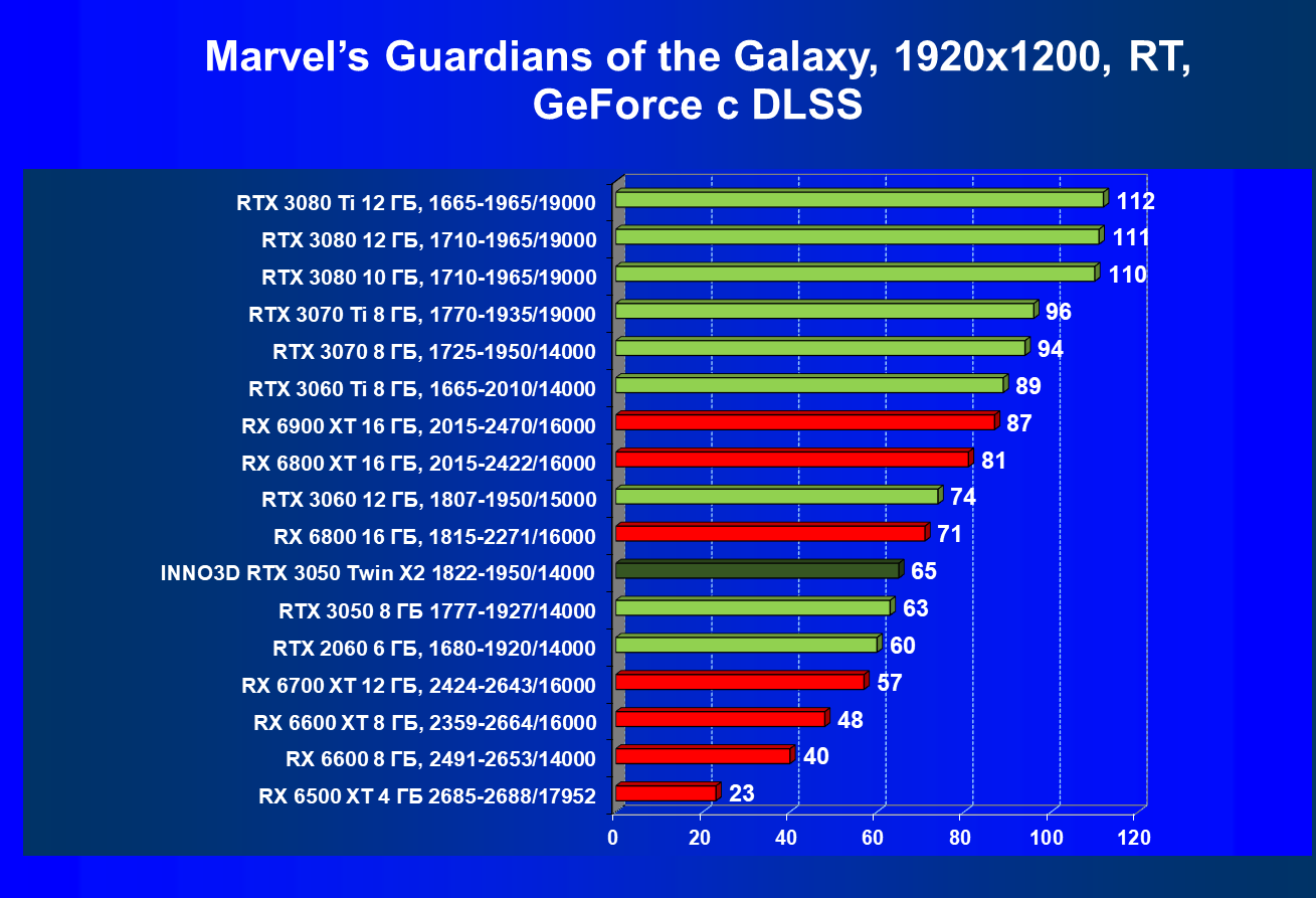 | 14 | Inno3D RTX 3050 Twin X2, 1822—1950/14000 | 170 | 24 | 70 000 |