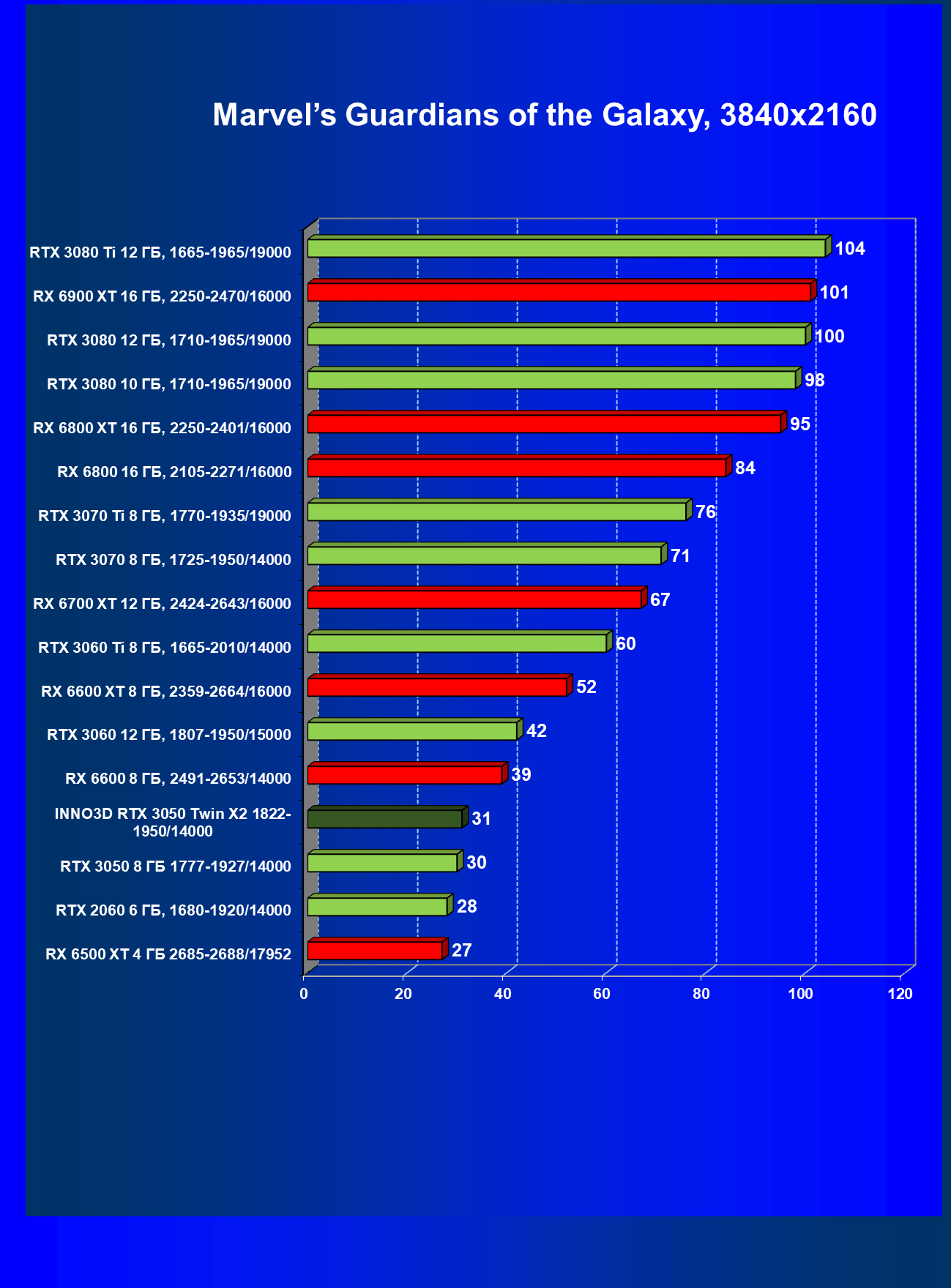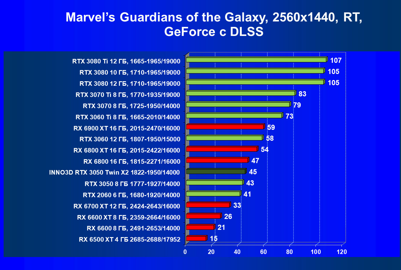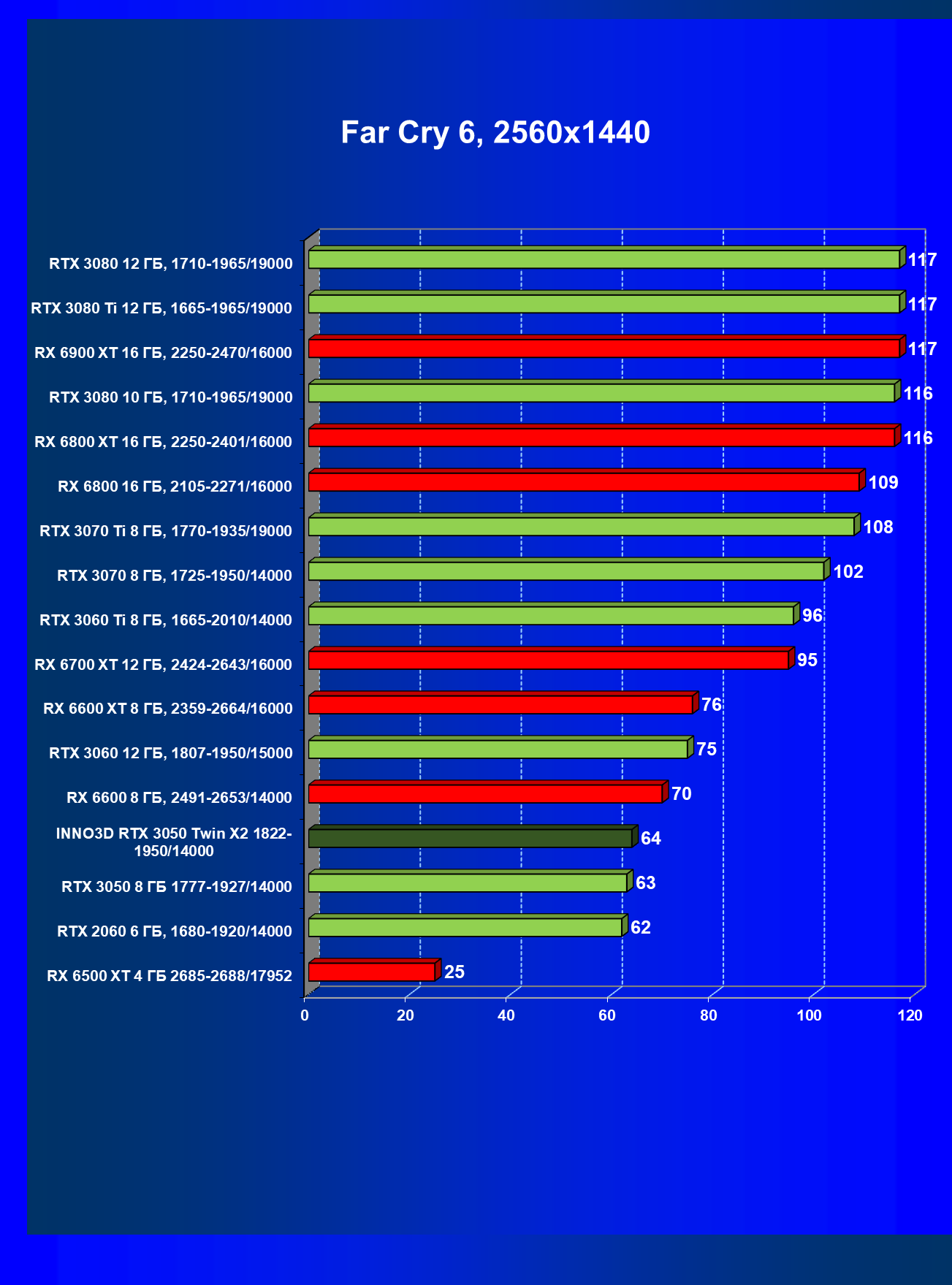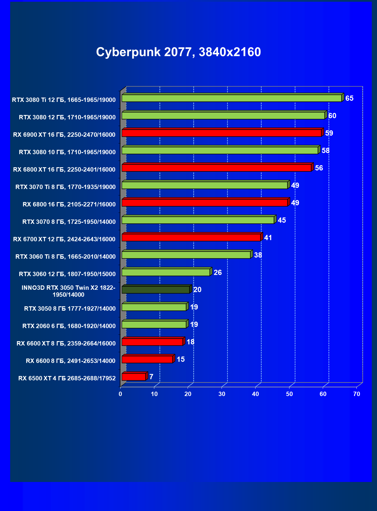 | 14 | Inno3D RTX 3050 Twin X2, 1822—1950/14000 | 170 | 24 | 70 000 |
