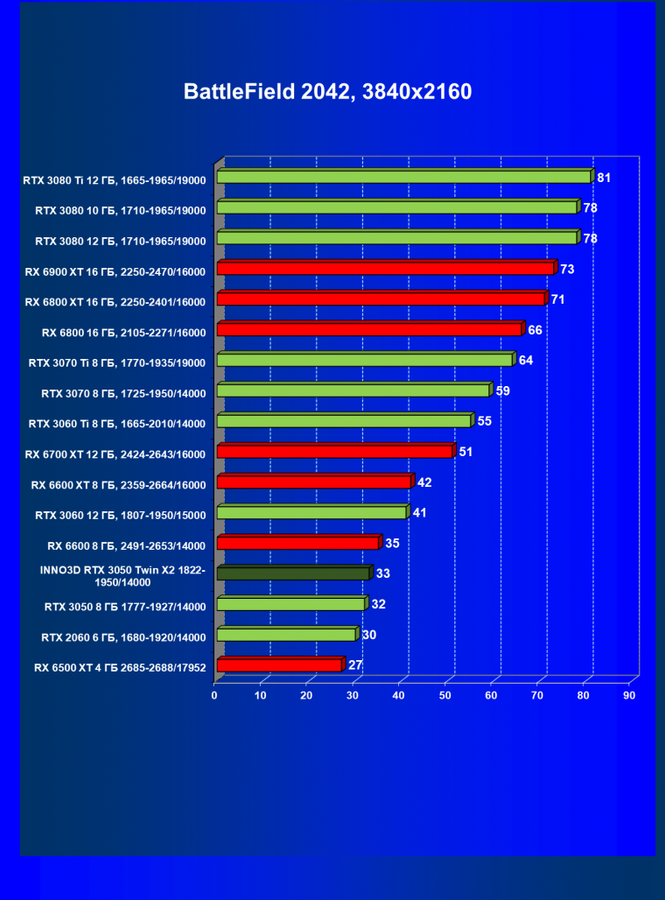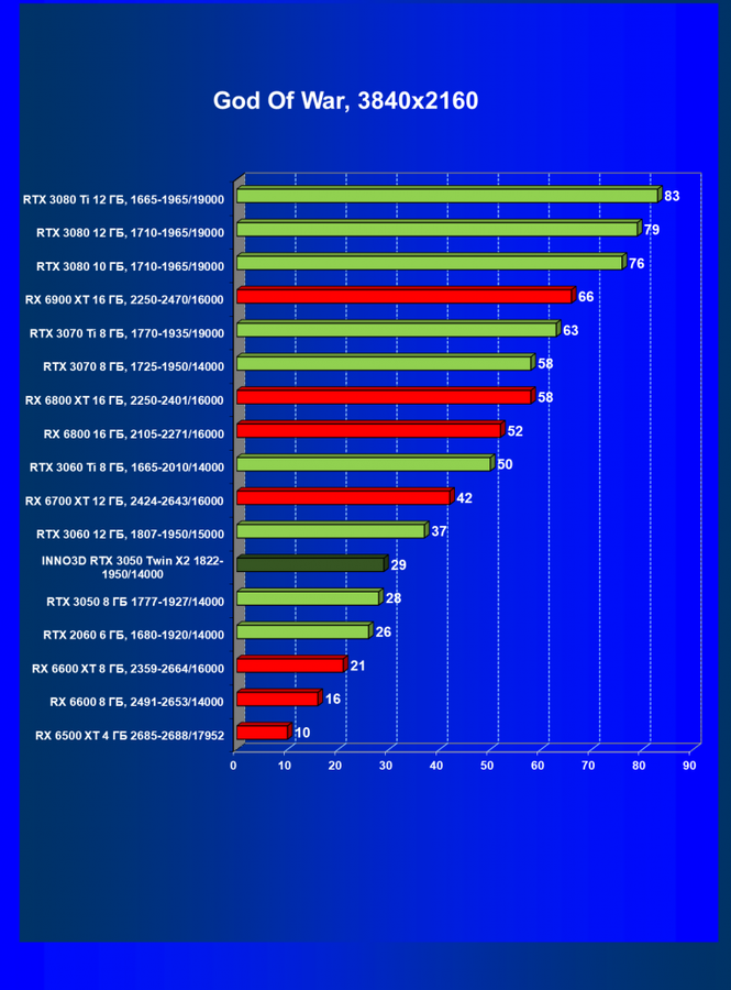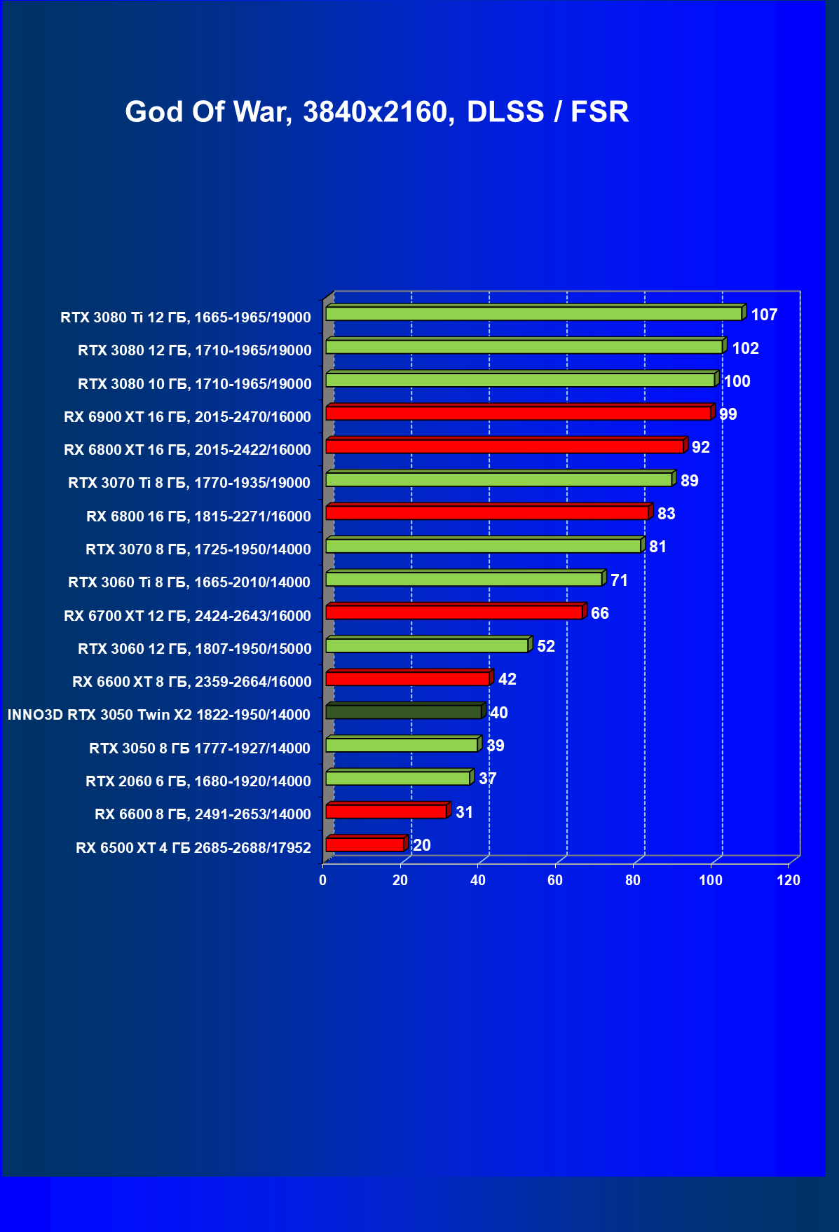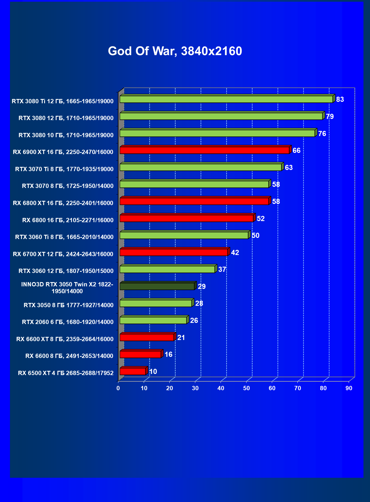 | 01 | Inno3D RTX 3050 Twin X2, 1822—1950/14000 | 24 | 170 | 70 000 |