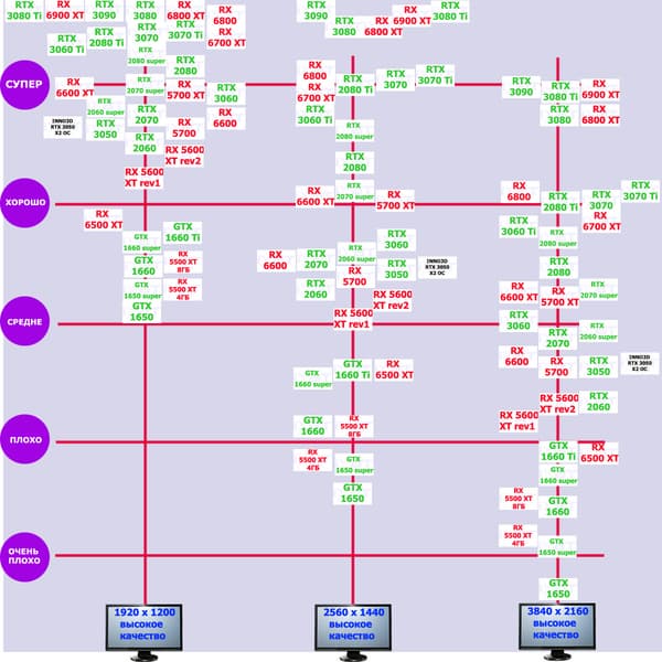 | 13 | RX 6600 8 ГБ, 2491—2653/14000 | 170 | 22 | 77 000 |