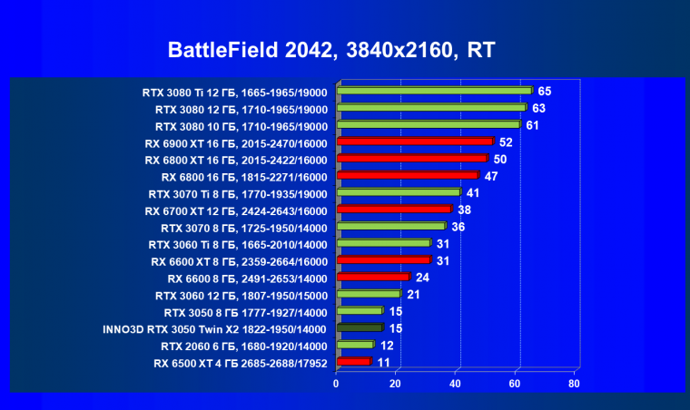 | 12 | Inno3D RTX 3050 Twin X2, 1822—1950/14000 | 330 | 47 | 70 000 |