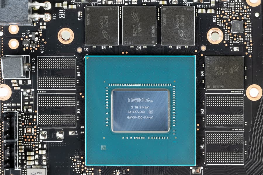 GPU имеет маркировку GA106-150-KA-A1, что означает тот же процессор, что используется на RTX 3060 (но там маркировка GA106-300), то есть просто урезанный по блокам тот же чип (вероятно идут в ход отбраковки от полновесного GA106). Учитывая, что все новые GPU обладают защитой от майнинга ETH в виде LHR, то уже цифра «2» в маркировке не используется (ранее мы видели ...-102 или ...-120 в маркировках RTX 3060, 3070, 3080, выдающих обновленные версии тех же ядер, но с LHR). В принципе, имеется и GA107, который обладает таким же набором блоков, что и урезанный GA106-150, используемый в ноутбуках, однако по мере того, как отбраковки от GA106 иссякнут, на всех картах RTX 3050 начнут использовать именно GA107.