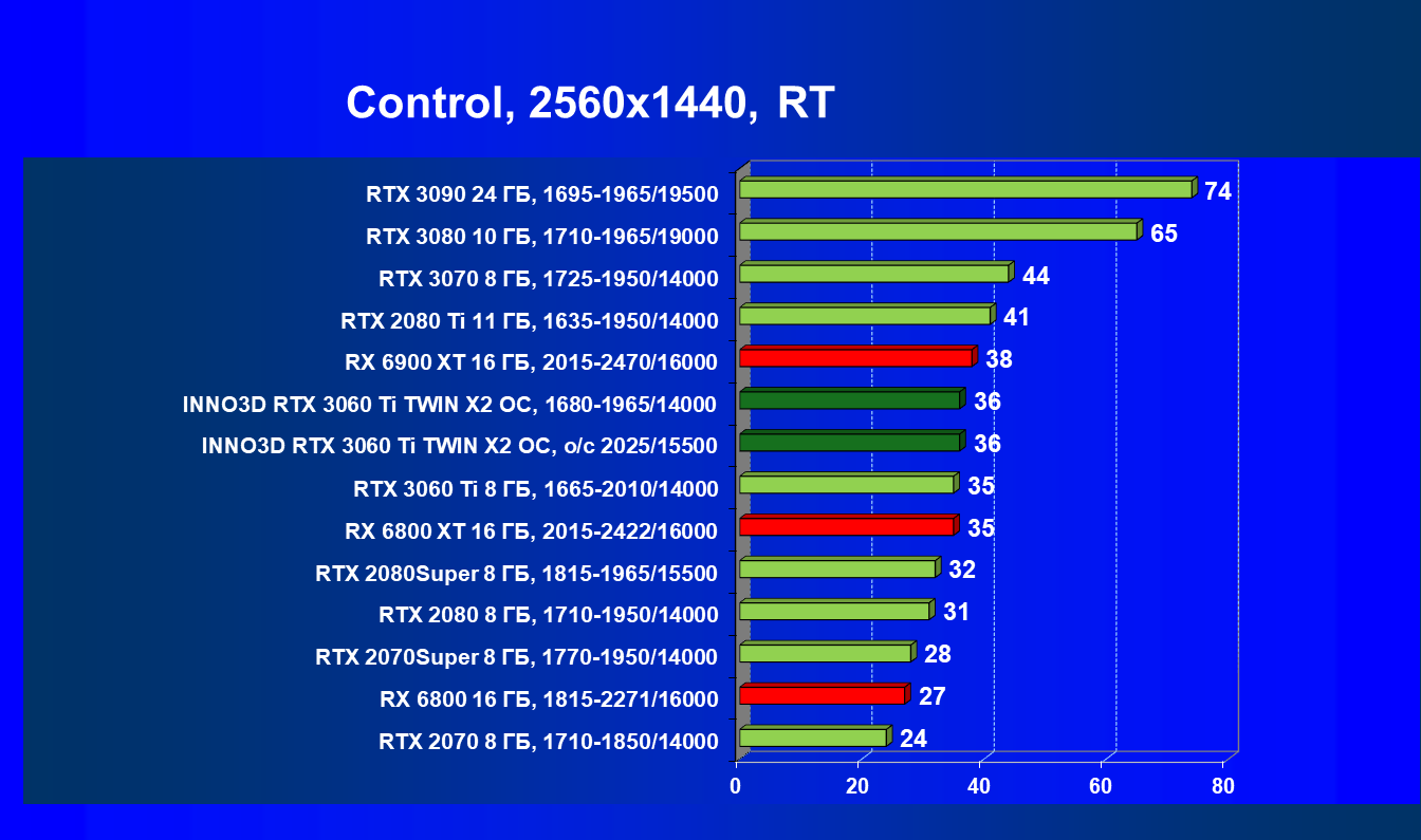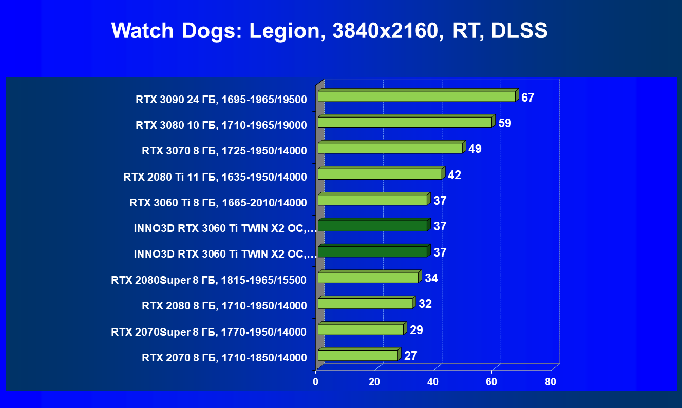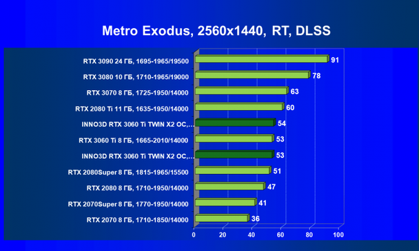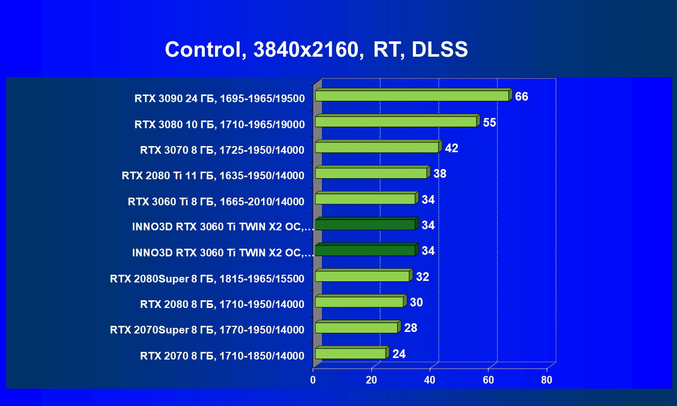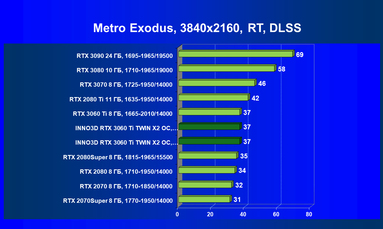 | 07 | Inno3D RTX 3060 Ti Twin X2 OC, 1680—1965/14000 | 78 | 764 | 98 000 |