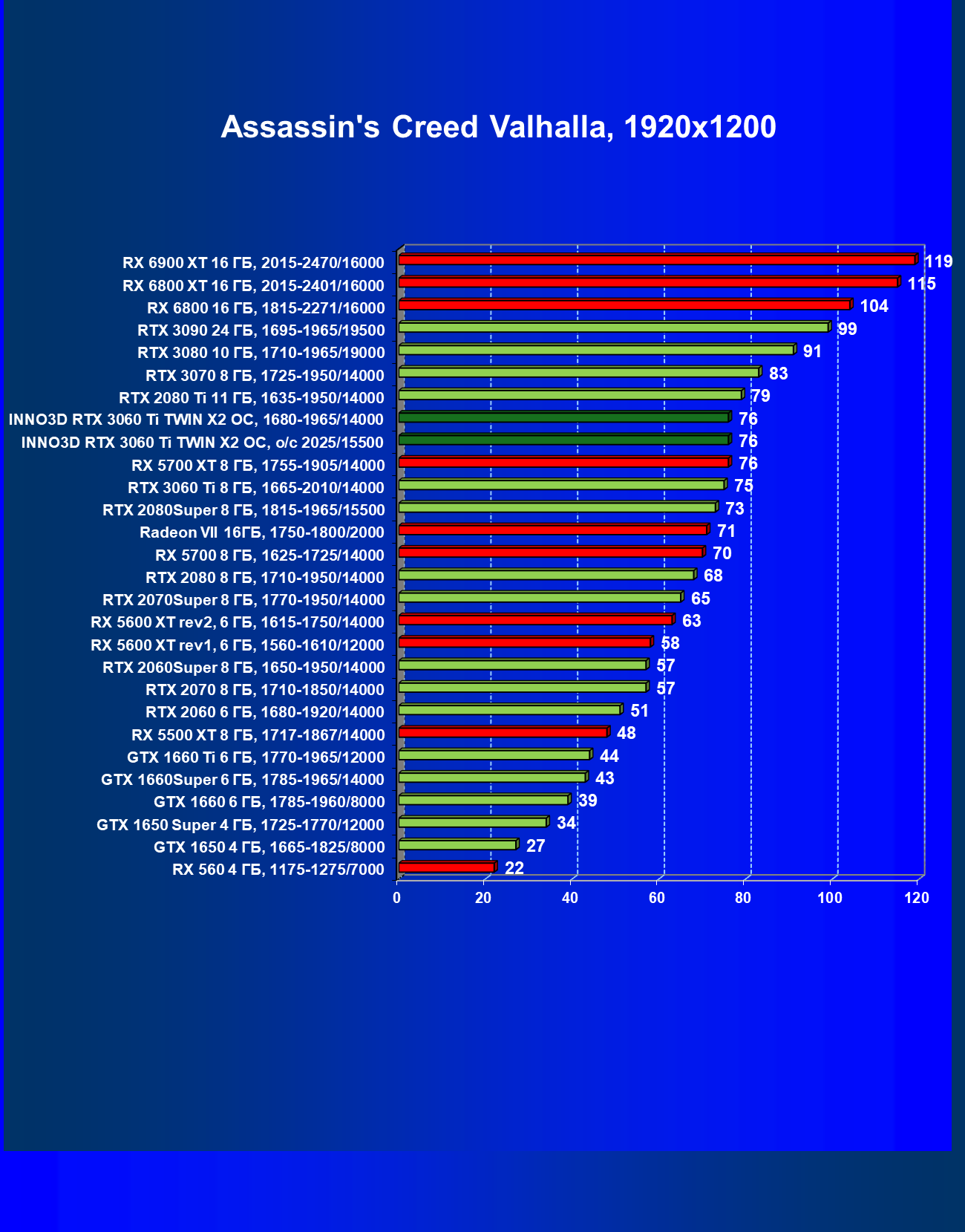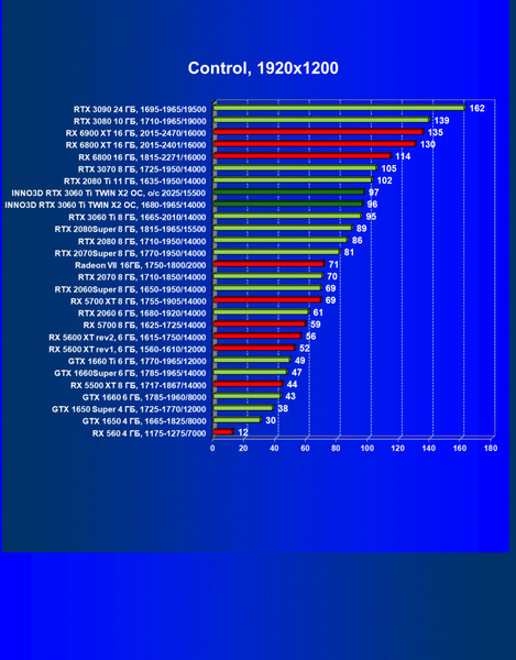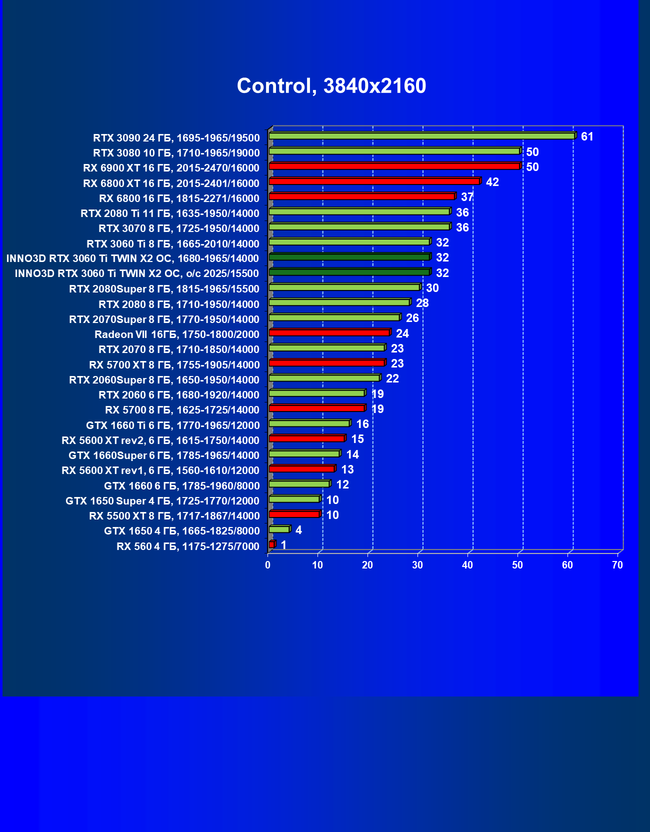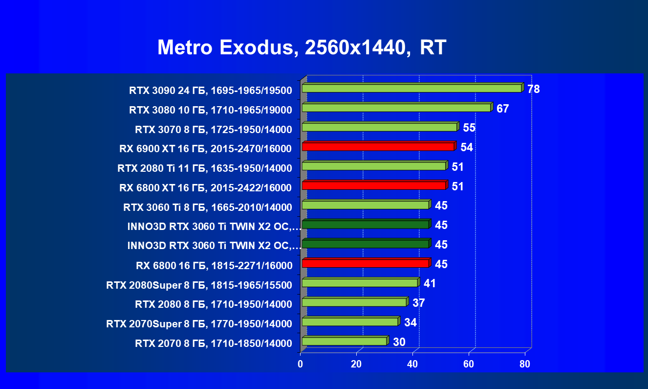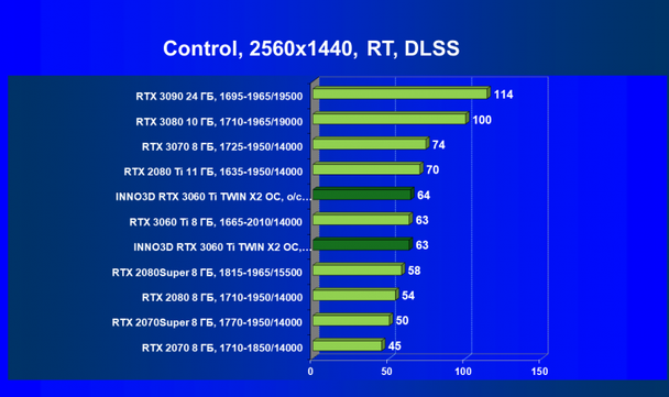 | 07 | Inno3D RTX 3060 Ti Twin X2 OC, 1680—1965/14000 | 78 | 764 | 98 000 |