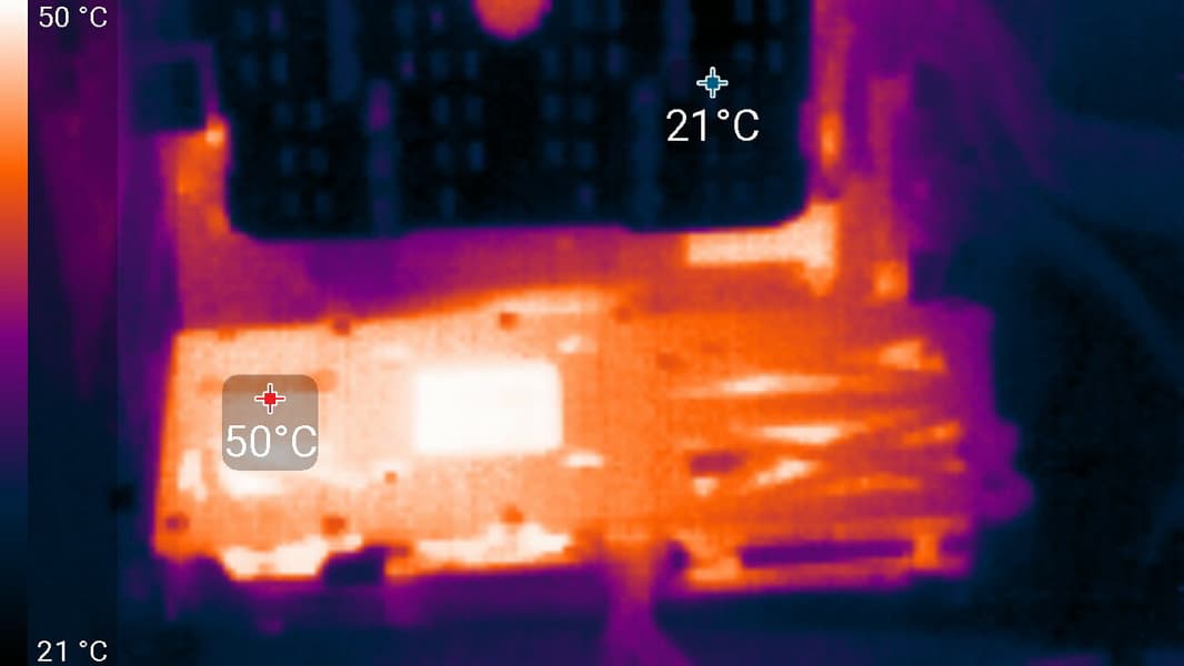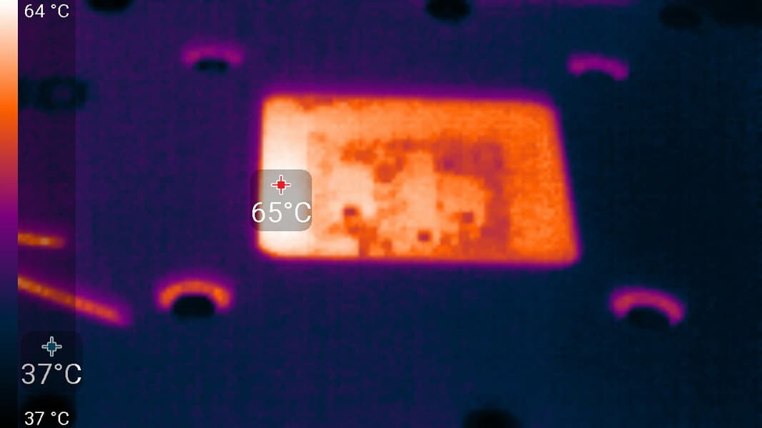 Максимальный нагрев наблюдался в центральной части PCB, в основном около ядра.