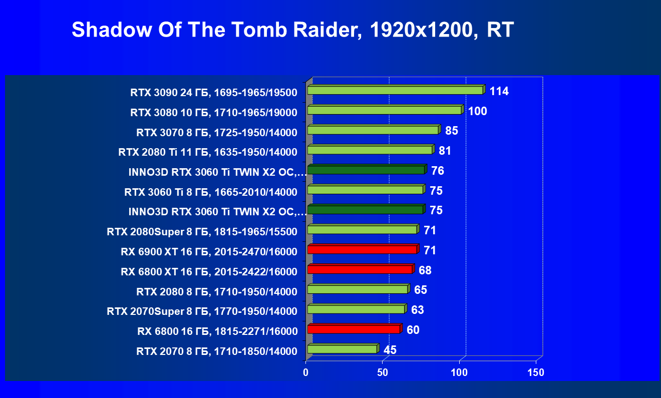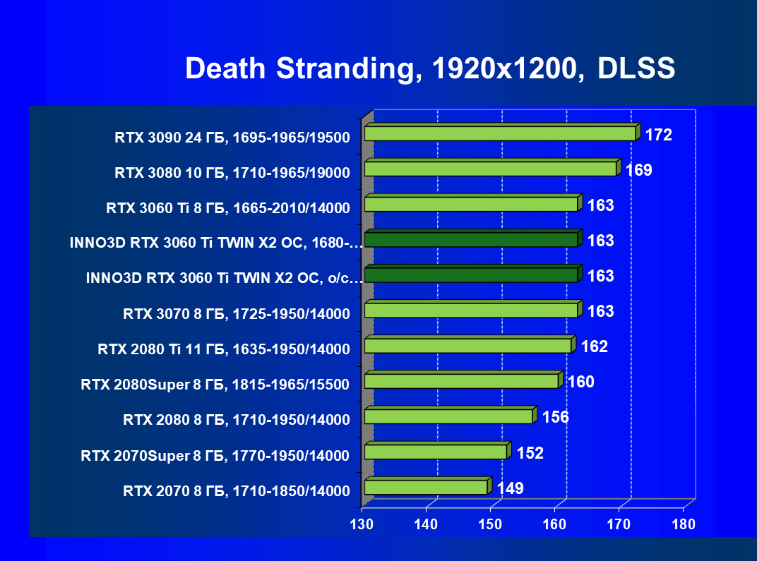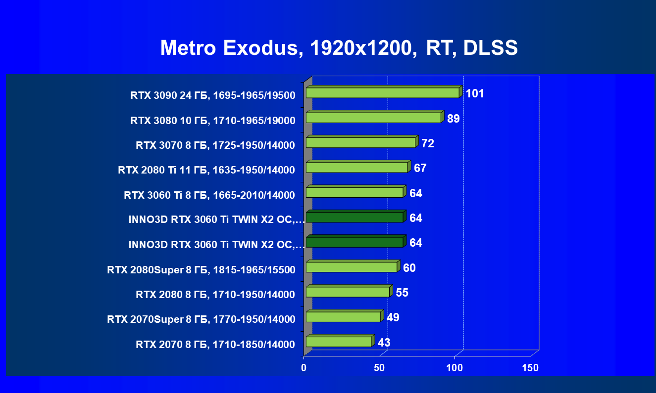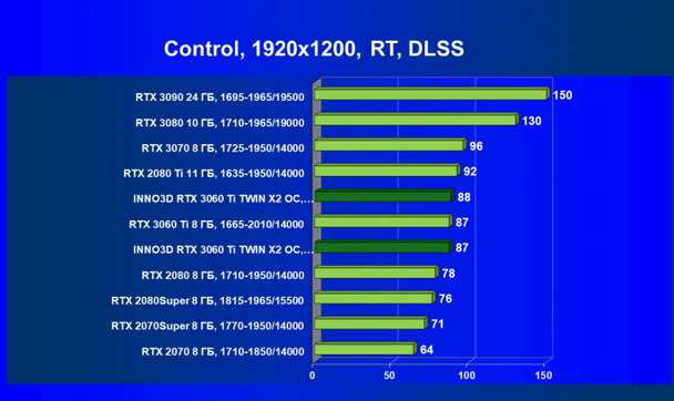 | 08 | Inno3D RTX 3060 Ti Twin X2 OC, 1680—1965/14000 | 150 | 15 | 98 000 |