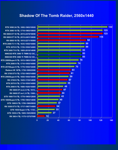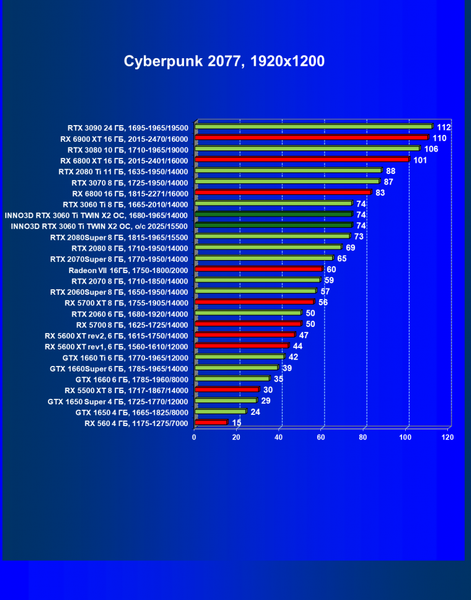 | 11 | RX 6800 16 ГБ, 1815—2271/16000 | 130 | 12 | 110 000 |