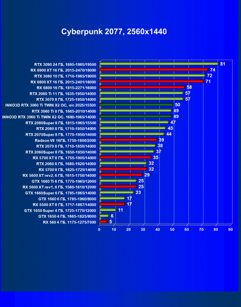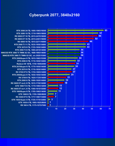 | 13 | RX 6800 16 ГБ, 1815—2271/16000 | 12 | 133 | 110 000 |