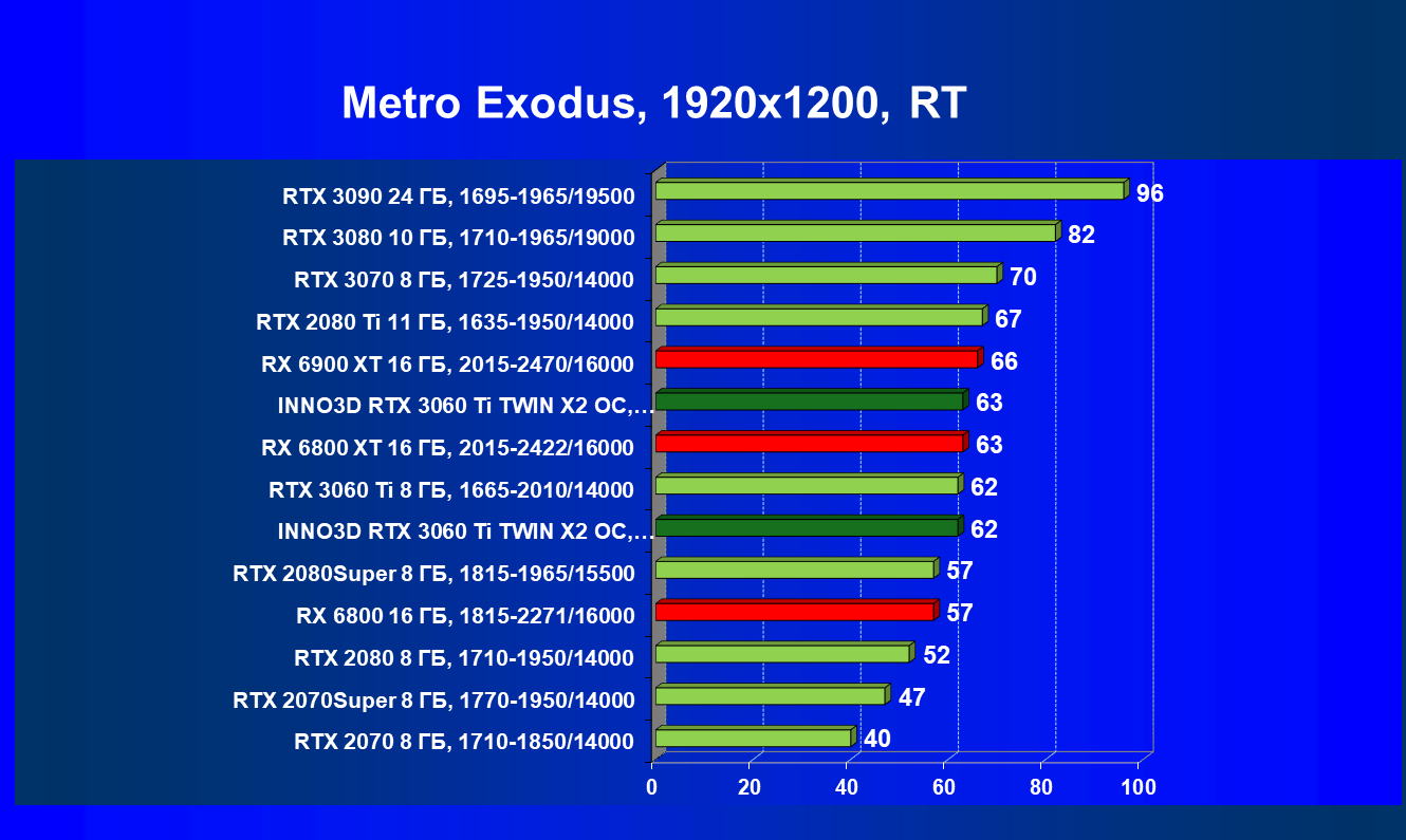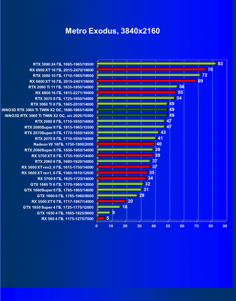 | 09 | Inno3D RTX 3060 Ti Twin X2 OC, 1680—1965/14000 | 900 | 92 | 98 000 |