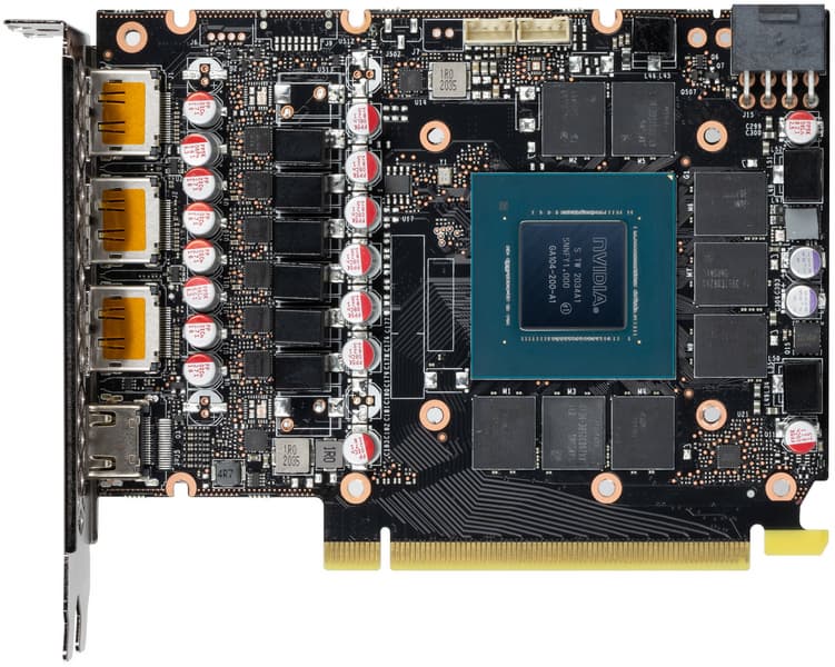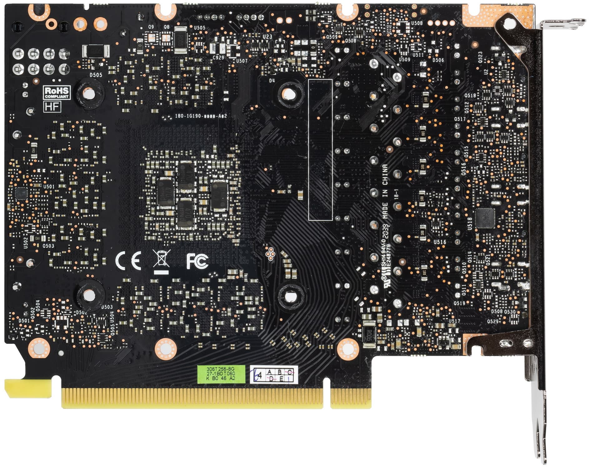 Карта имеет 8 ГБ памяти GDDR6 SDRAM, размещенной в 8 микросхемах по 8 Гбит на лицевой стороне PCB. Микросхемы памяти Samsung (GDDR6, K4Z80325BC-HC14) рассчитаны на условную номинальную частоту работы в 3500 (14000) МГц.