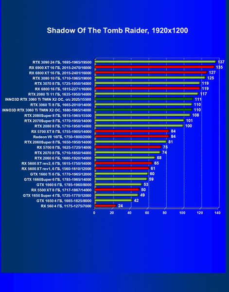 | 07 | RX 6900 XT 16 ГБ, 2015—2470/16000 | 14 | 171 | 125 000 |