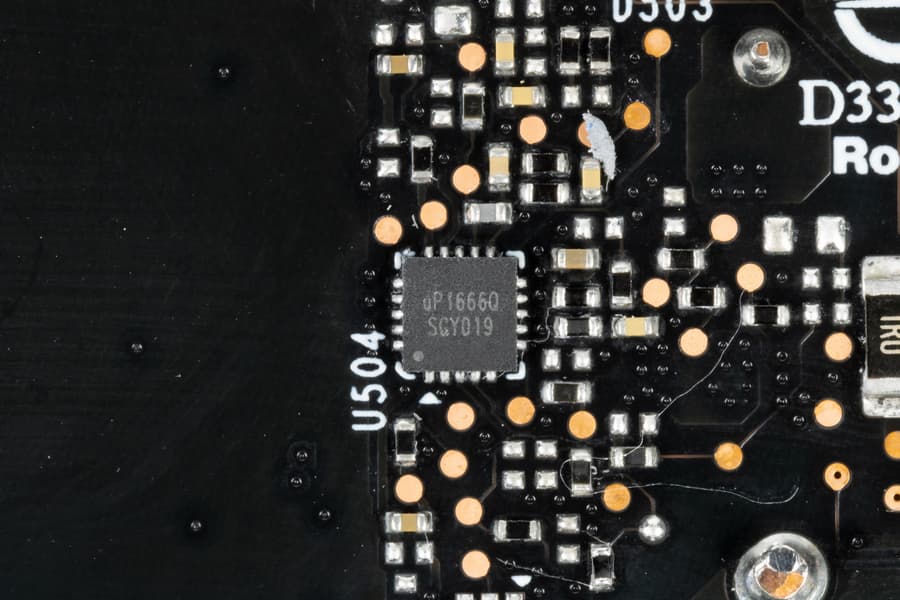 Также имеется контроллер uS5650Q (uPI Semiconductor), отвечающий за мониторинг (отслеживание напряжений и температуры) и подсветку. Он тоже расположен на обороте печатной платы.