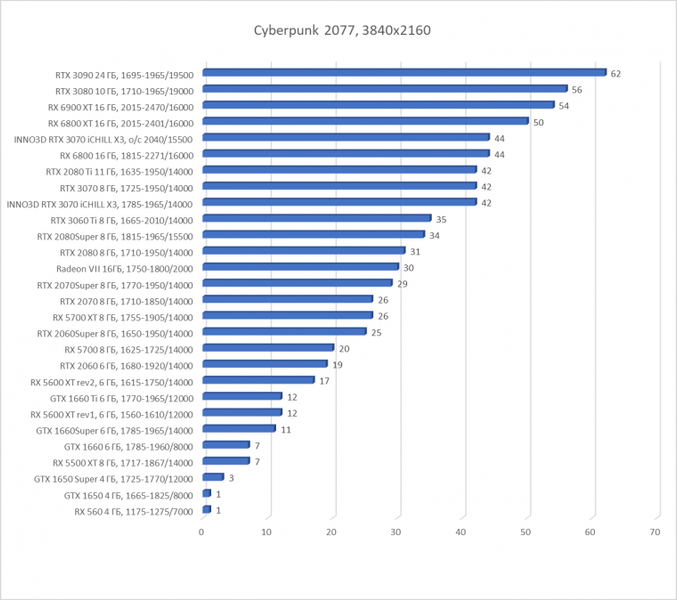 | 09 | Inno3D RTX 3070 iChill X3, 1785—1965/14000 | 226 | 2008 | 89 000 |