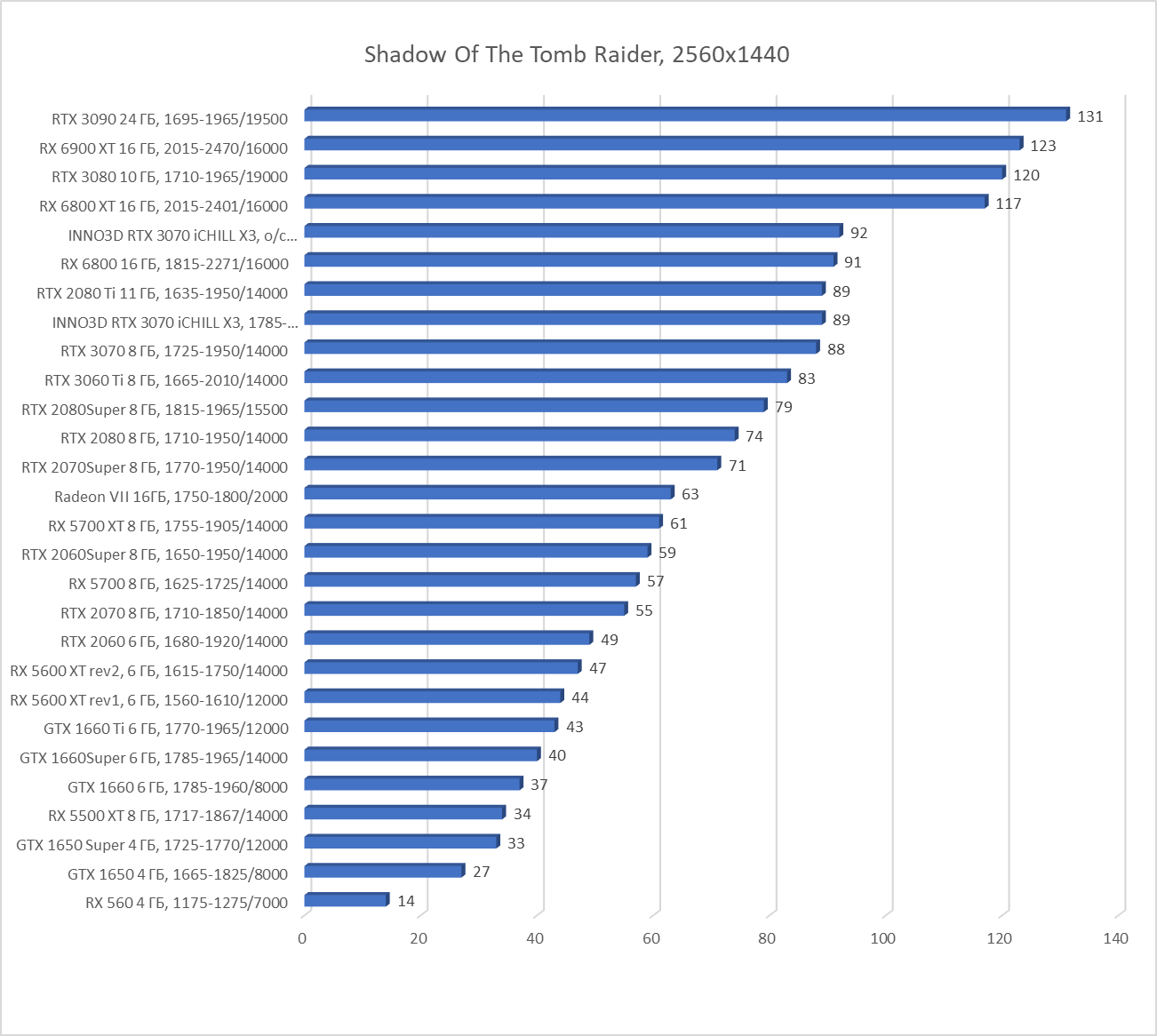 | 11 | RX 6800 16 ГБ, 1815—2271/16000 | 130 | 15 | 85 000 |
