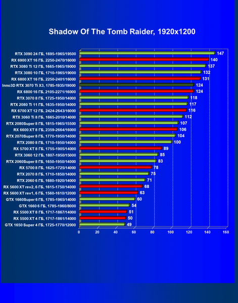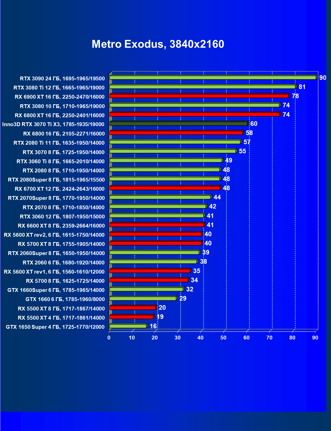 | 19 | RX 6800 16 ГБ, 1815—2271/16000 | 13 | 168 | 130 000 |