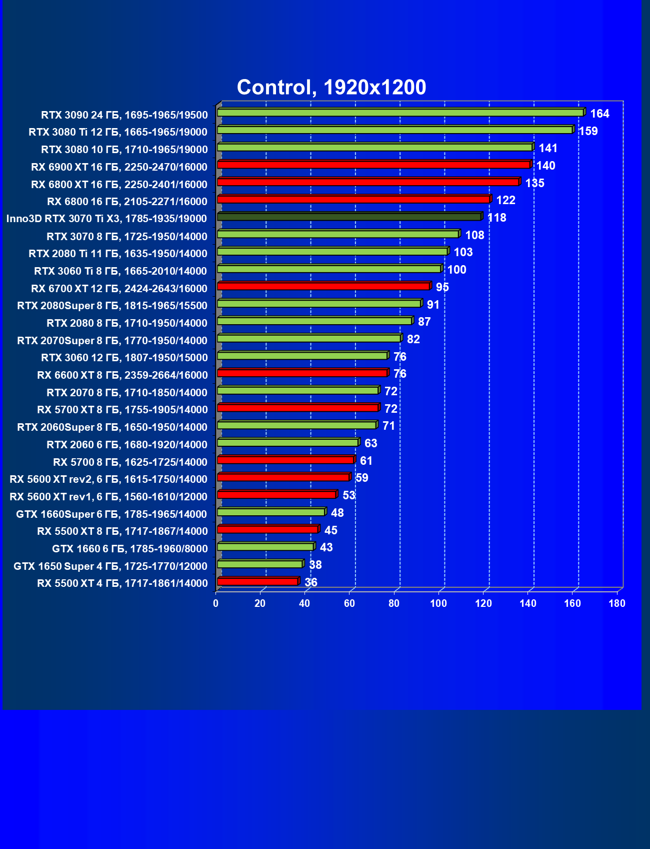 Из-за сильного падения производительности в играх с трассировкой лучей все семейство Radeon RX 6000 оказалось в аутсайдерах, так что GeForce RTX 3070 Ti лидирует в группе. И тогда именно GeForce RTX 3070 Ti может стать более выгодным приобретением для геймеров, чем GeForce RTX 3070 (без LHR тот явно будет дороже, чем указано в таблице).