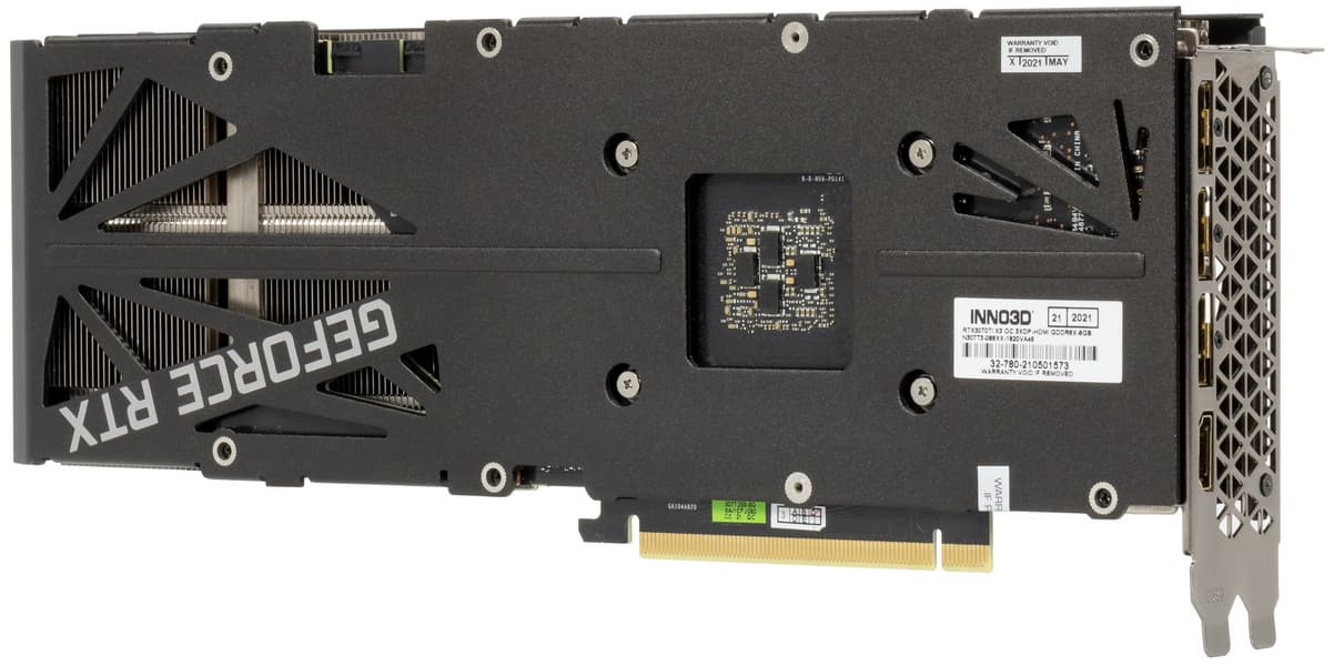 Inno3D GeForce RTX 3070 Ti X3 OC (8 ГБ) — достаточно простая и добротная реализация предфлагманского игрового ускорителя. Это карта без наворотов — для тех, кого не интересует внешний вид компьютерных компонентов. Но при этом потенциально она может иметь более низкую цену.