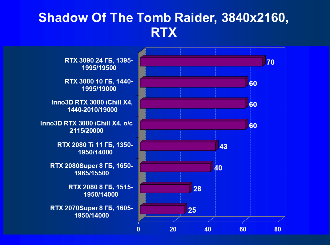 | 02 | Inno3D RTX 3080 iChill X4, разгон до 2115/20000 | 2190 | 313 | 70 000 |