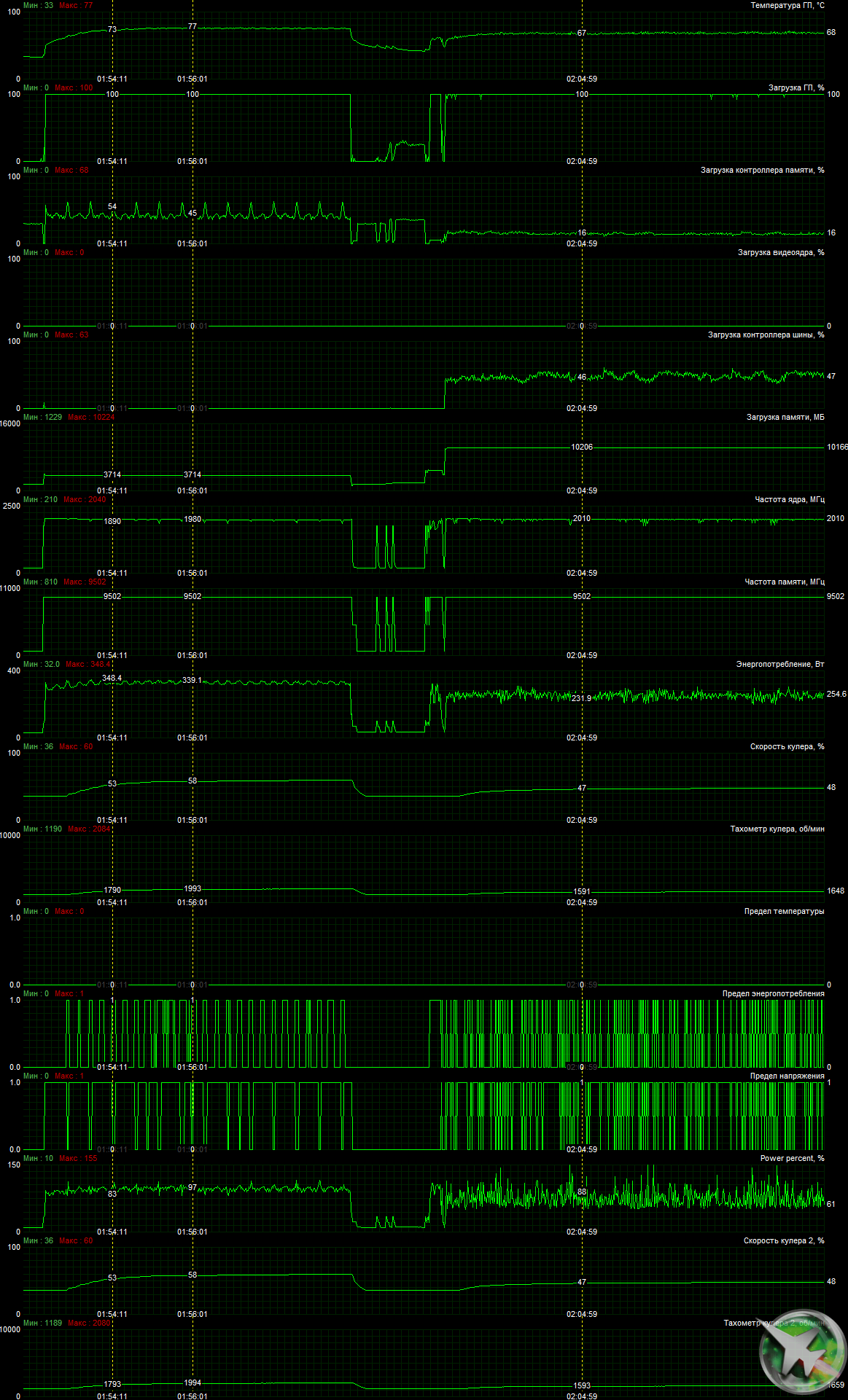 | 07 | RTX 2080 Super 8 ГБ, 1650—1965/15500 | 482 | 2578 | 53 500 |