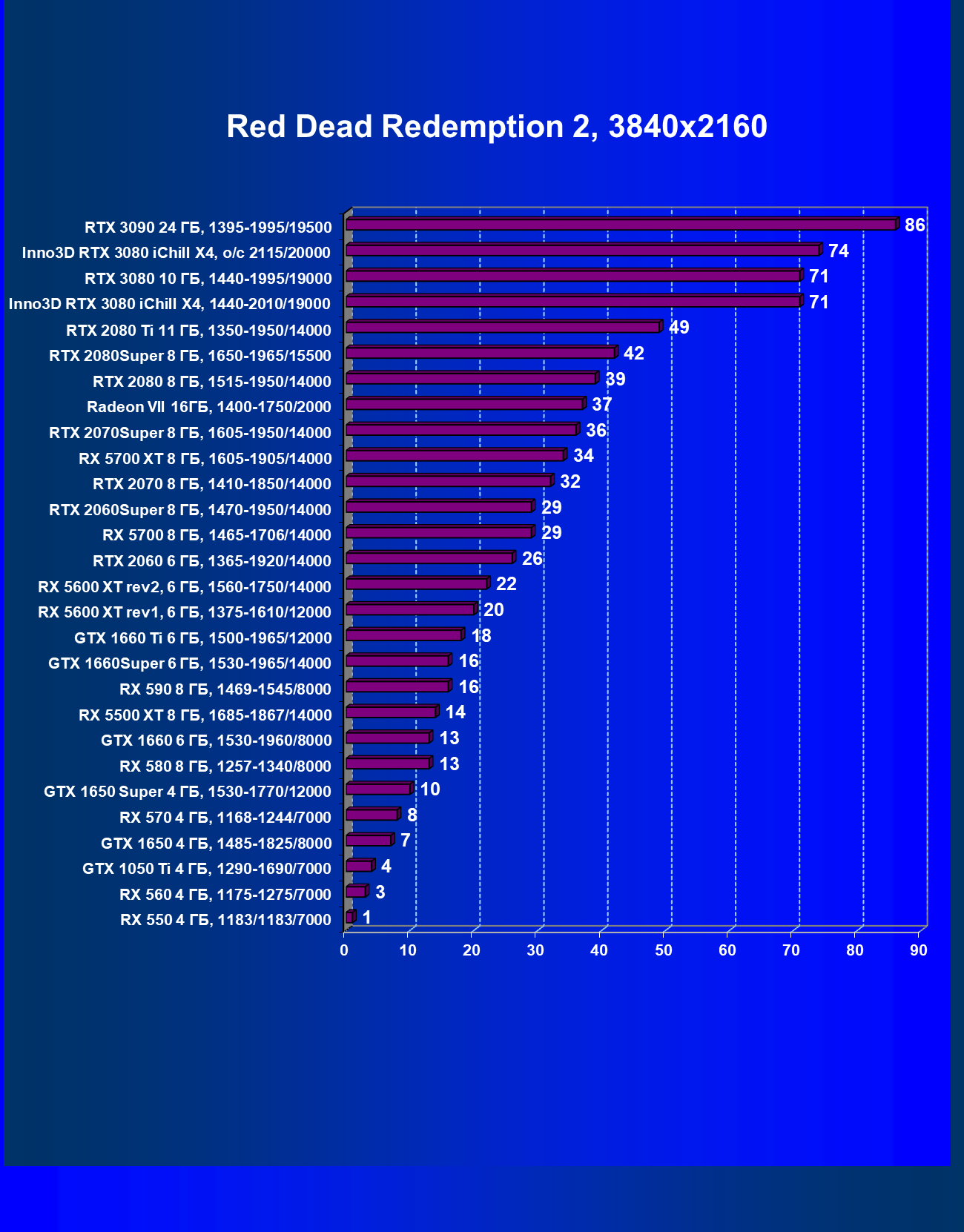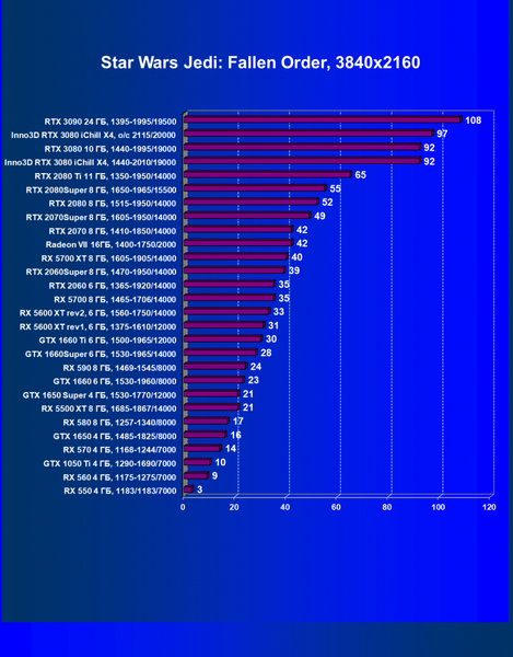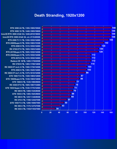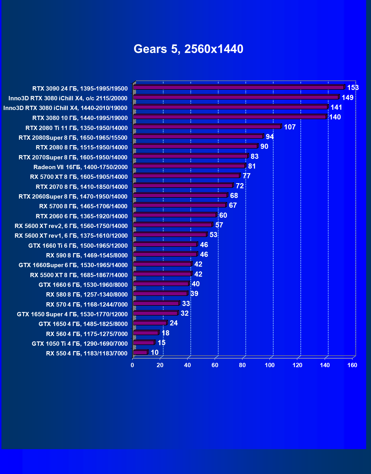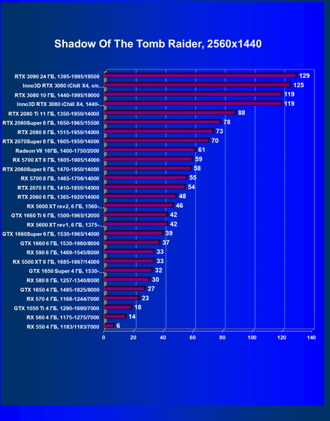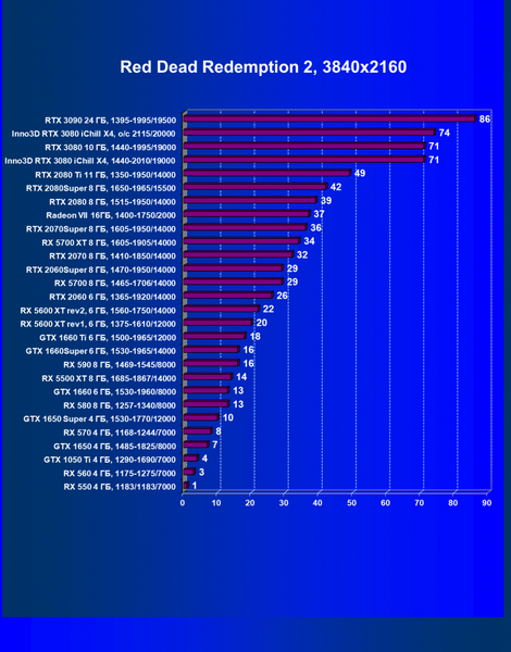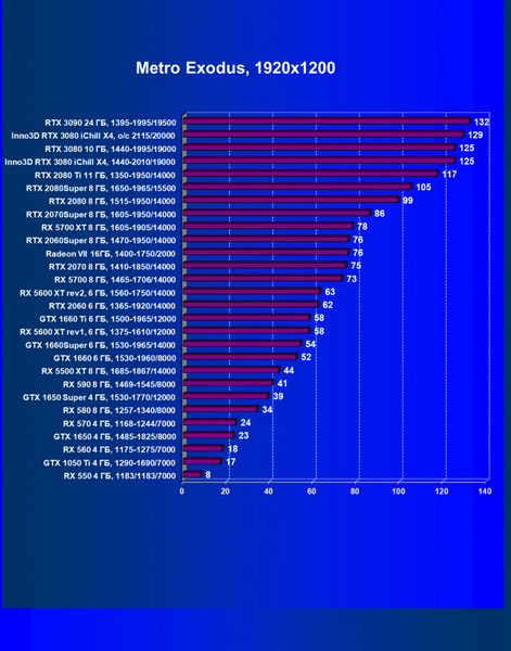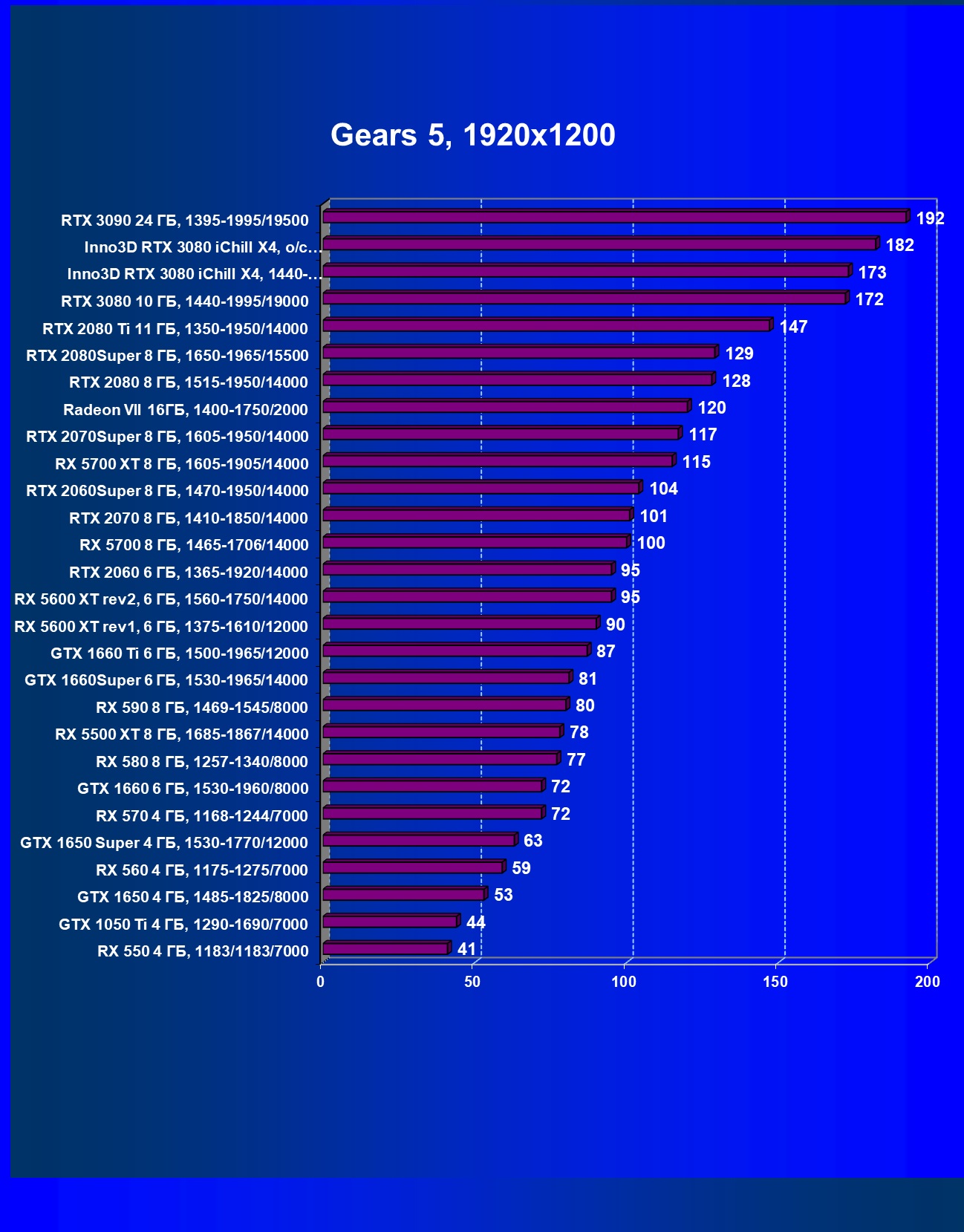 | 05 | RX 5700 XT 8 ГБ, 1605—1905/14000 | 527 | 1846 | 35 000 |
