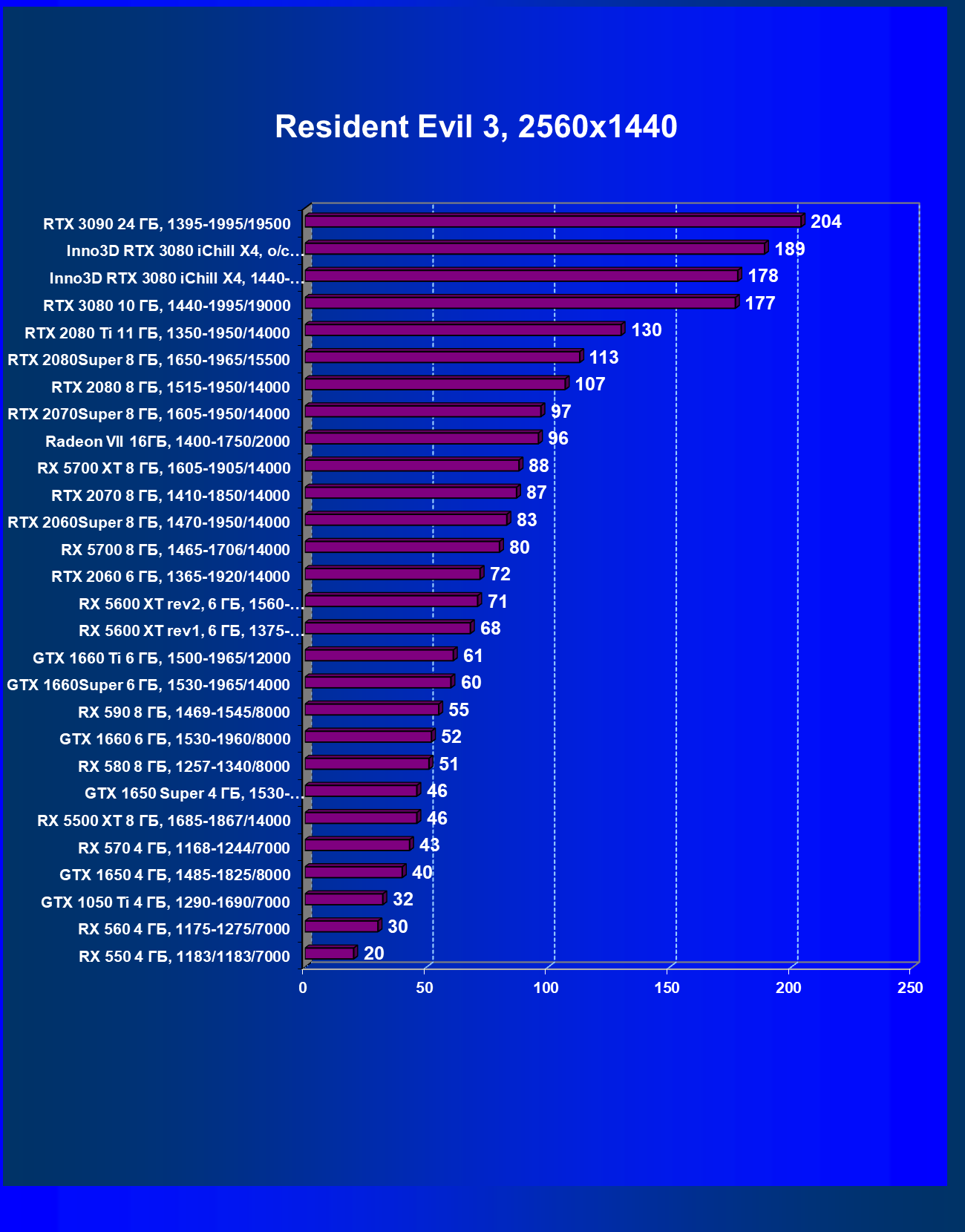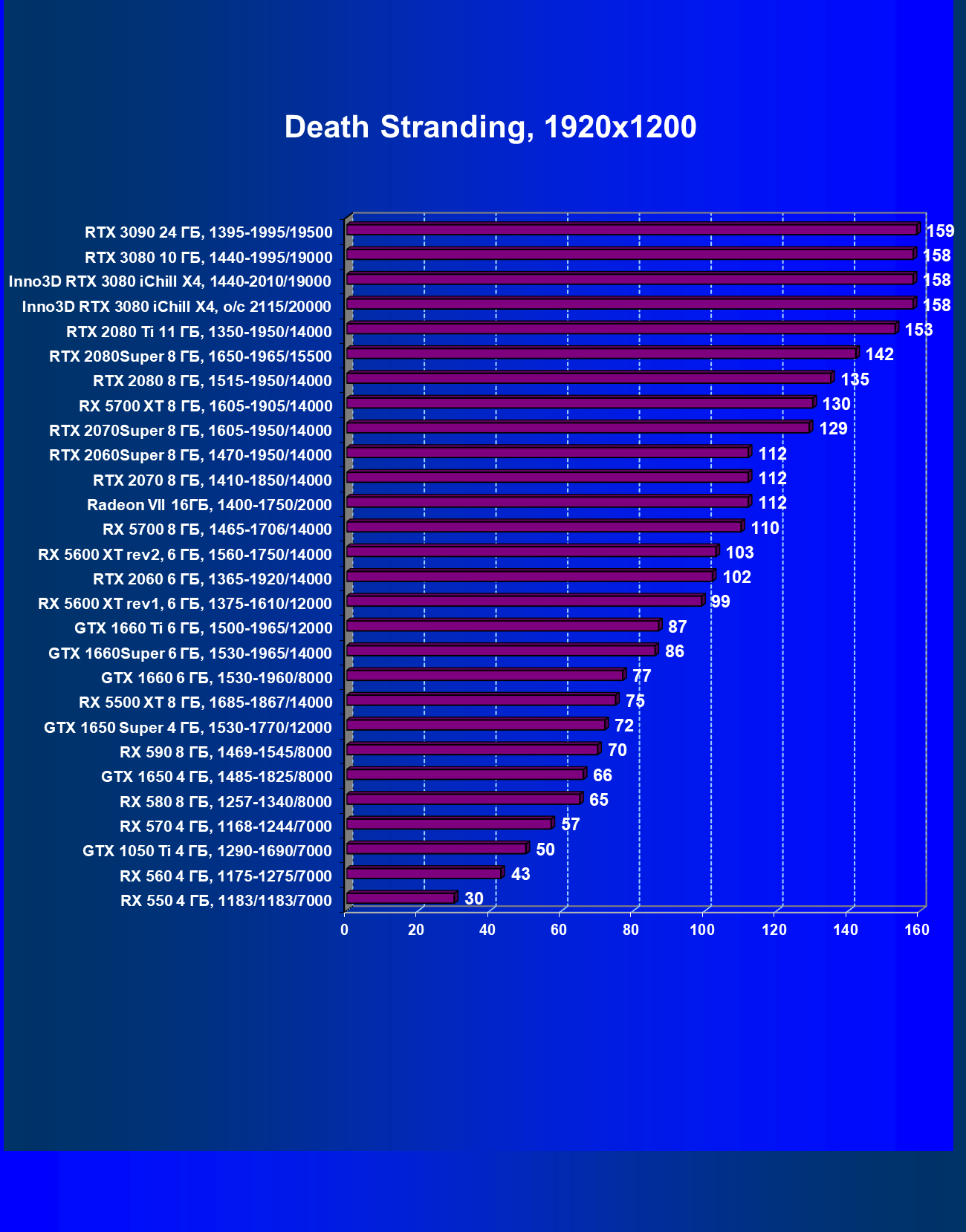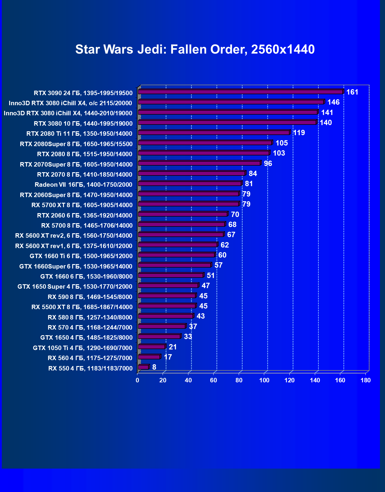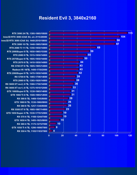 | 05 | RX 5700 XT 8 ГБ, 1605—1905/14000 | 527 | 1846 | 35 000 |