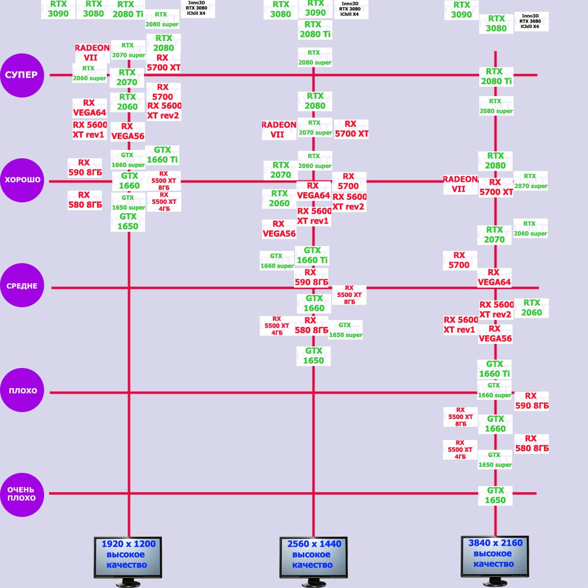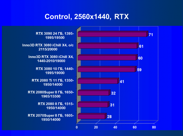| 03 | Inno3D RTX 3080 iChill X4, 1440—2010/19000 | 2100 | 300 | 70 000 |