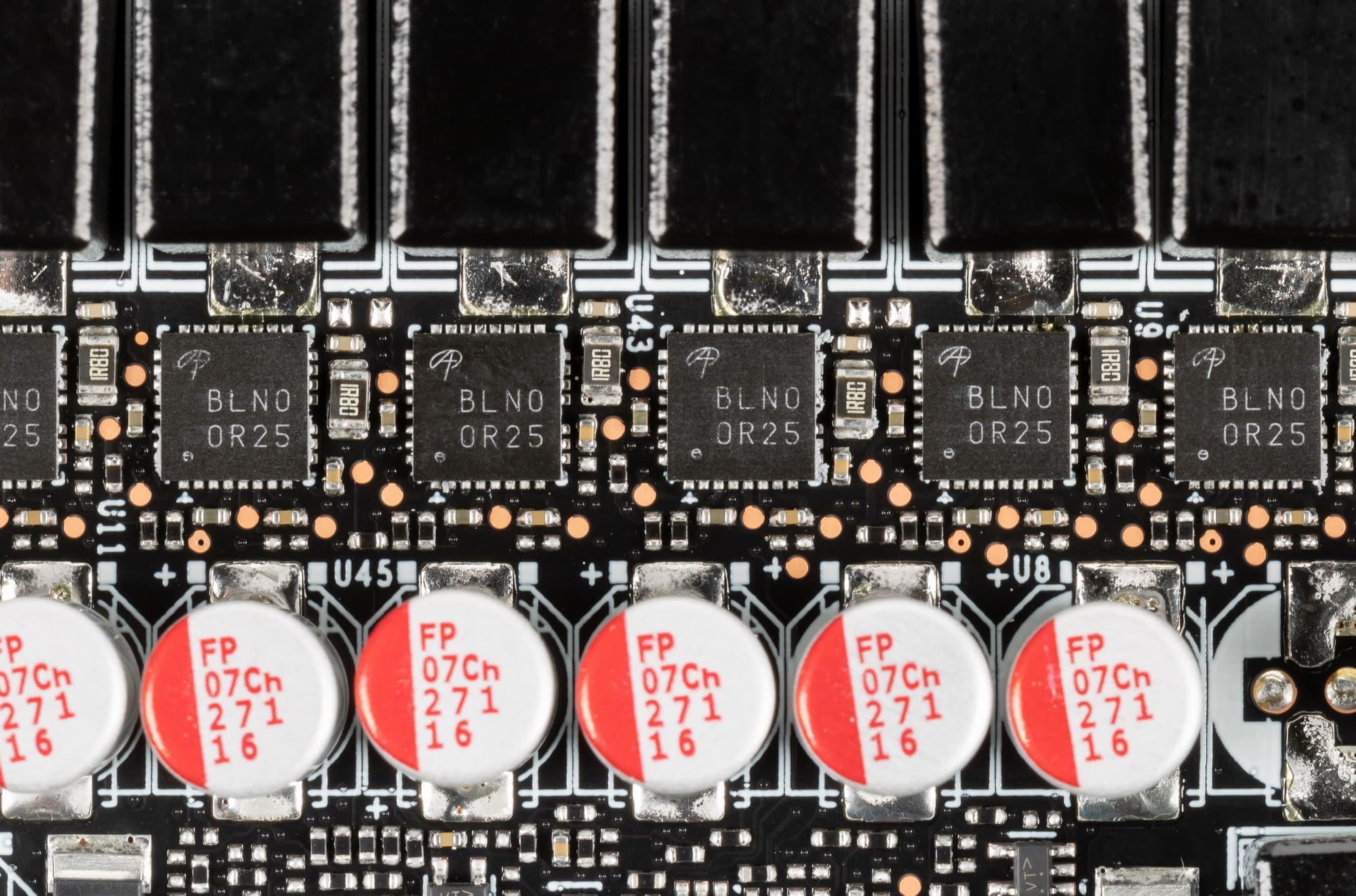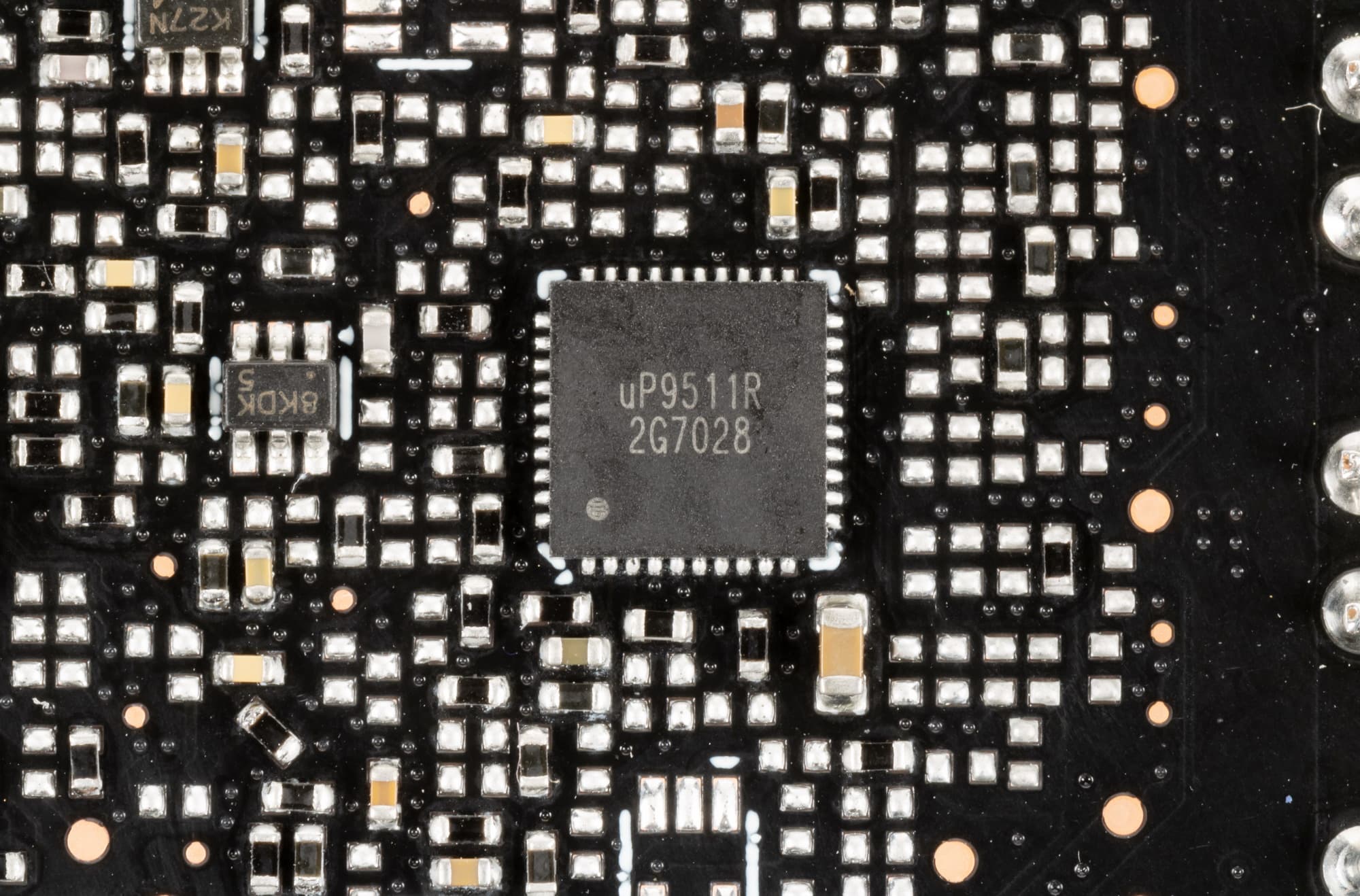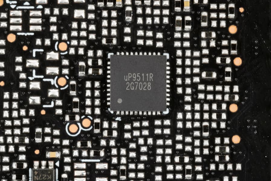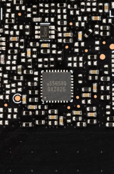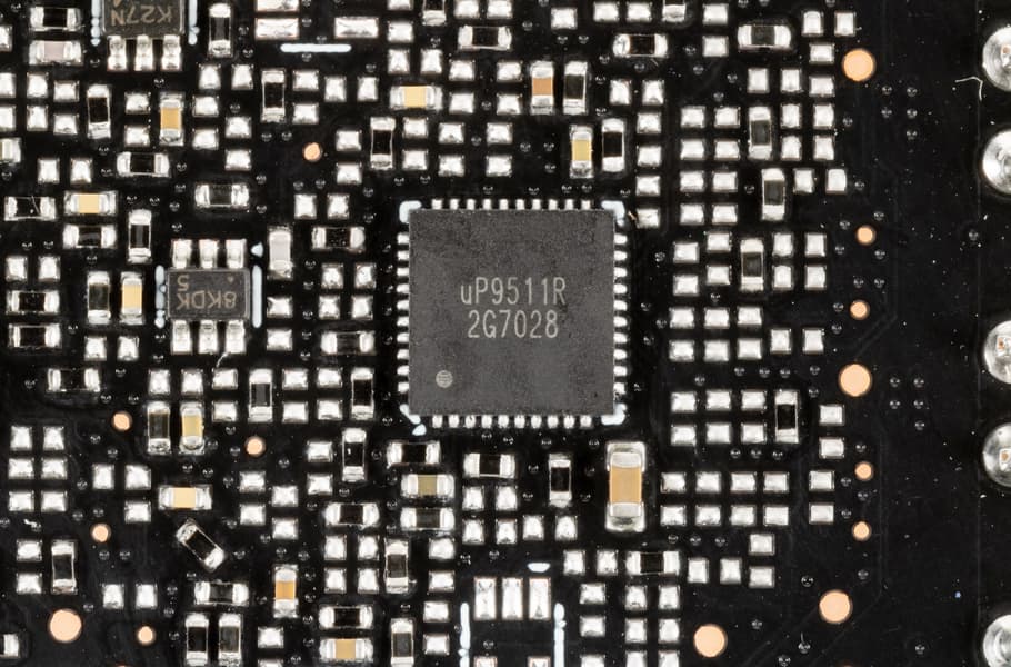 Также имеются два контроллера uS5650Q (uPI Semiconductor), отвечающие за мониторинг (отслеживание напряжений и температуры) и расположенные на разных сторонах PCB.