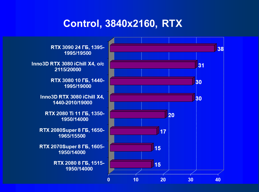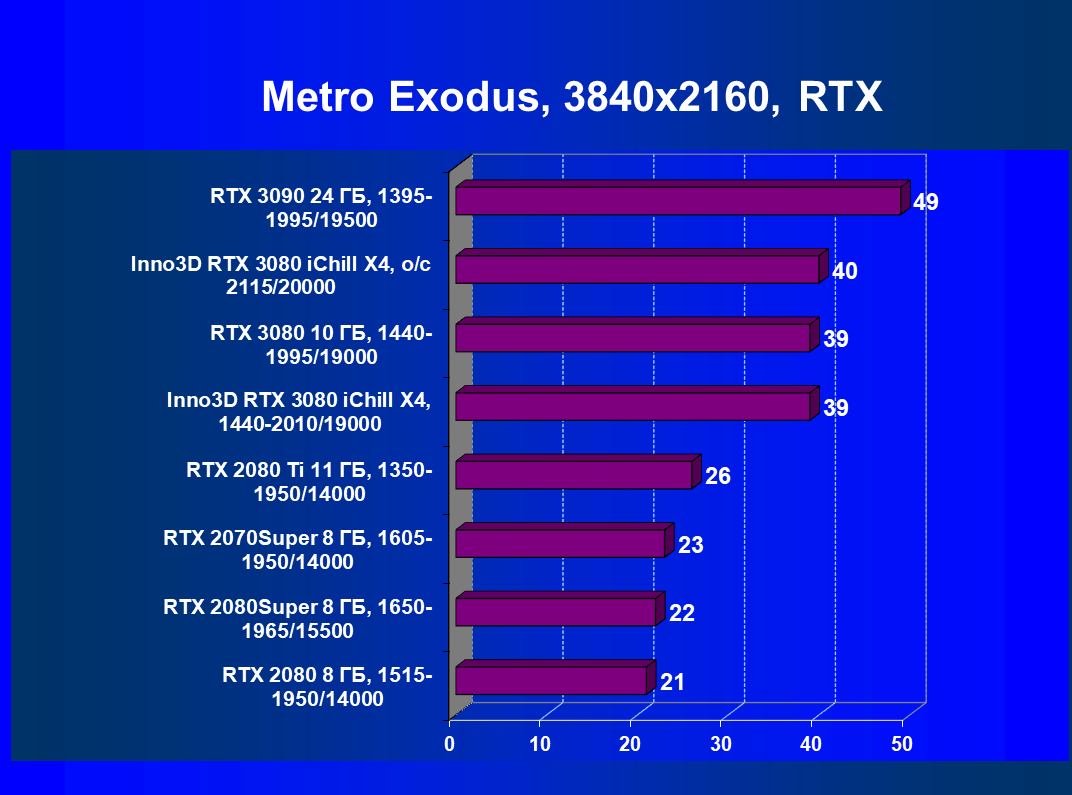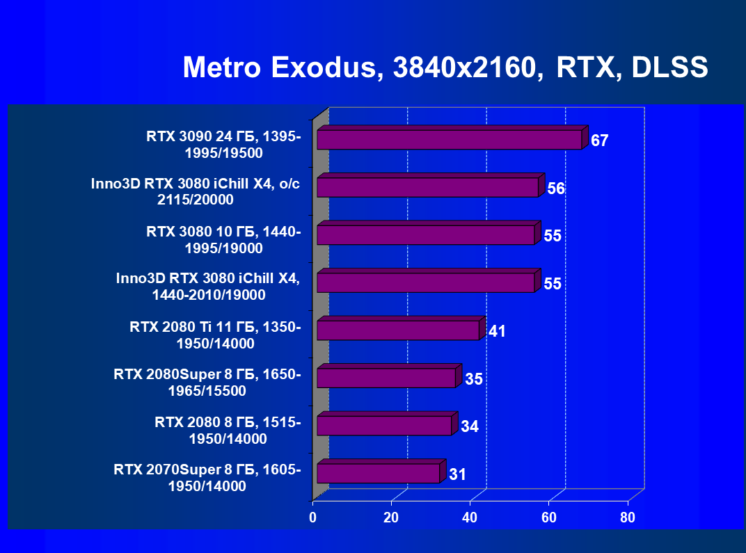 Повторим, что GeForce RTX 3080 в целом обеспечивает игроку полный комфорт при максимальных настройках графики в разрешении 4K во всех играх, включая и режим с включенной RTX.