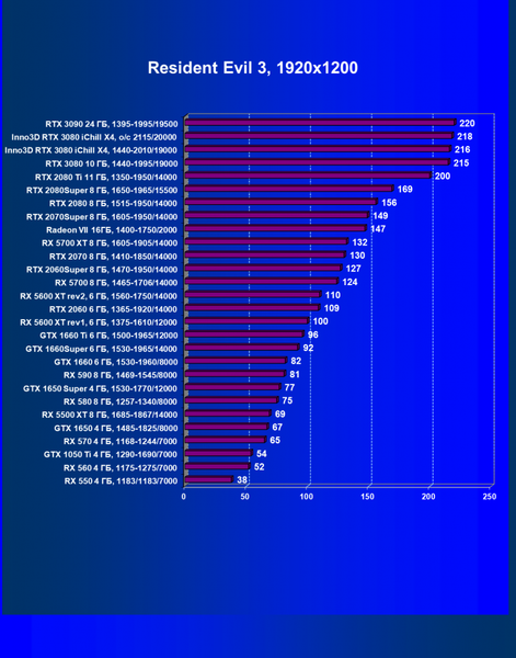 Рейтинг ускорителей iXBT.com демонстрирует нам функциональность видеокарт друг относительно друга и нормирован по самому слабому ускорителю — Radeon RX 550 (то есть сочетание скорости и функций Radeon RX 550 приняты за 100%). Рейтинги ведутся по 28 ежемесячно исследуемым нами акселераторам в рамках проекта Лучшая видеокарта месяца. В данном случае из общего списка выбрана группа карт для анализа, в которую входят GeForce RTX 3080 и его конкуренты.