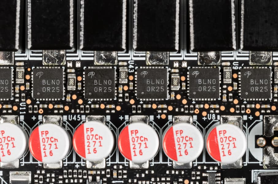 В преобразователе питания, традиционно для всех видеокарт Nvidia, используются транзисторные сборки DrMOS — в данном случае AOZ5311NQI (Alpha & Omega Semiconductor), каждая из которых рассчитана максимально на 50 А.