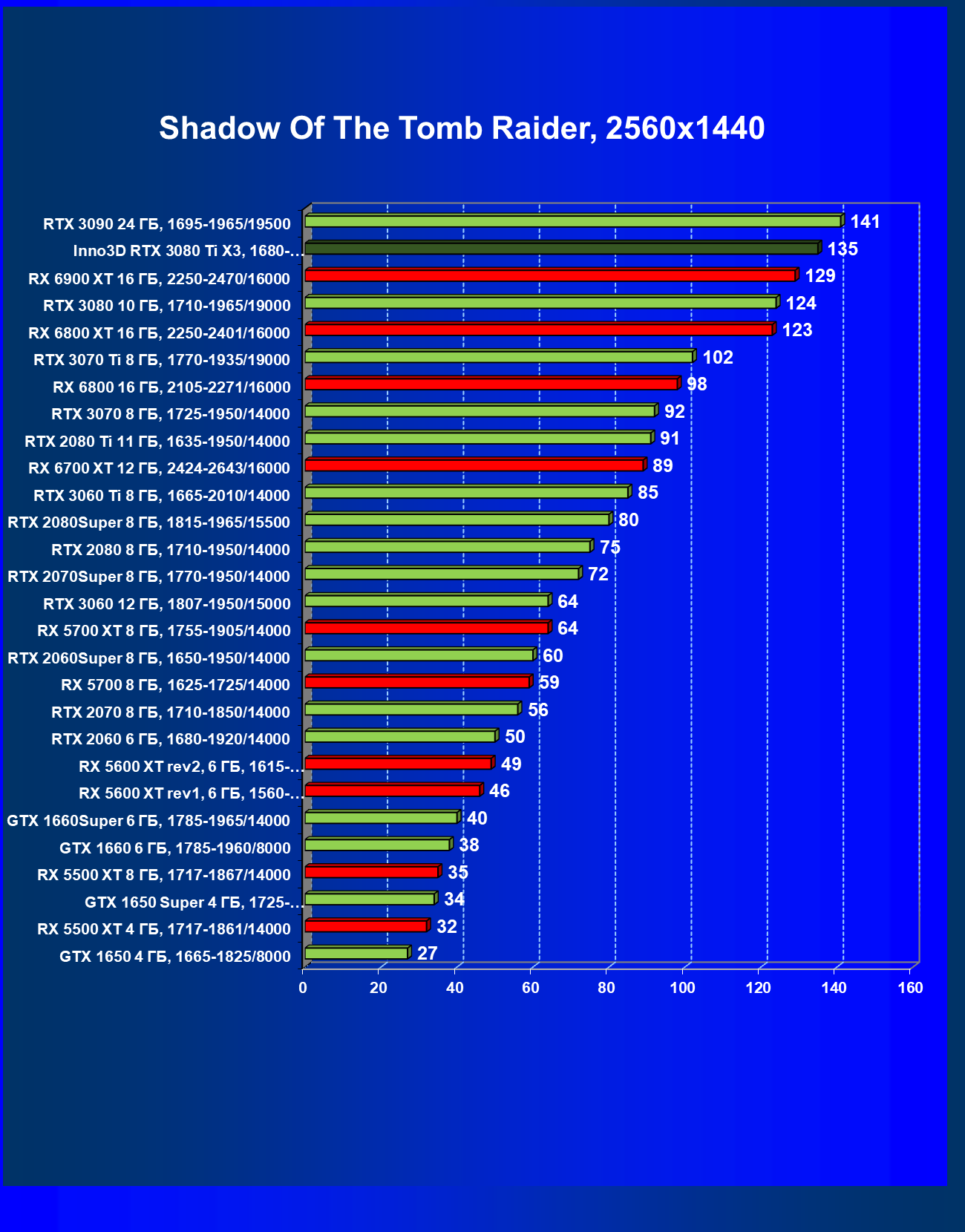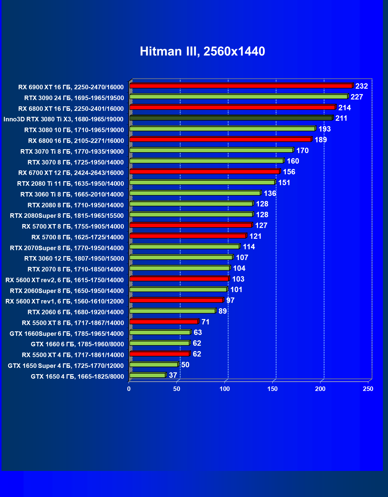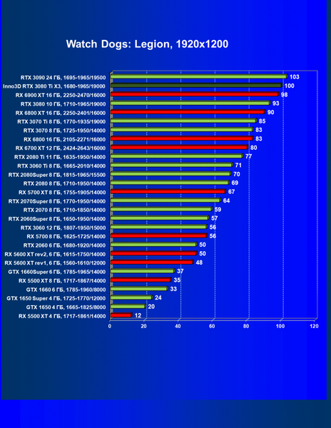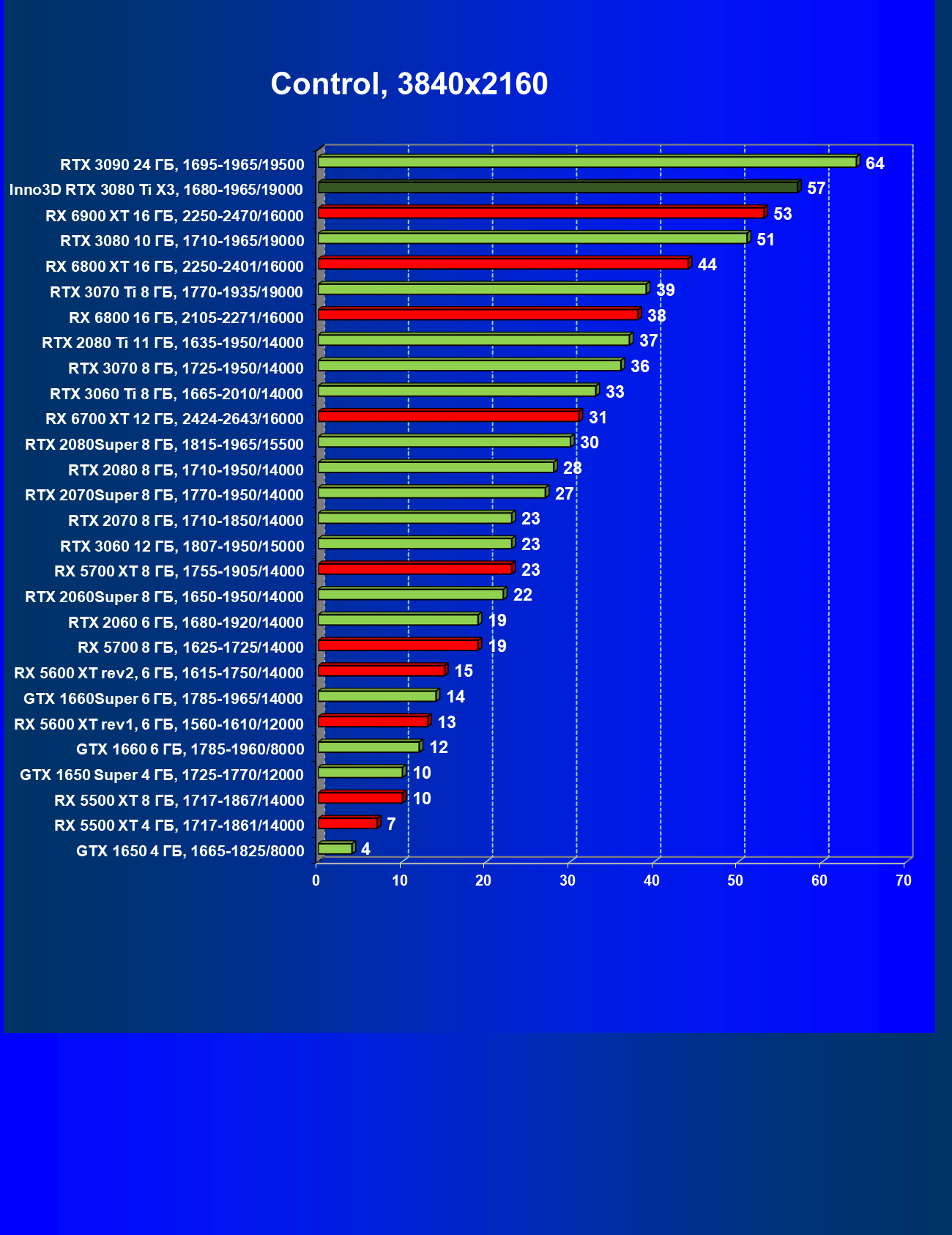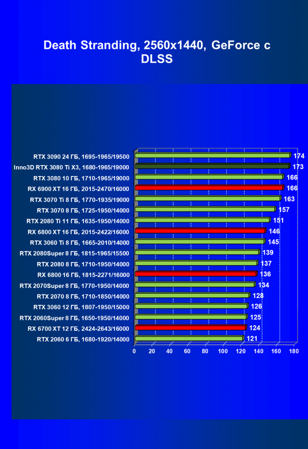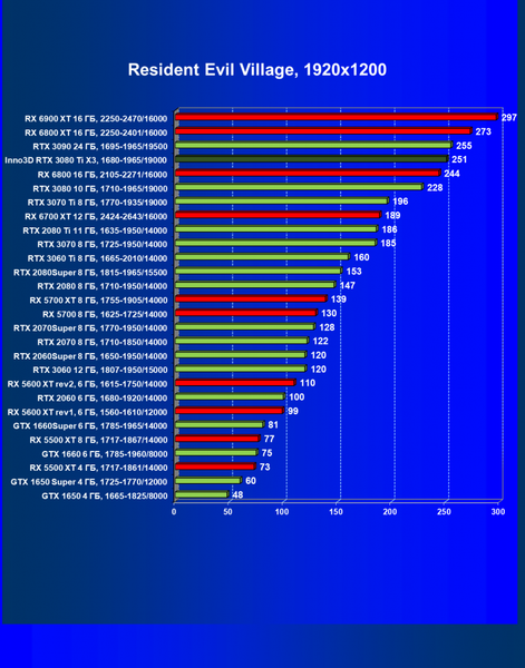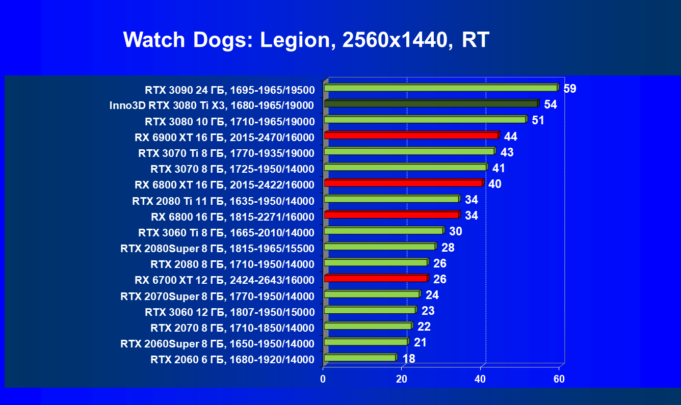 Все Radeon RX 6000 оказались аутсайдерами из-за чрезмерного падения производительности в играх с трассировкой лучей, а GeForce RTX 3080 Ti логично оказался посередине между GeForce RTX 3080 и GeForce RTX 3090.