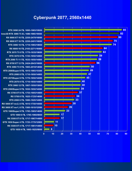 | 11 | RX 6800 XT 16 ГБ, 2015—2422/16000 | 160 | 13 | 124 000 |