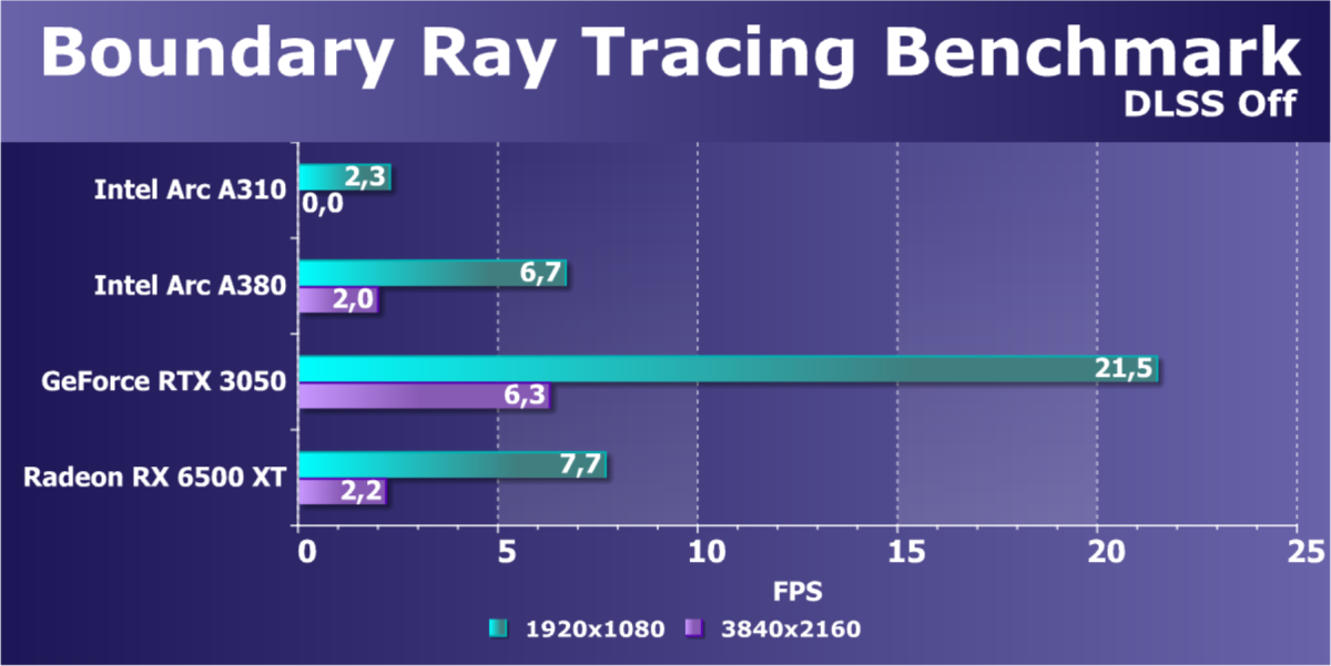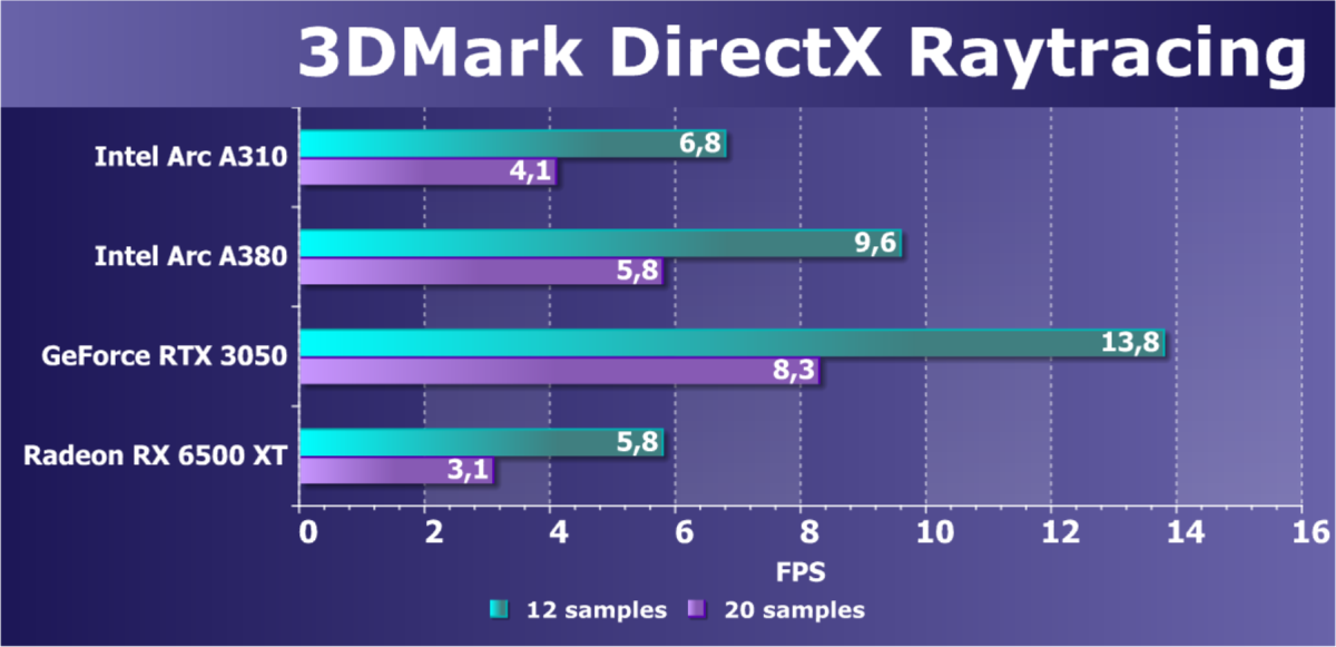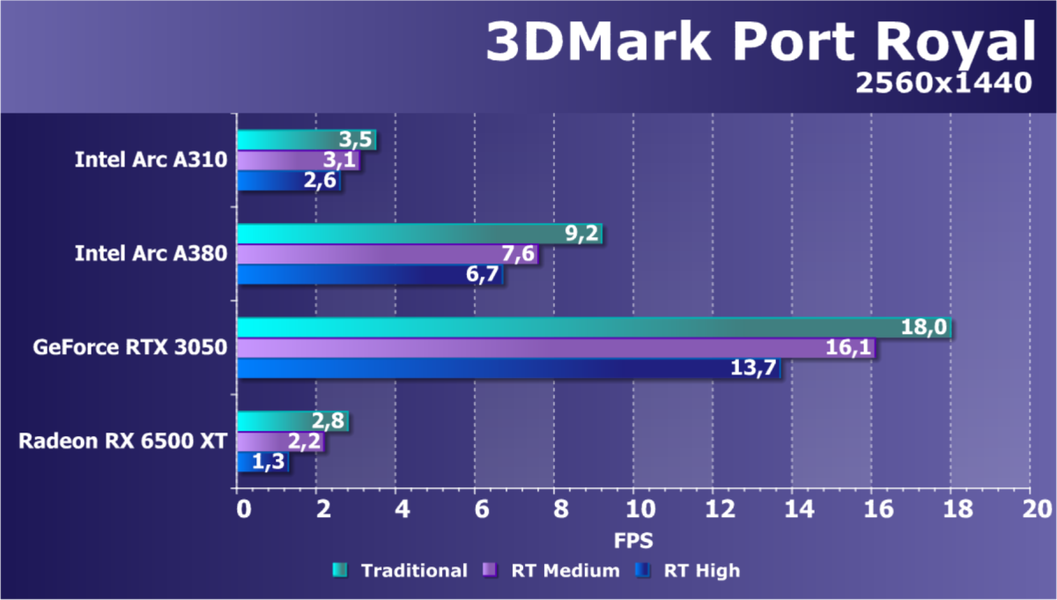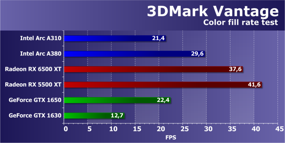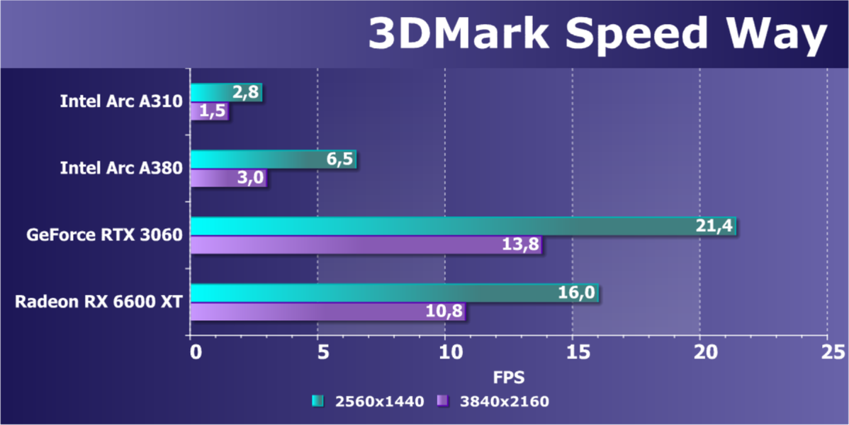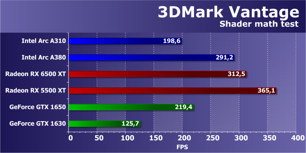 Arc A310 проигрывает даже таким очень старым ускорителям, как GeForce GTX 1050 Ti и GeForce GTX 1060 (6 ГБ). Однако он всё же оказался быстрее, чем не так давно непонятно зачем выпущенный GeForce GTX 1630.