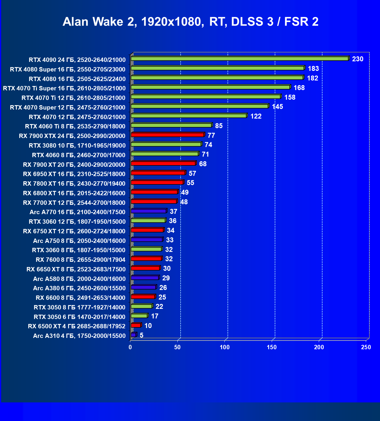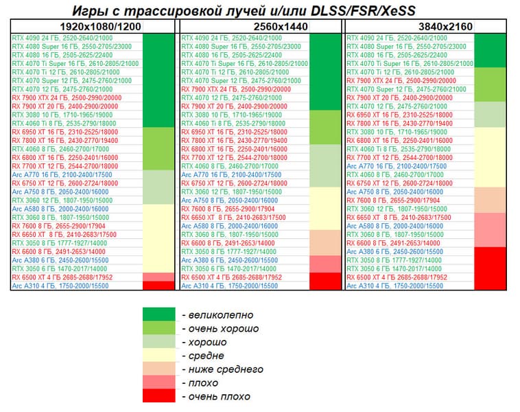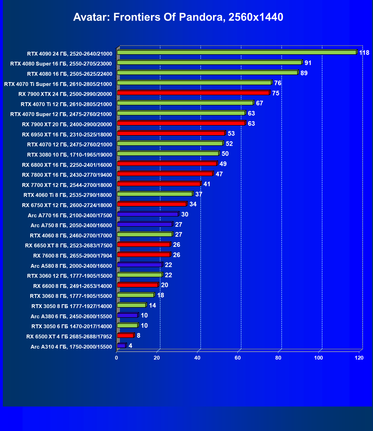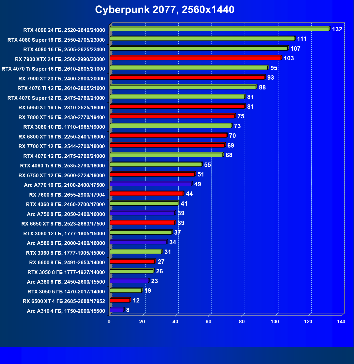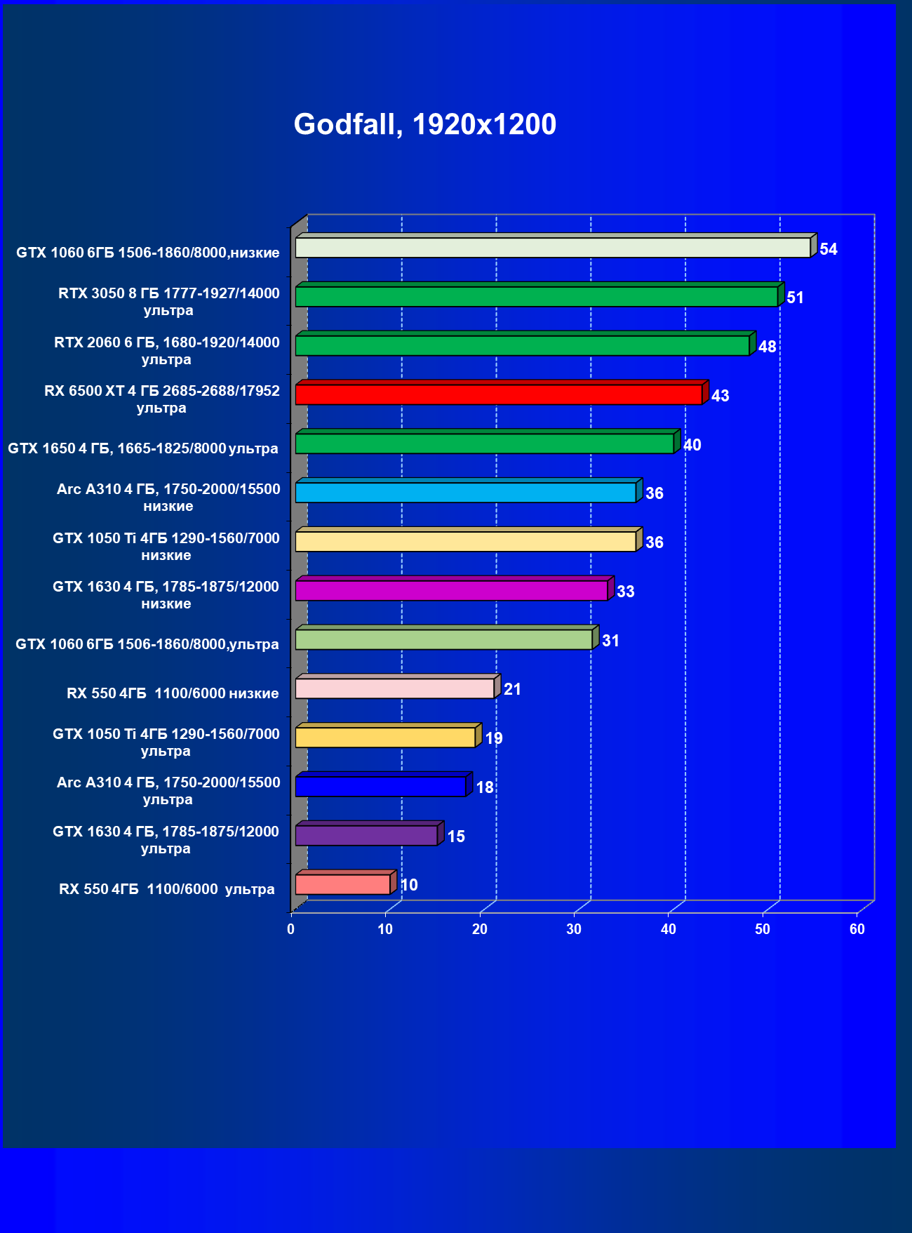| 08 | Arc A310 4 ГБ, 1750—2450/15500, настройки ультра | 186 | 223 | 12 000 |