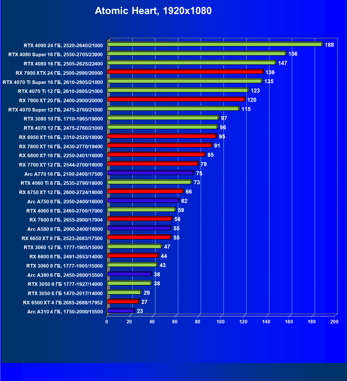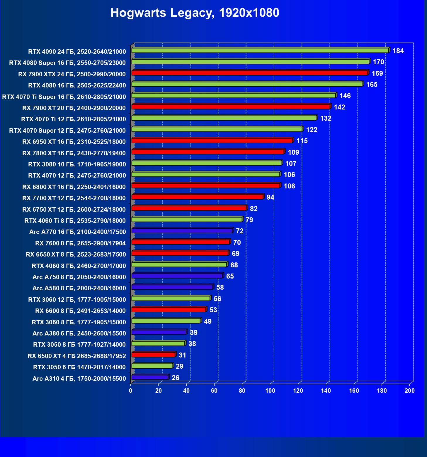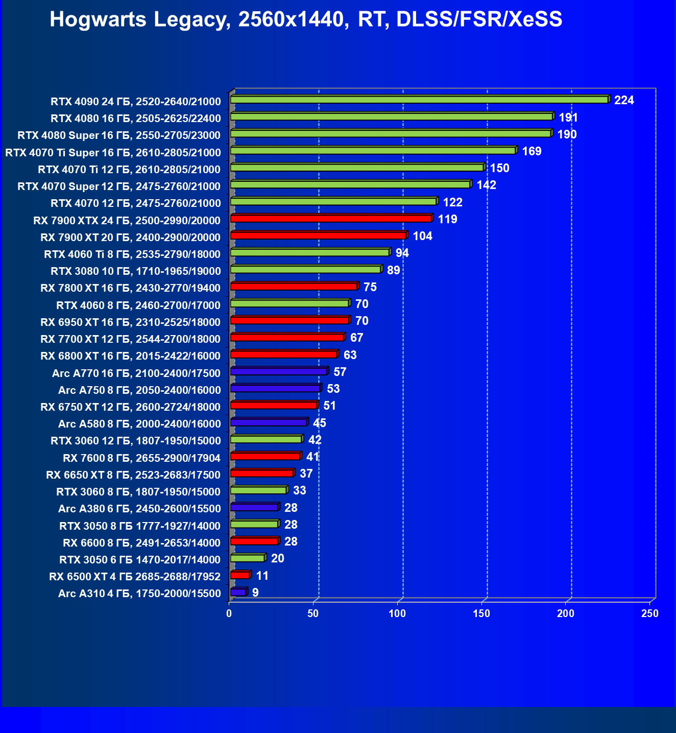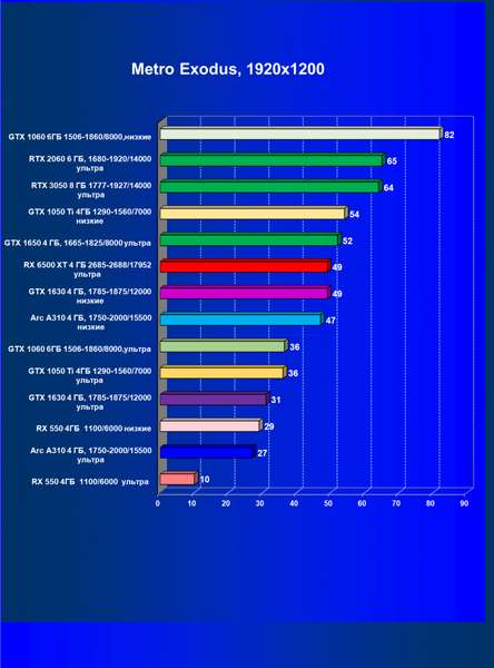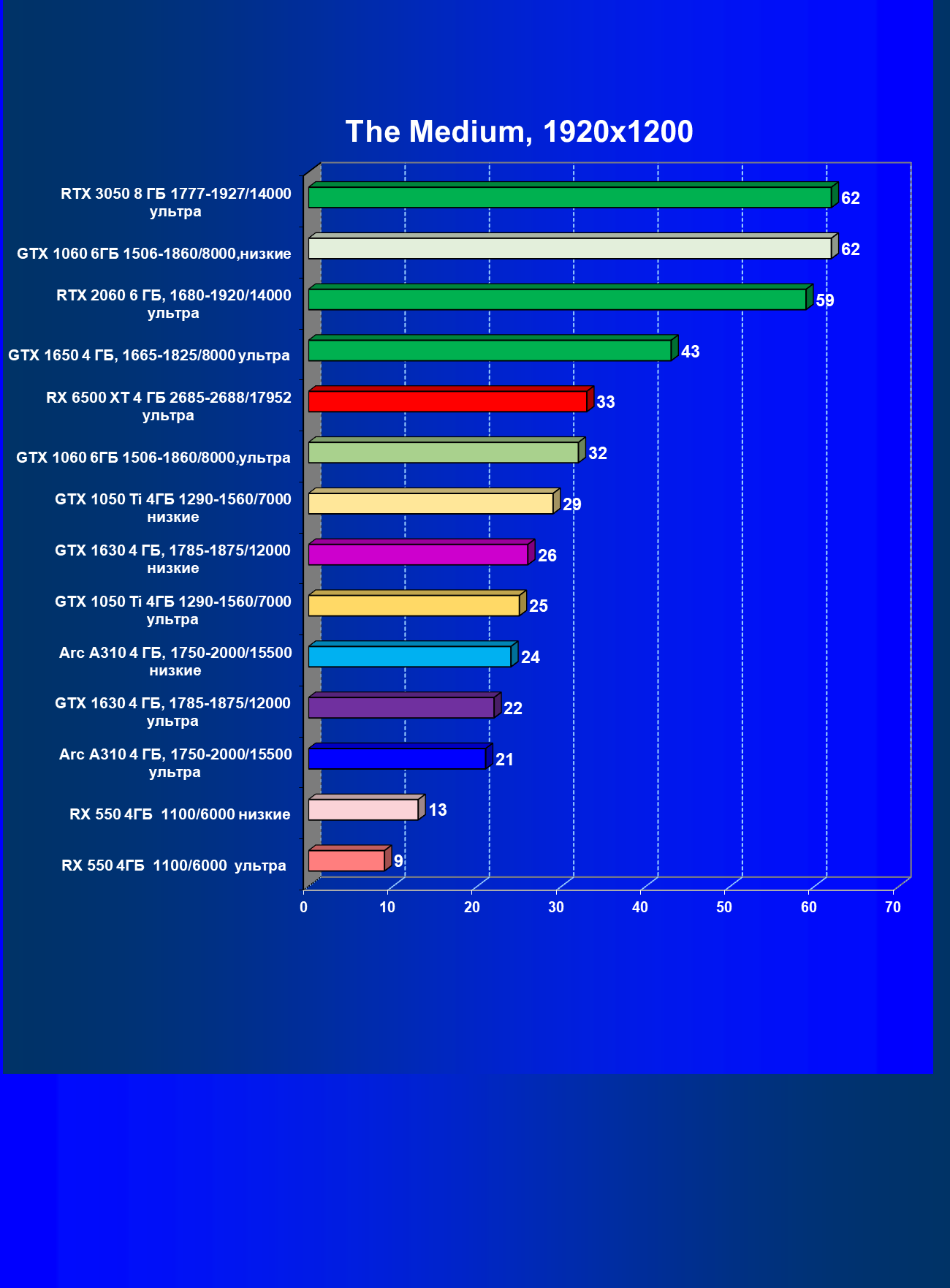| 08 | Arc A310 4 ГБ, 1750—2450/15500, настройки ультра | 186 | 223 | 12 000 |