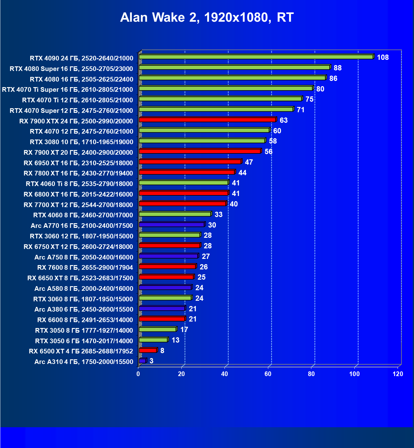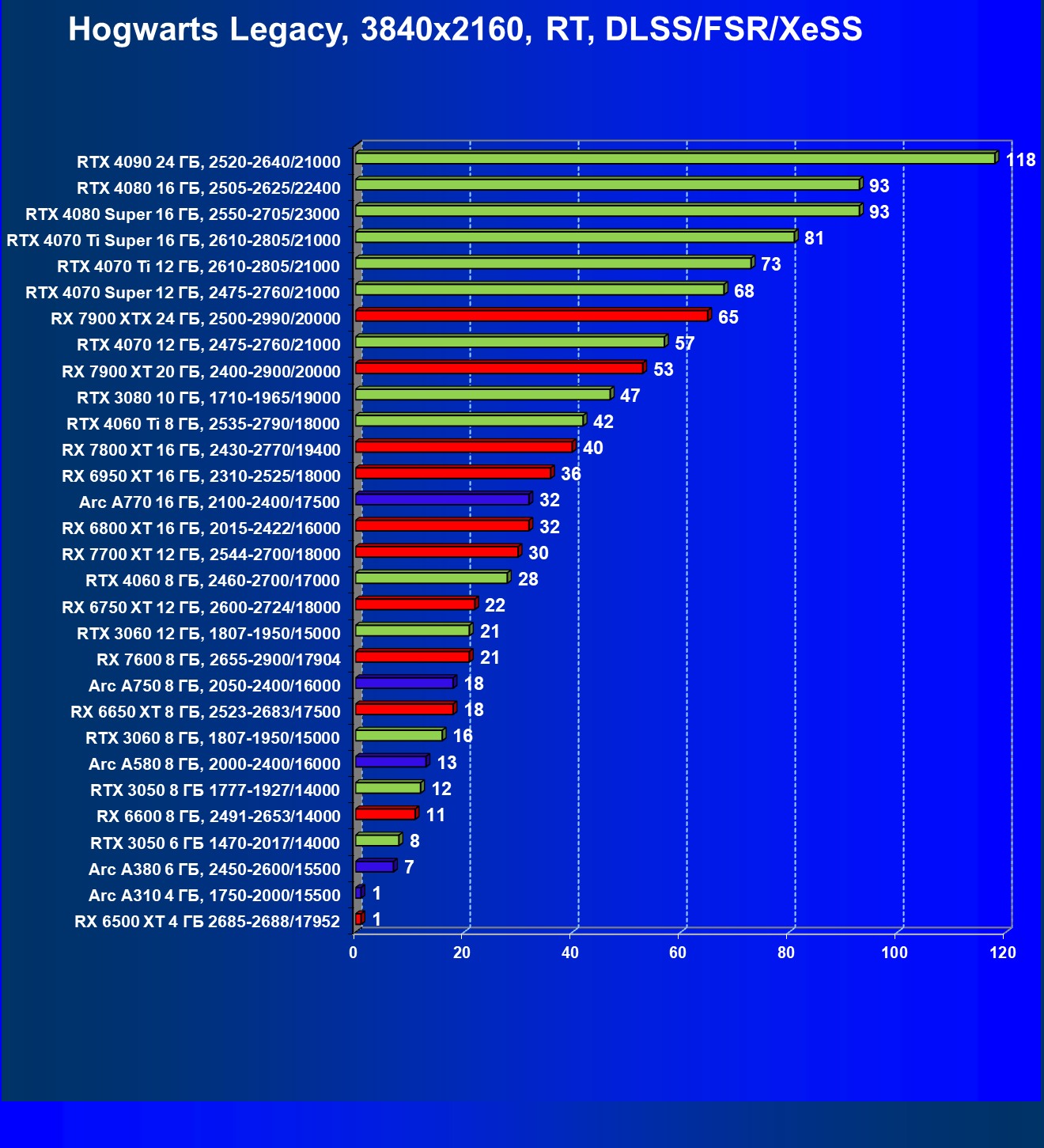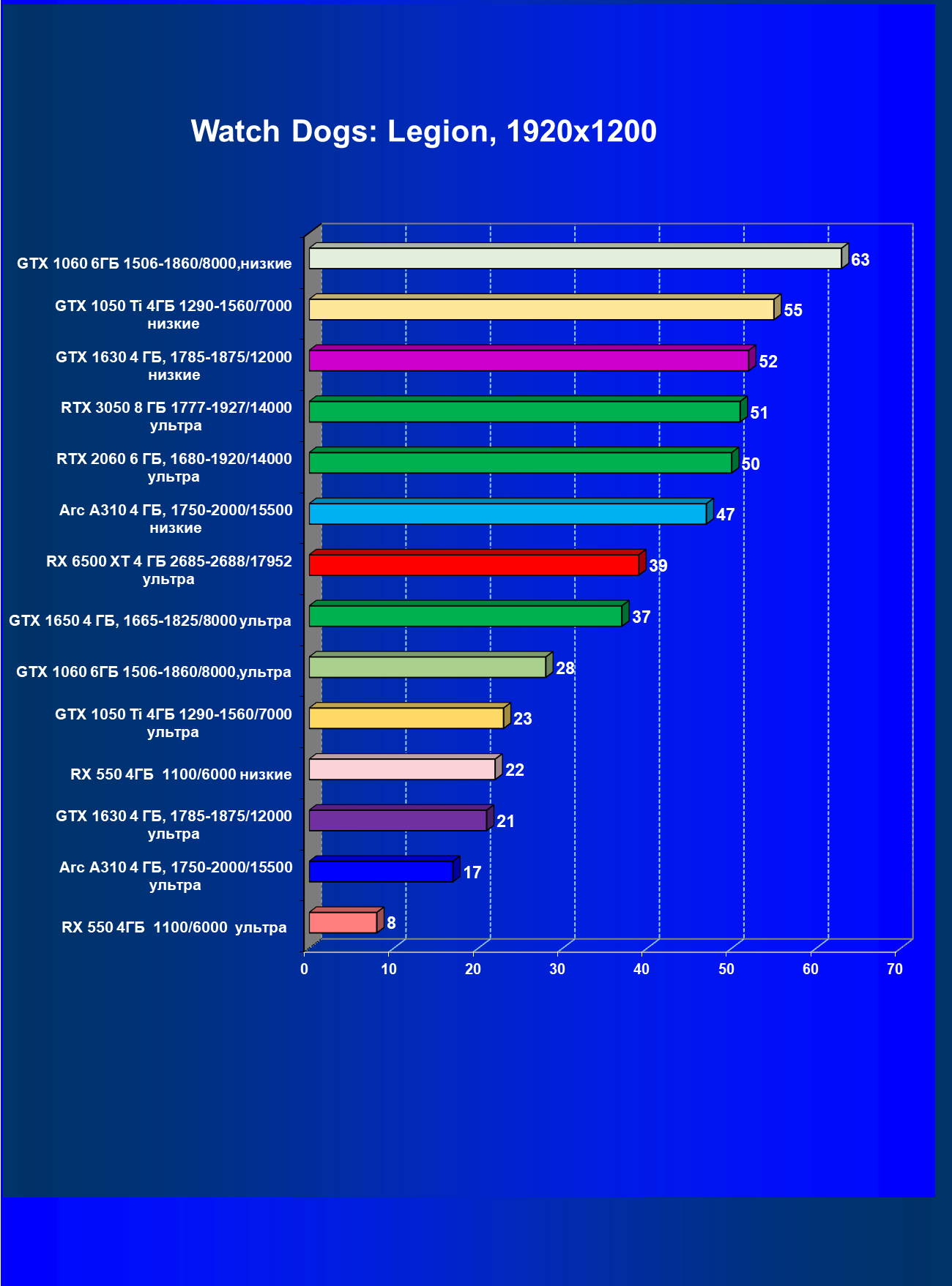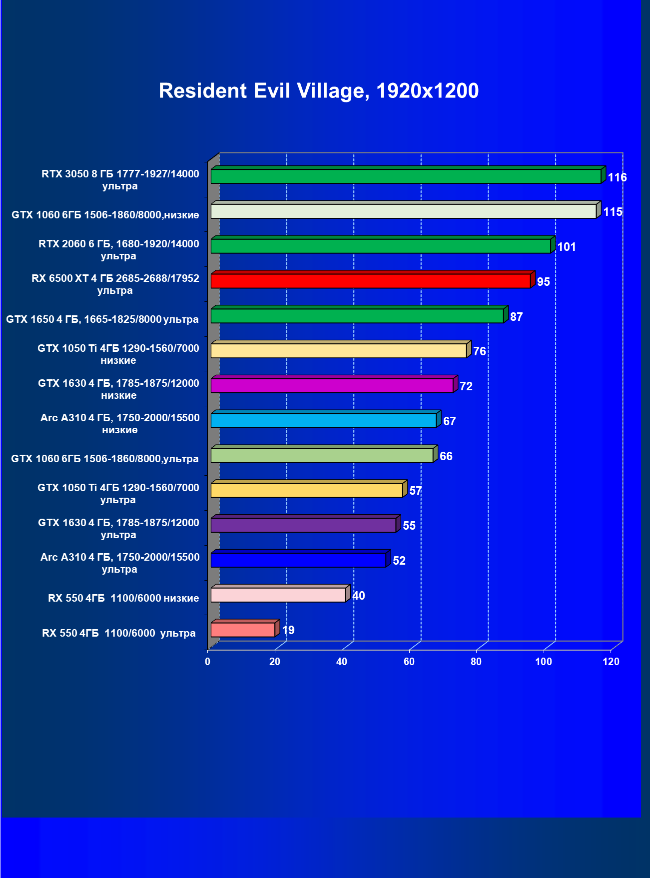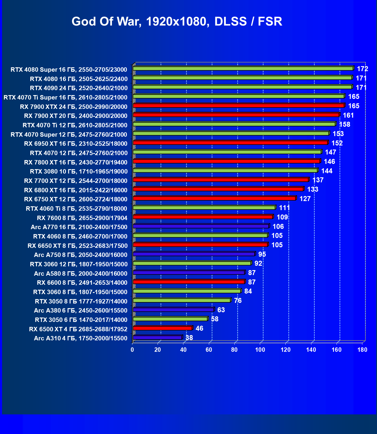 | 08 | Arc A310 4 ГБ, 1750—2450/15500, настройки ультра | 186 | 223 | 12 000 |
