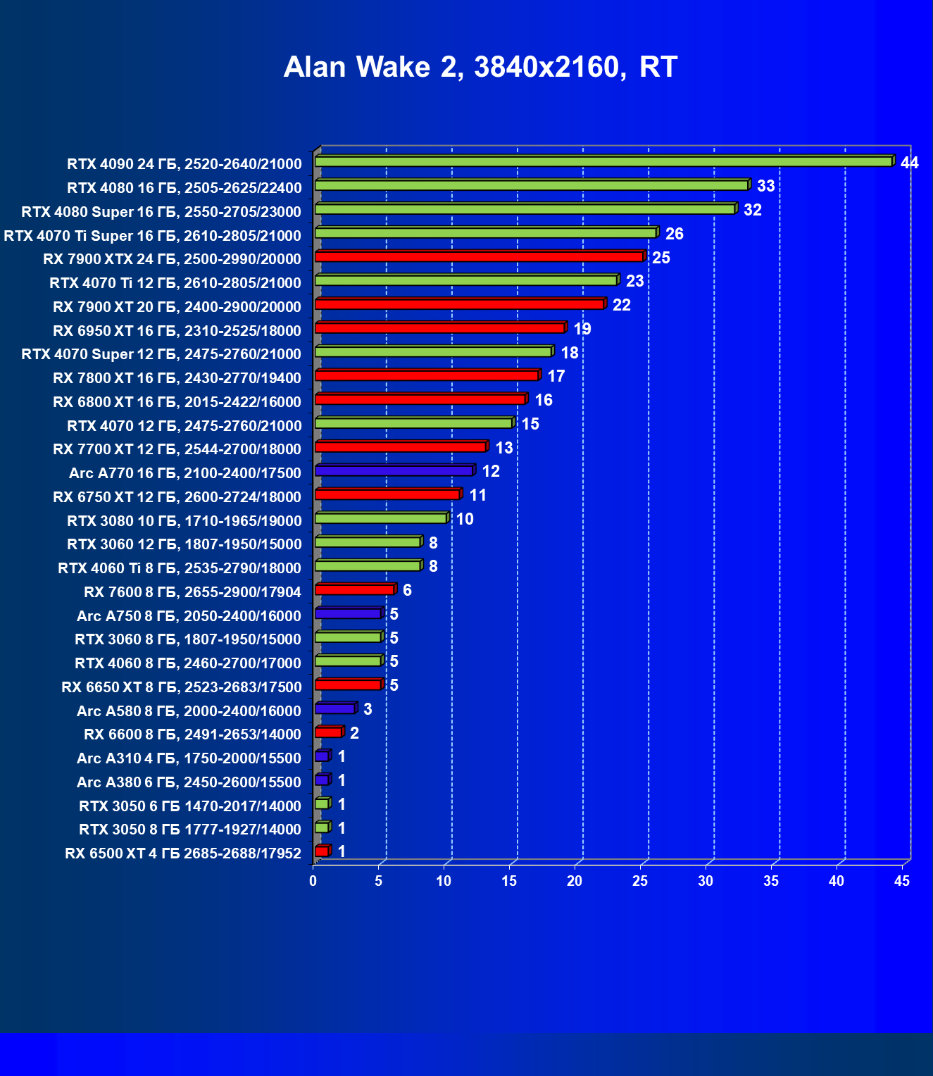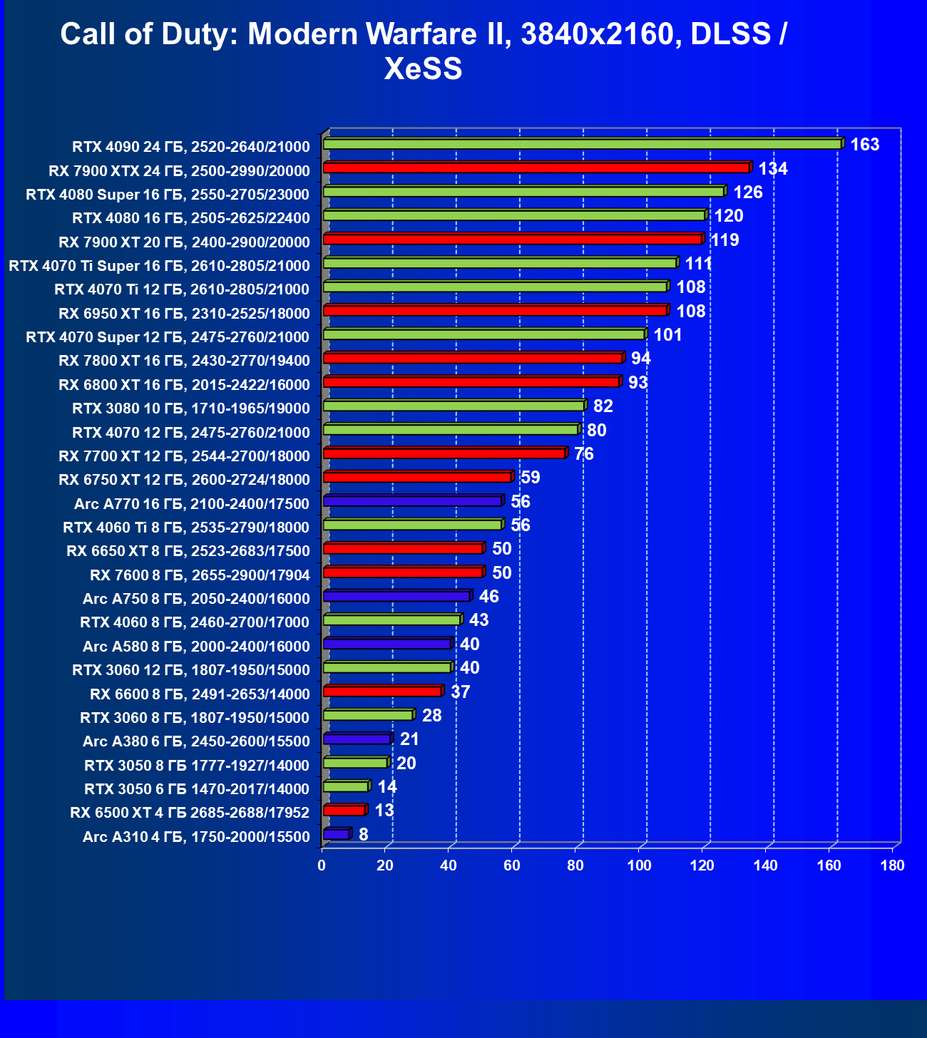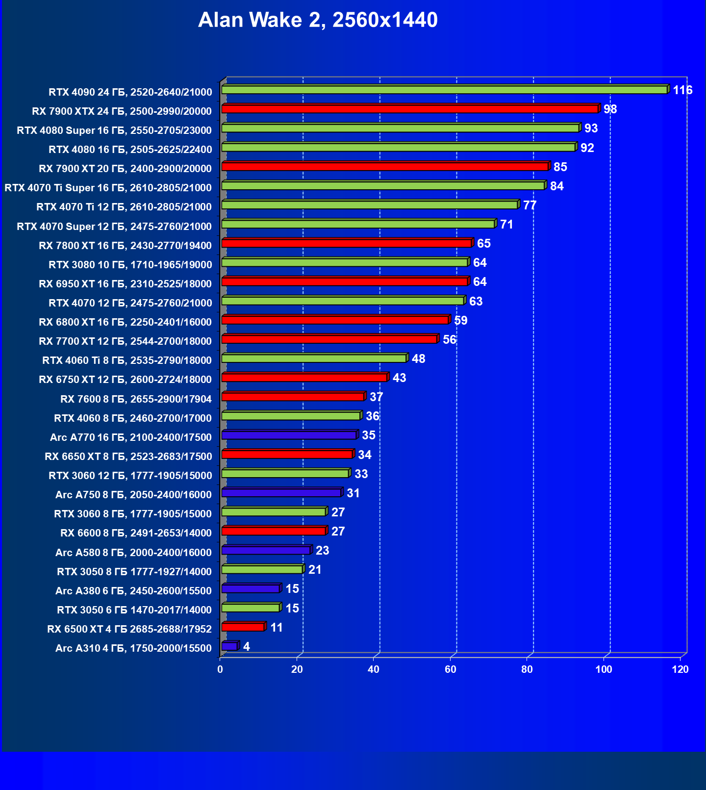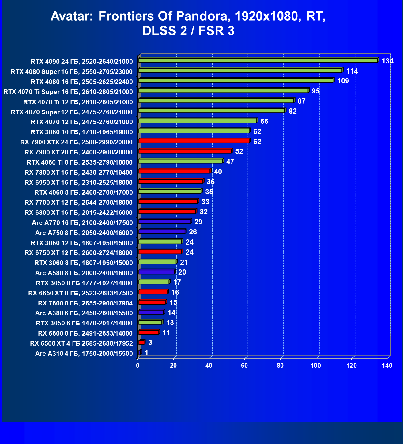| 08 | Arc A310 4 ГБ, 1750—2450/15500, настройки ультра | 186 | 223 | 12 000 |