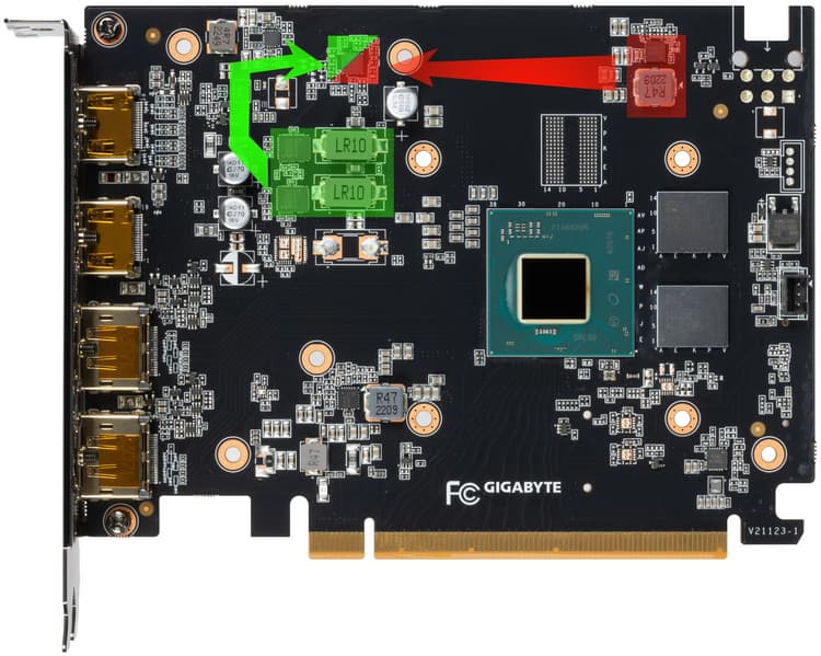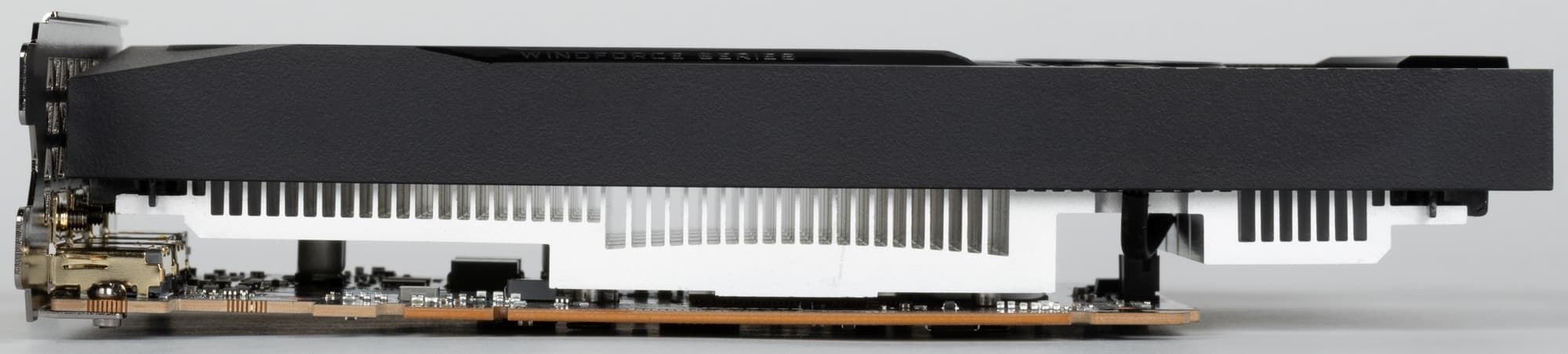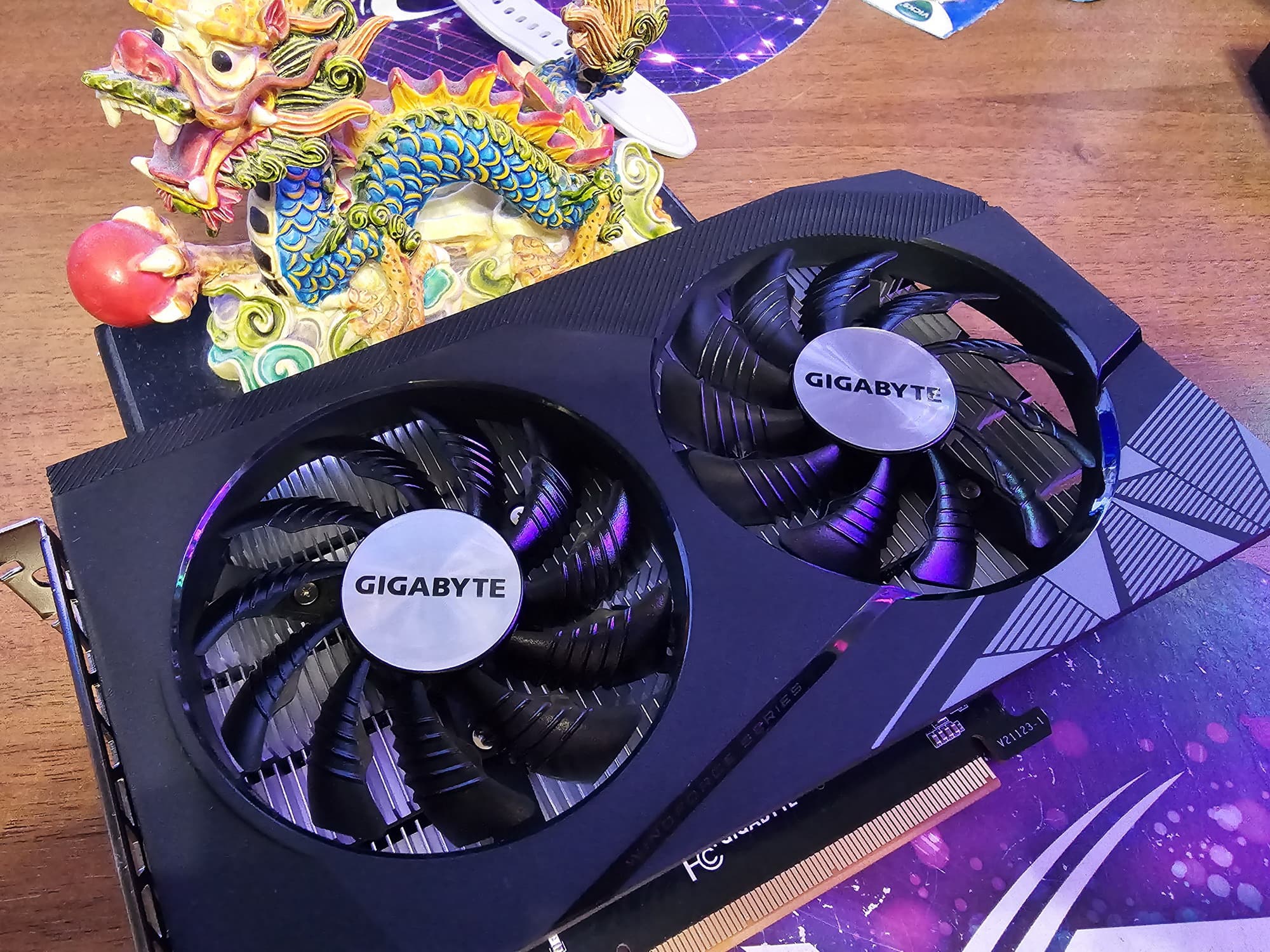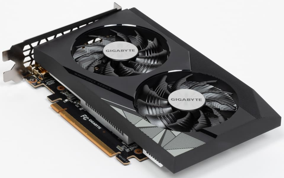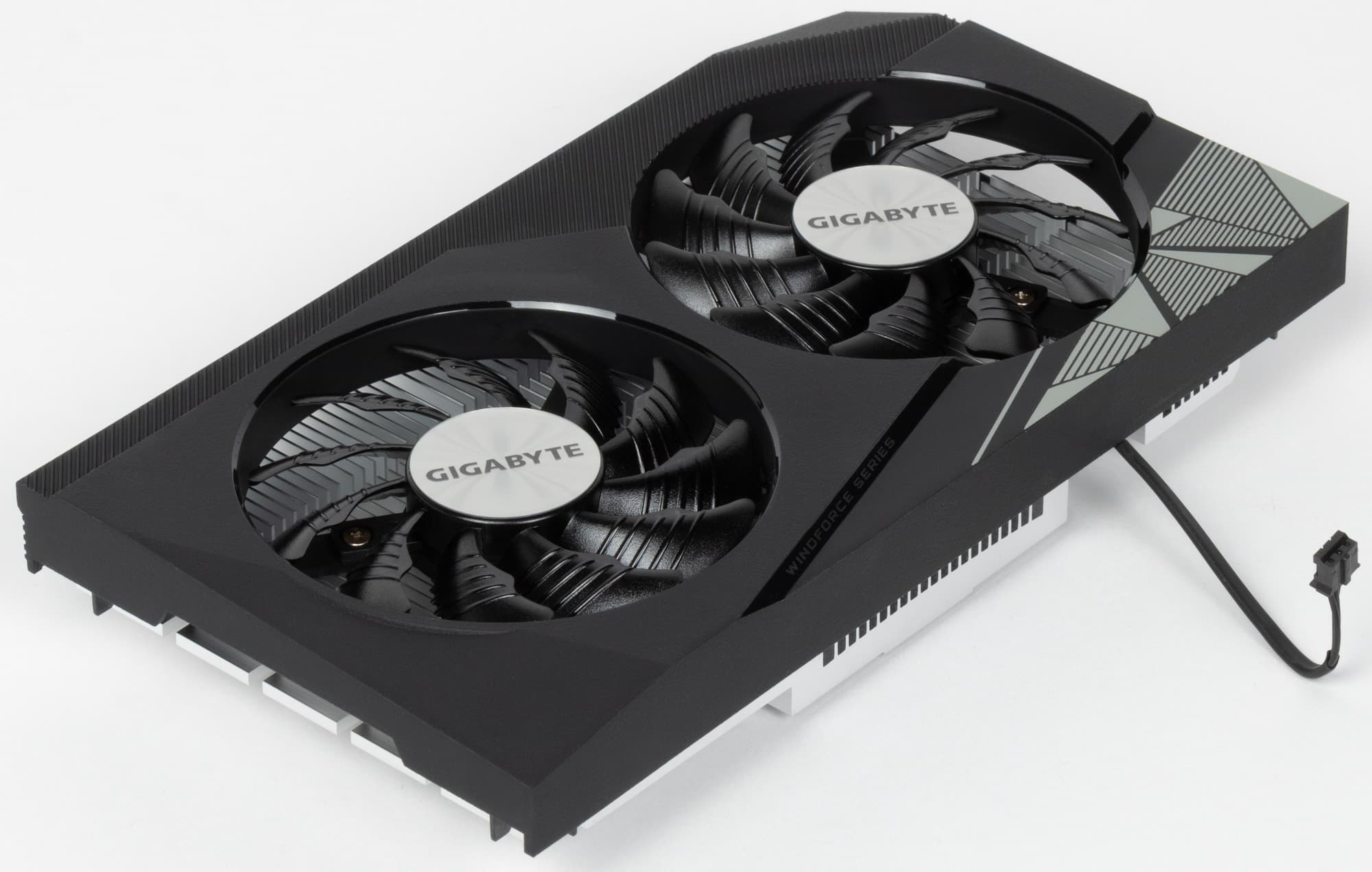 Конкретная протестированная карта Gigabyte Intel Arc A310 WindForce 4G (4 ГБ) имеет стандартный двухслотовый размер, кулер тихий и эффективный, карта может потреблять до 38 Вт и не требует дополнительного питания.