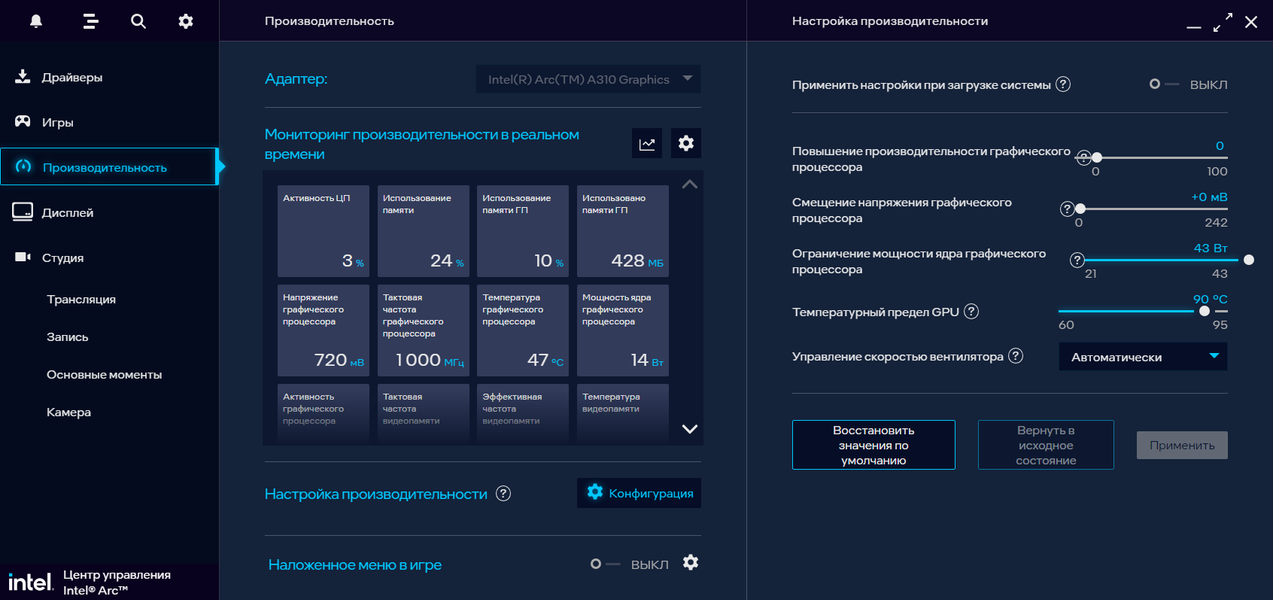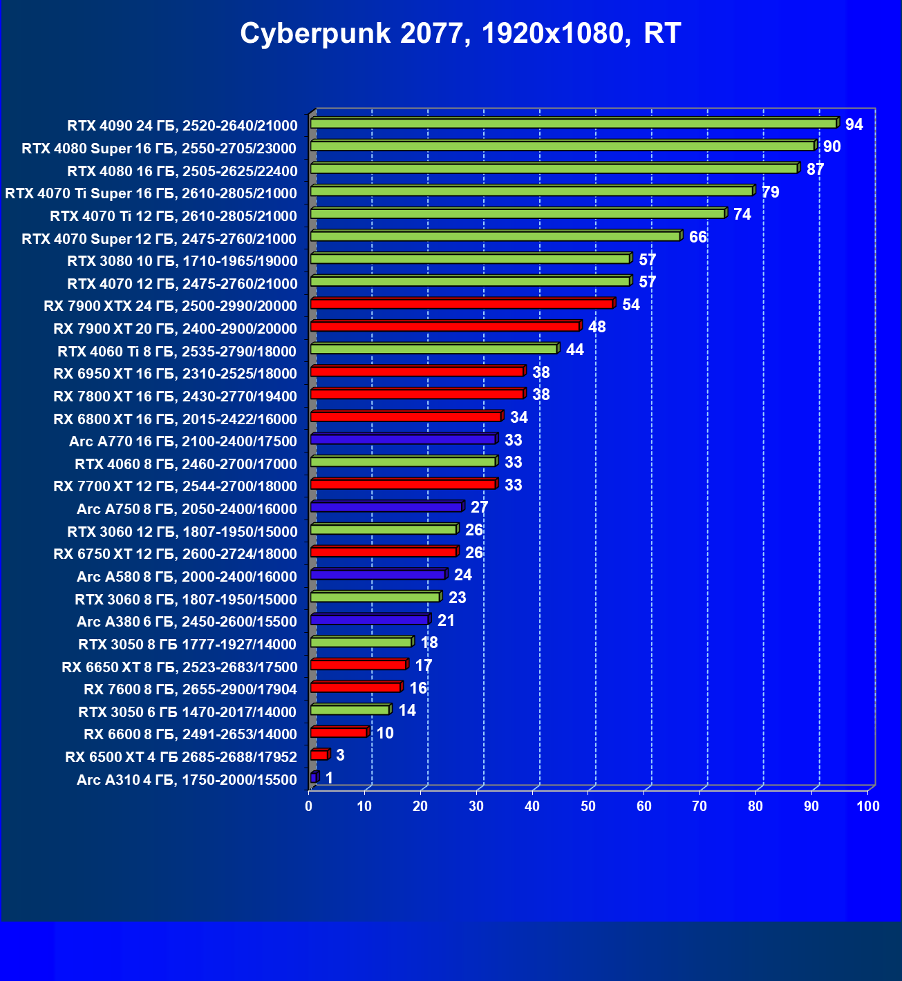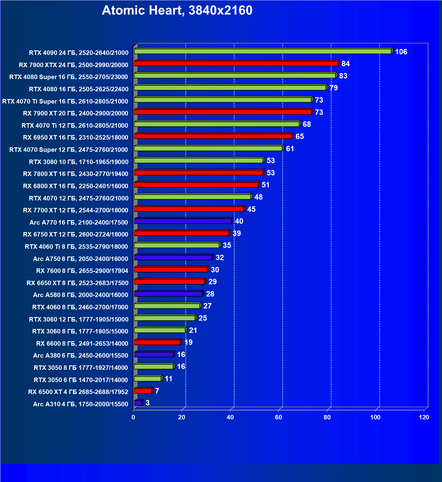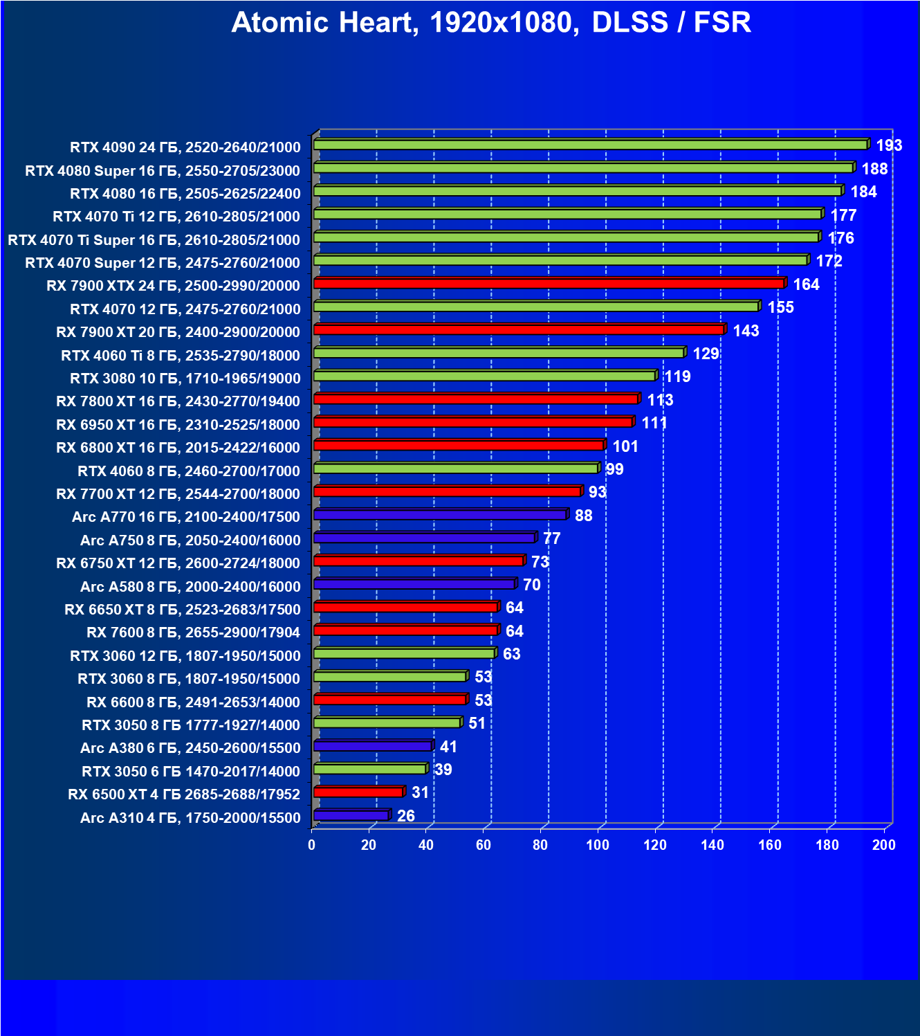 | 07 | Arc A310 4 ГБ, 1750—2450/15500, настройки ультра | 223 | 186 | 12 000 |