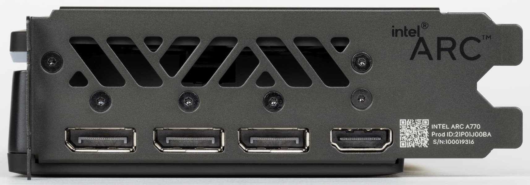 Отметим еще раз, что Arc A770 отлично подходит для игры в разрешении Full HD с максимальным качеством графики, но при включении трассировки лучей потребуется использовать FSR/XeSS, а в некоторых играх без RT можно получить приемлемый комфорт и в разрешении 2.5K. Также отметим поддержку стандарта HDMI 2.1, позволяющего выводить 4K-изображение со 120 FPS или 8K-разрешение при помощи одного кабеля, и стандарта DP 2.0, поддержку аппаратного декодирования и кодирования видеоданных в формате AV1.