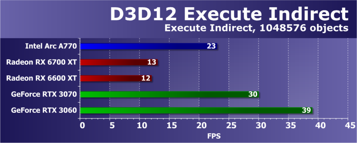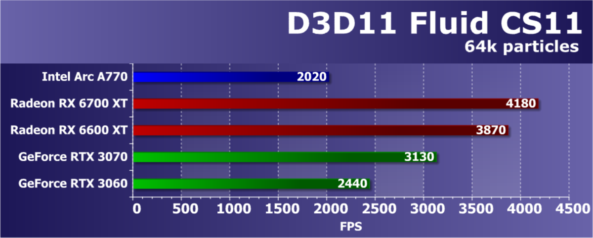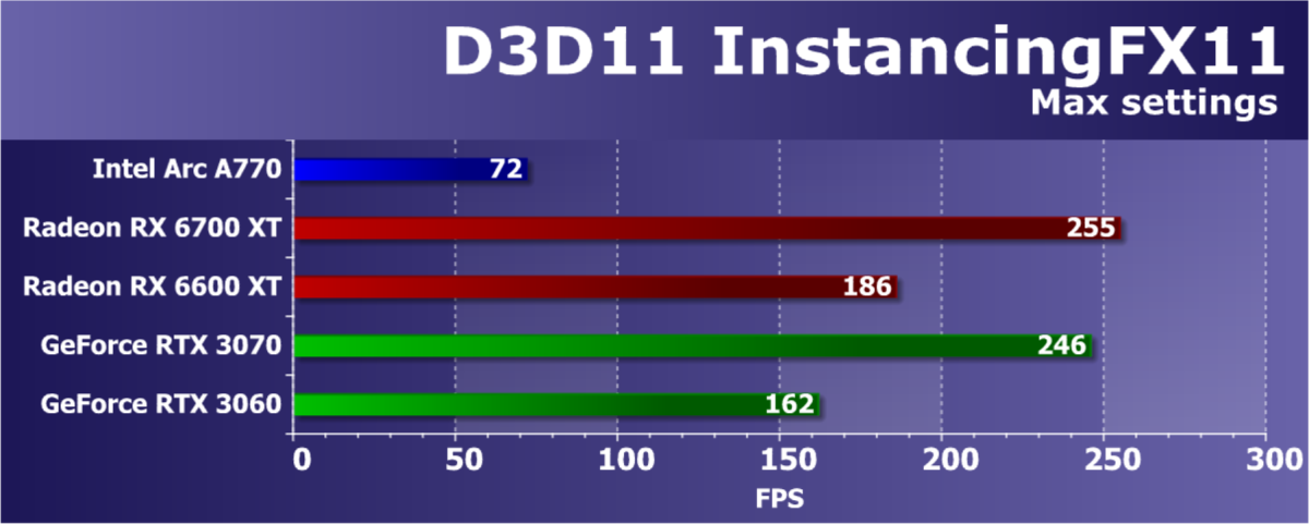 Некоторые обозреватели отмечают, что карты Intel Arc имеют ахиллесову пяту в виде производительности в играх, использующих DirectX 11. В нашем списке таких игр уже нет, все используют DX12 (либо Vulkan). Тем не менее, компании обязательно надо заниматься отладкой драйверов круглосуточно и даже наращивая темпы, поскольку старые популярные игры до сих пор имеют большую аудиторию.
