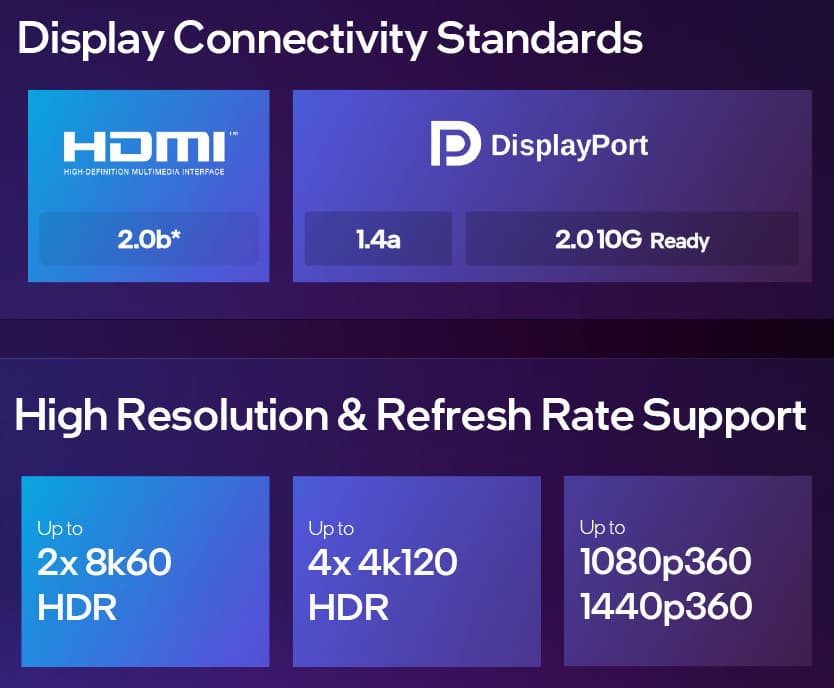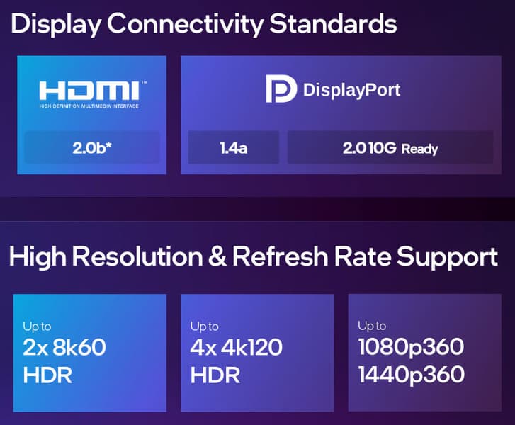 | Поддержка мониторов | поддержка HDMI 2.0b и DisplayPort 1.4a (2.0 10G) |