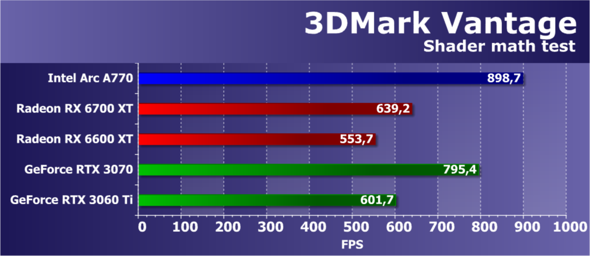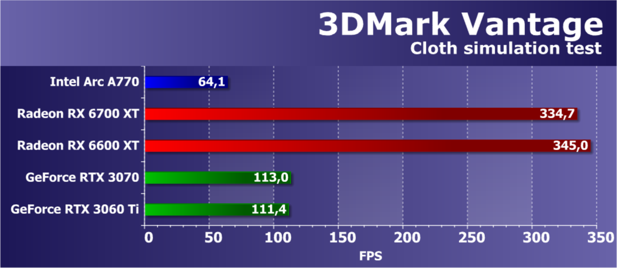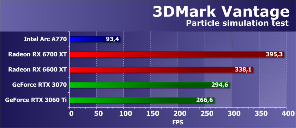| 17 | Arc A770 16 ГБ, 2100—2400/17500 | 388 | 111 | 35 000 |