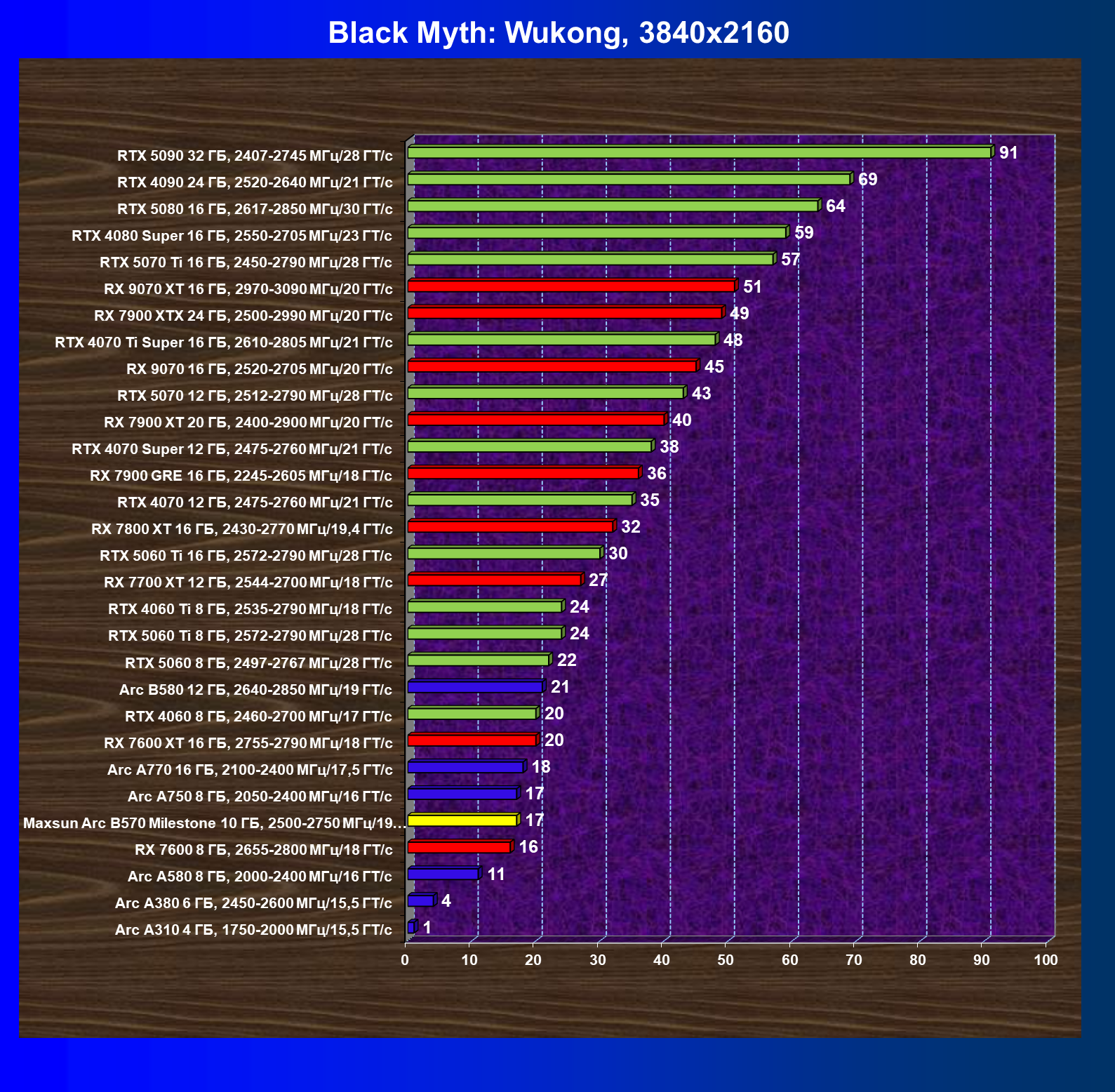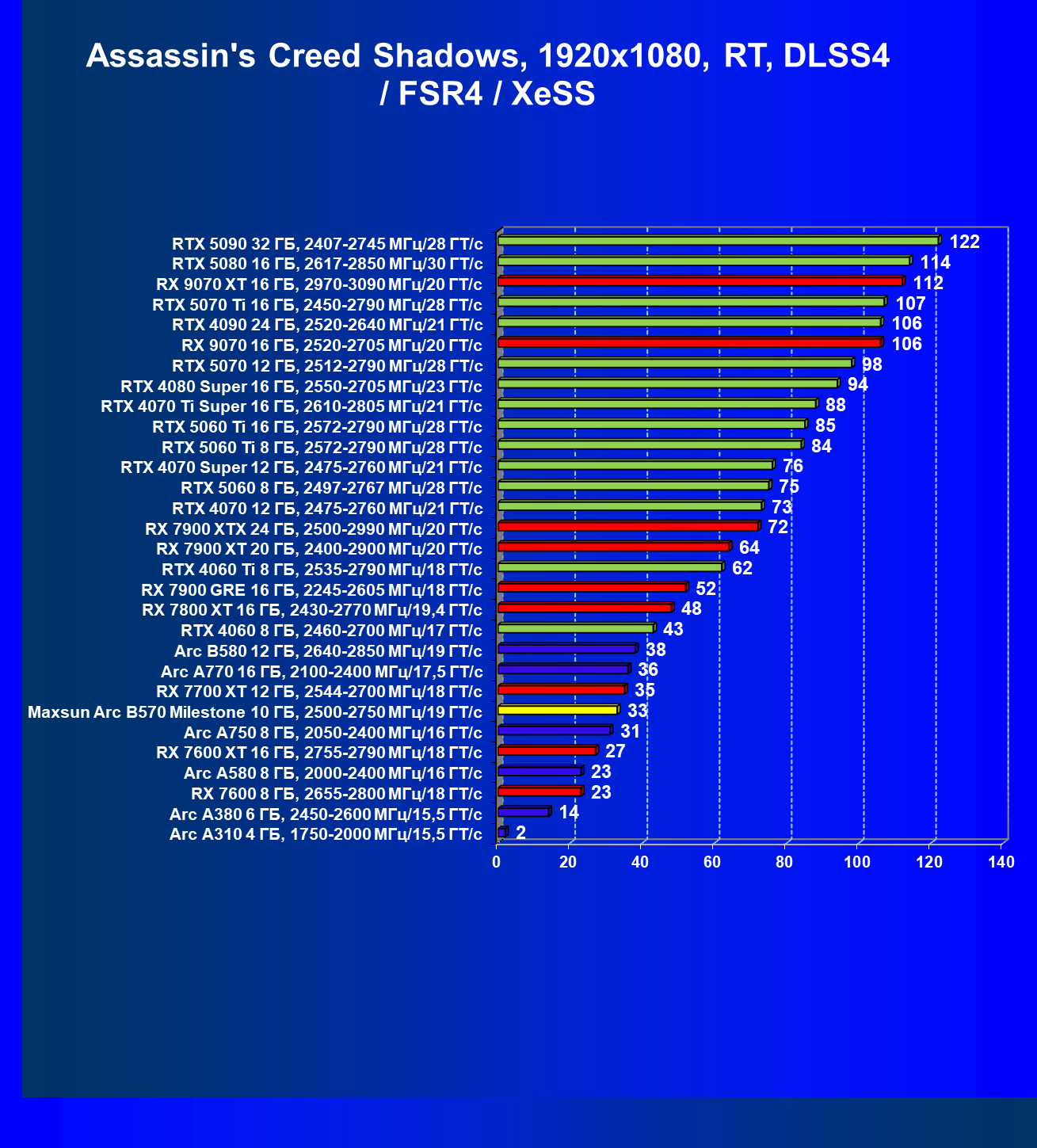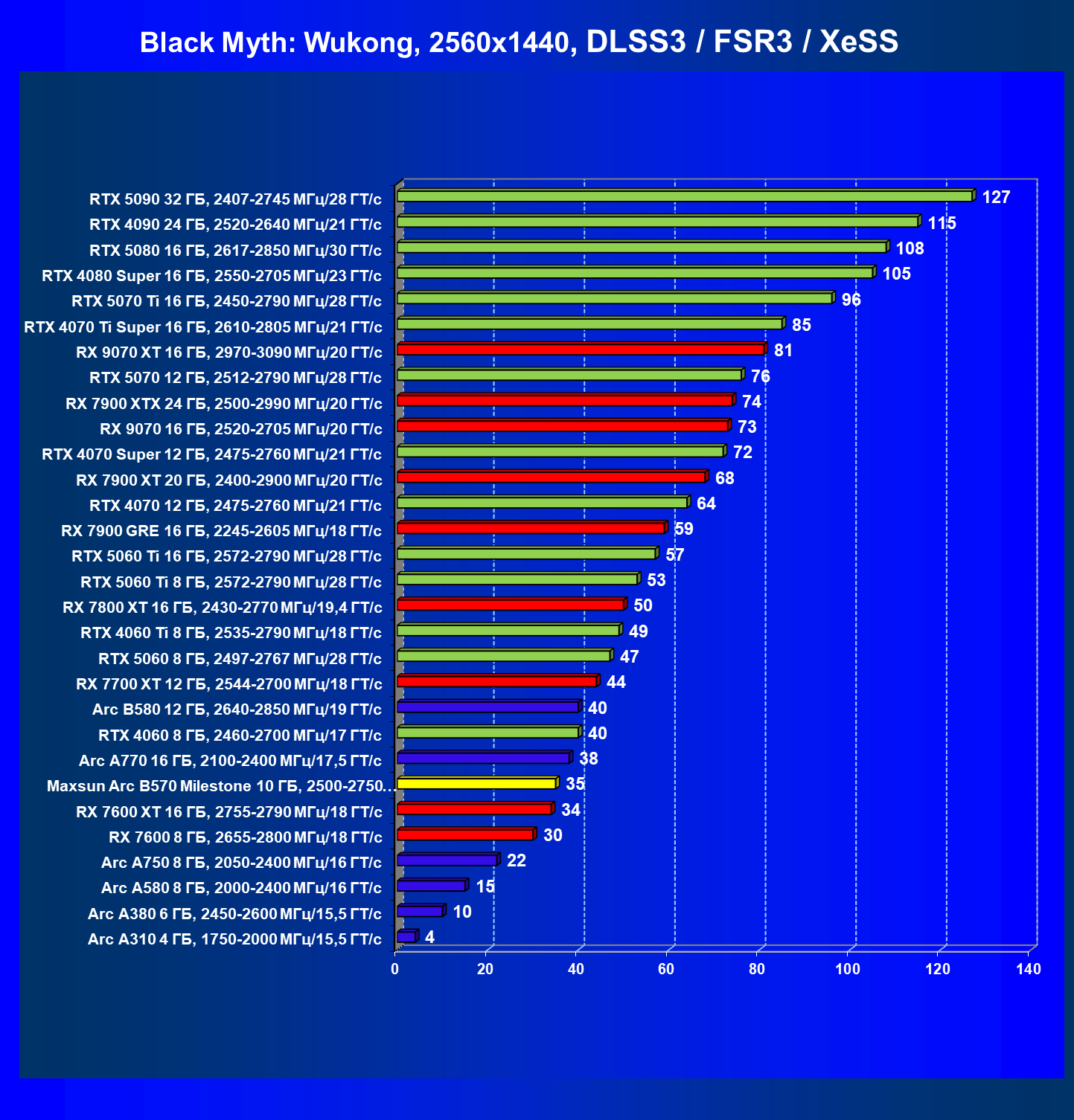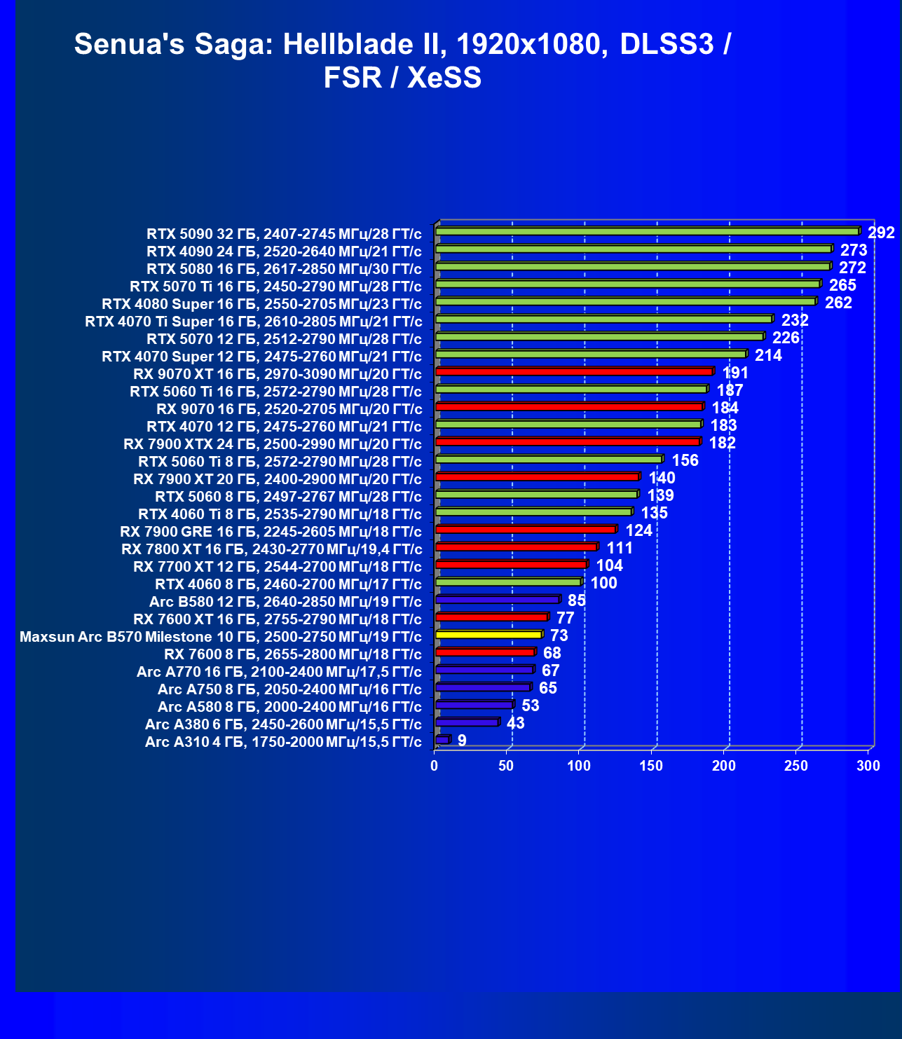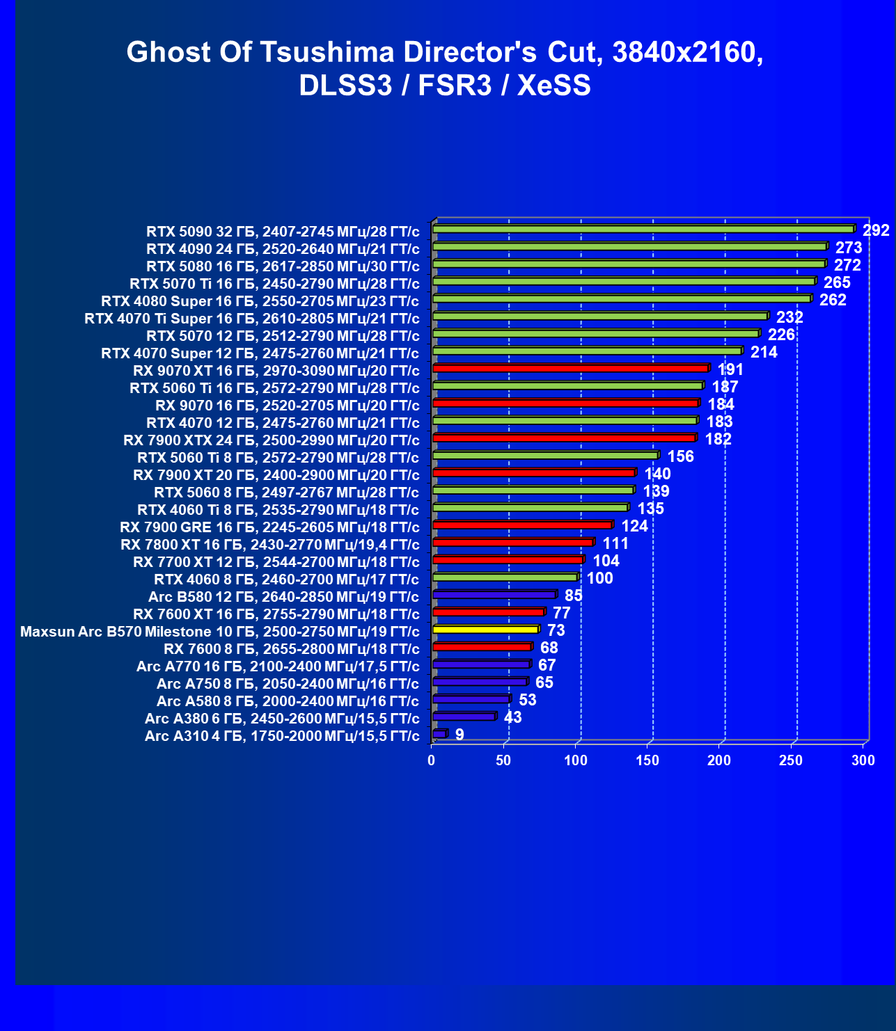 | 09 | Arc B580 12 ГБ, 2640—2850 МГц/19 ГТ/с | 143 | 516 | 36 000 |