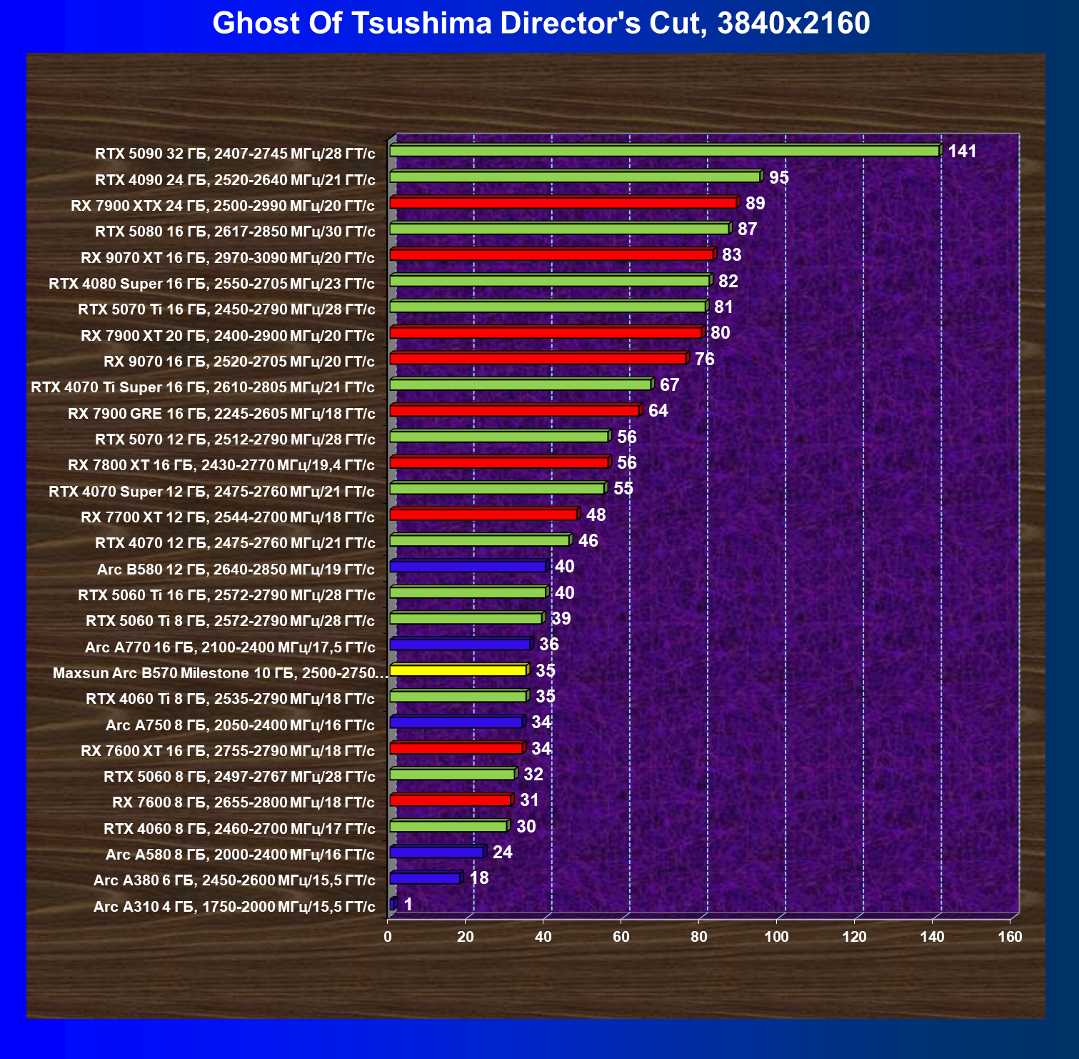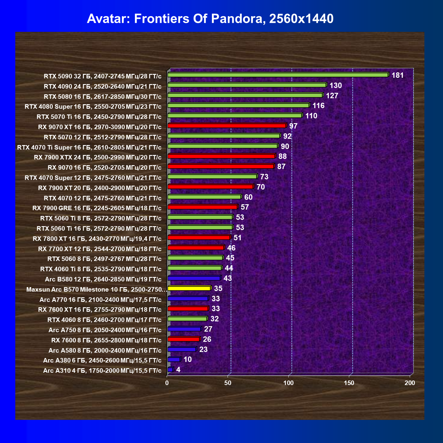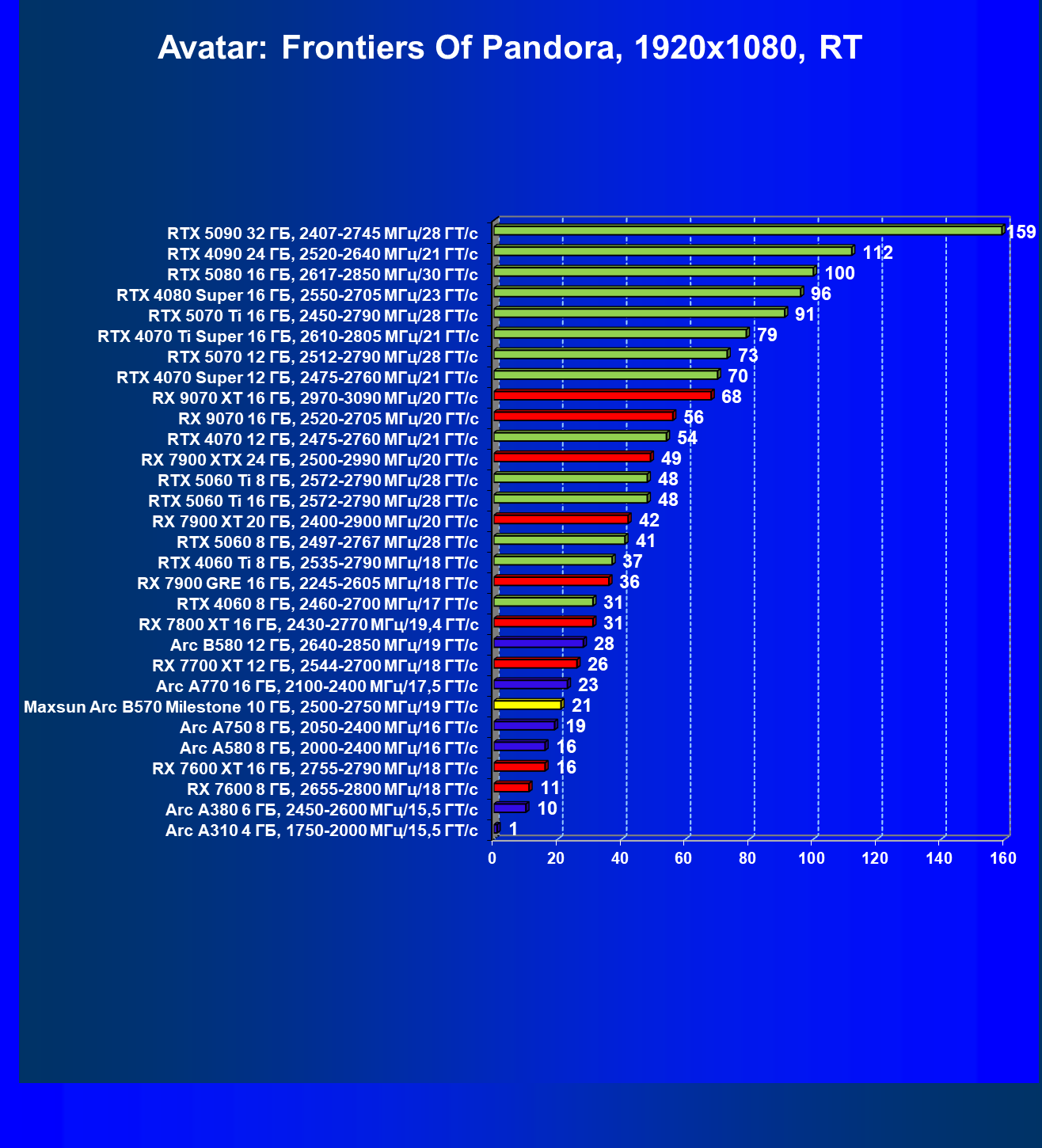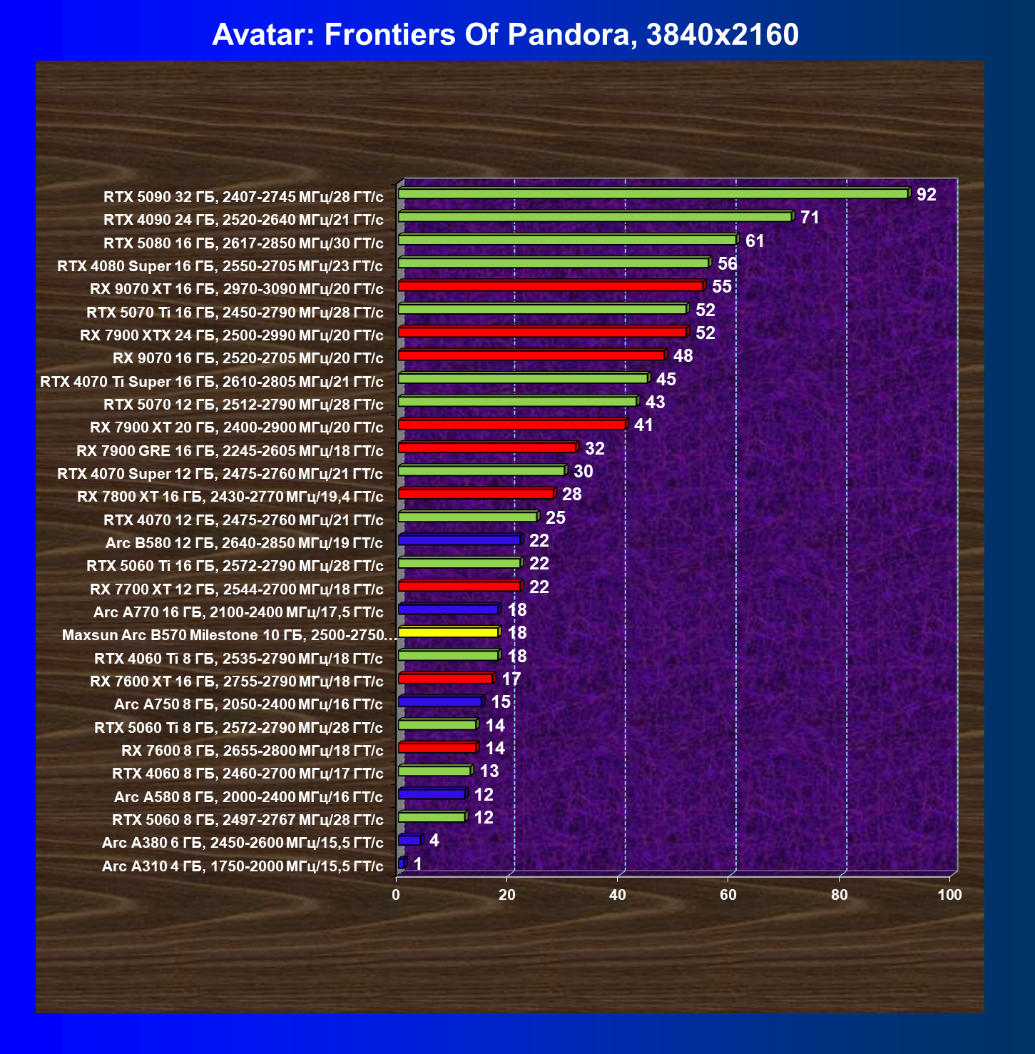 | 04 | Maxsun Arc B570 Milestone 10 ГБ, 2500—2750 МГц/19 ГТ/с | 155 | 451 | 29 000 |