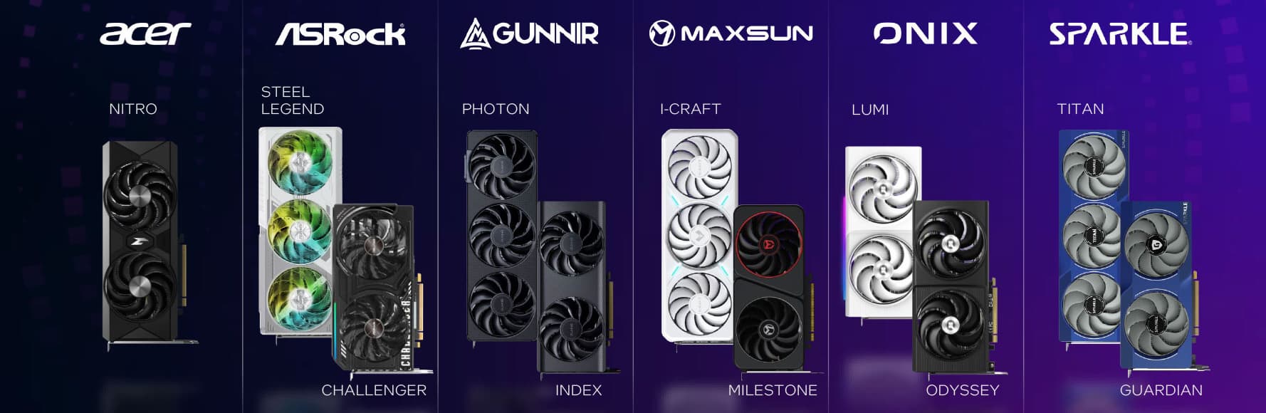 В отличие от первой модели Arc B580, для рассматриваемой сегодня модели у самой Intel просто не существует варианта Limited Edition. Но референсные видеокарты Intel — нечастый гость в наших магазинах, и для покупателей на нашем рынке куда интереснее решения партнеров компании на этом же графическом процессоре. Сразу на момент анонса были представлены решения следующих компаний: Acer, ASRock, Gunnir, Maxsun и Onix, позднее добавились и другие. Некоторые из них распространяются только на азиатских рынках, но именно оттуда видеокарты и попадают к нам чаще всего.